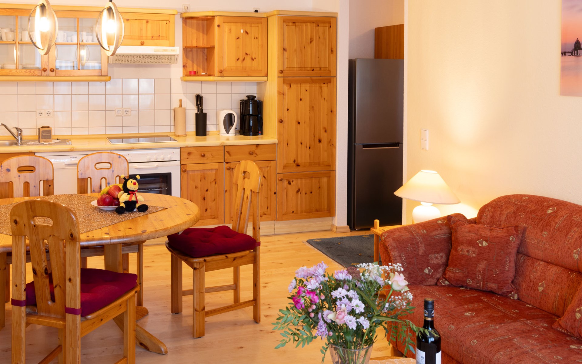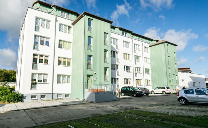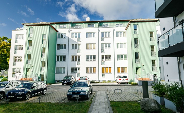 Apartment house, 4 storeys. In the resort 500 m from the centre of Zinnowitz, 100 m from the sea, 100 m from the beach. In the house: lift, storage room for bicycles, central heating system. Parking at the house. Supermarket 650 m, bakery, café 270 m, bus stop 180 m, railway station 1 km, sandy beach 100 m, thermal baths "Bernsteintherme" 240 m. Marina 2.6 km, golf course (18 hole) 25 km, surf school, tennis 750 m, minigolf 240 m. Please note: lift to 3rd floor.