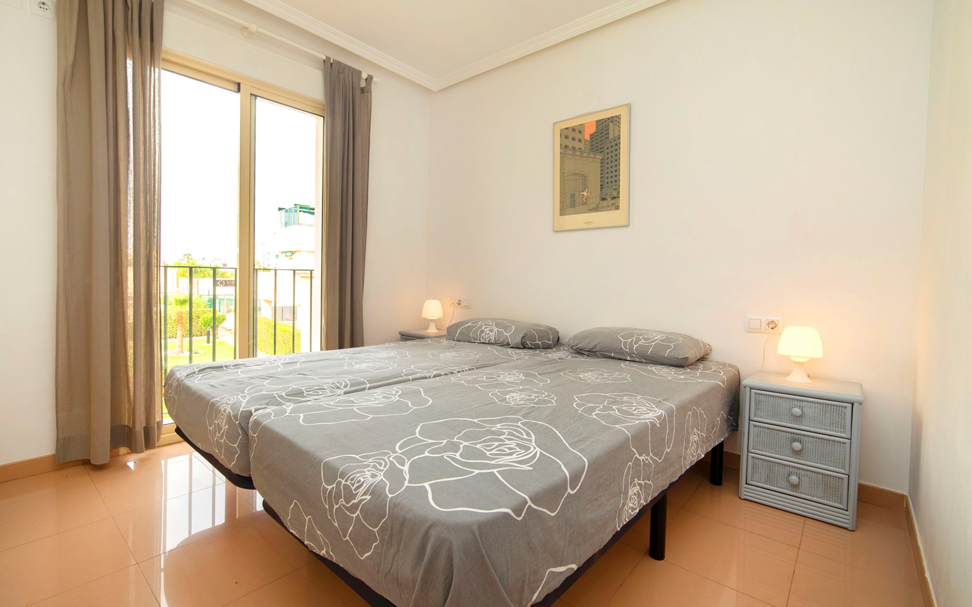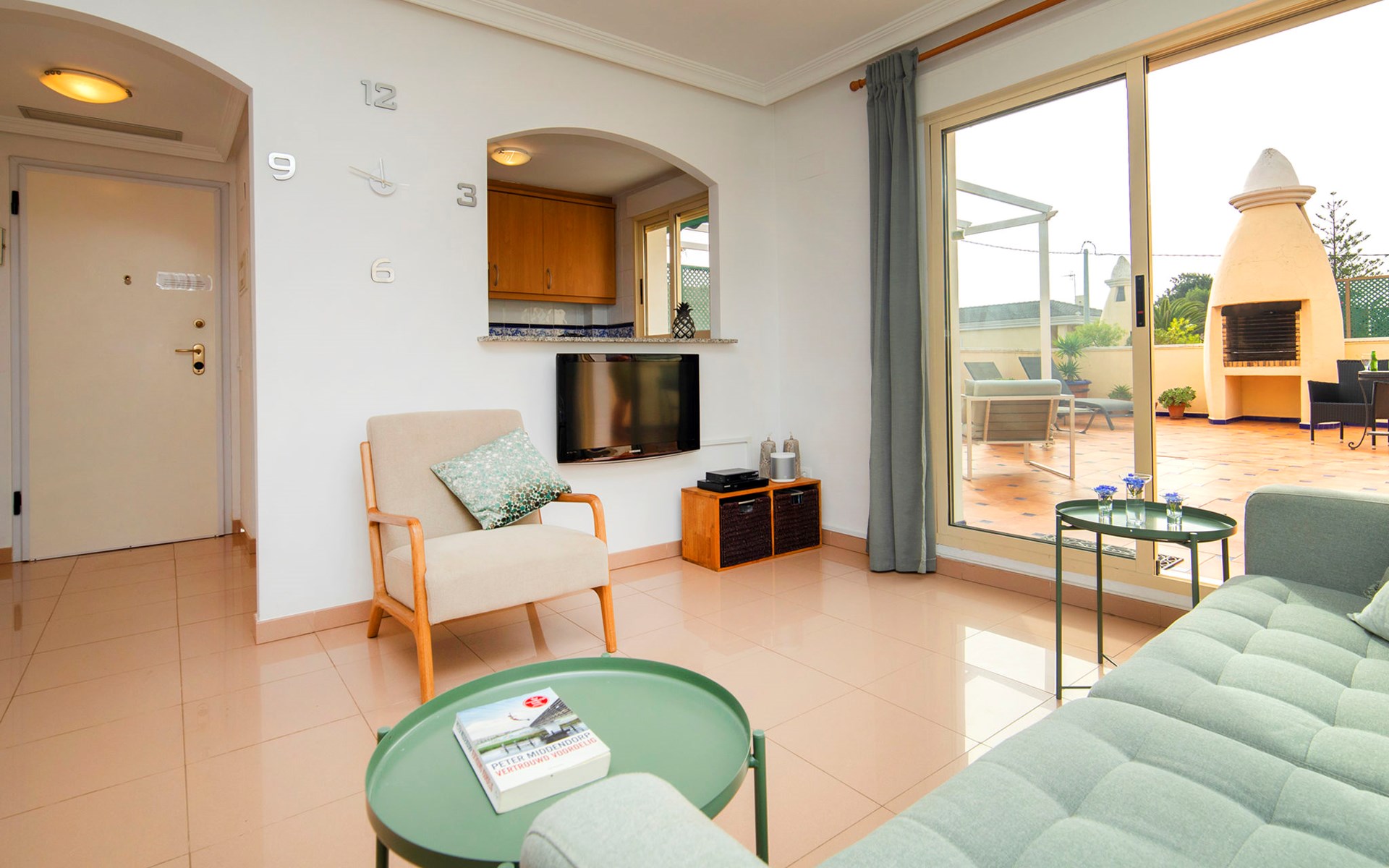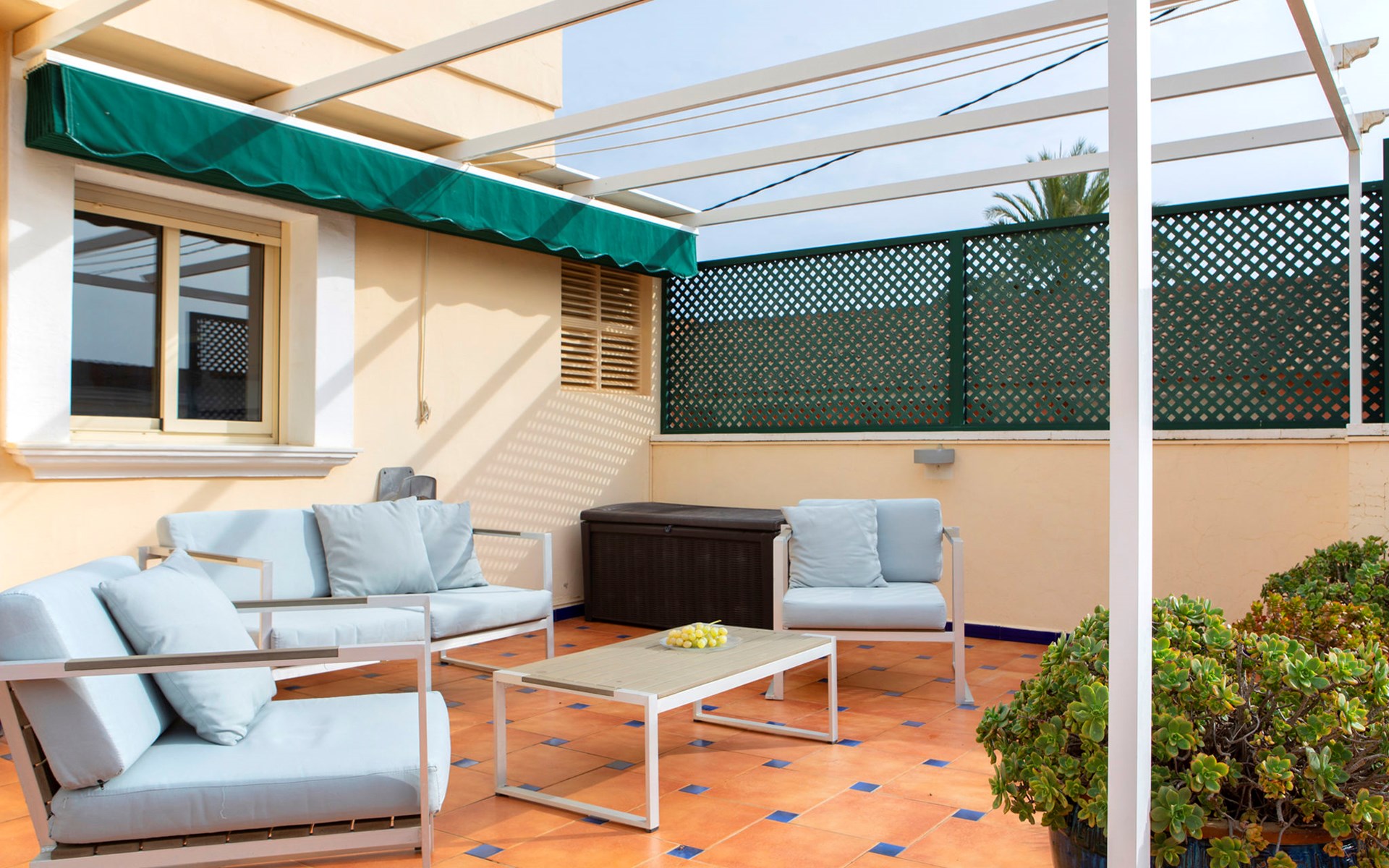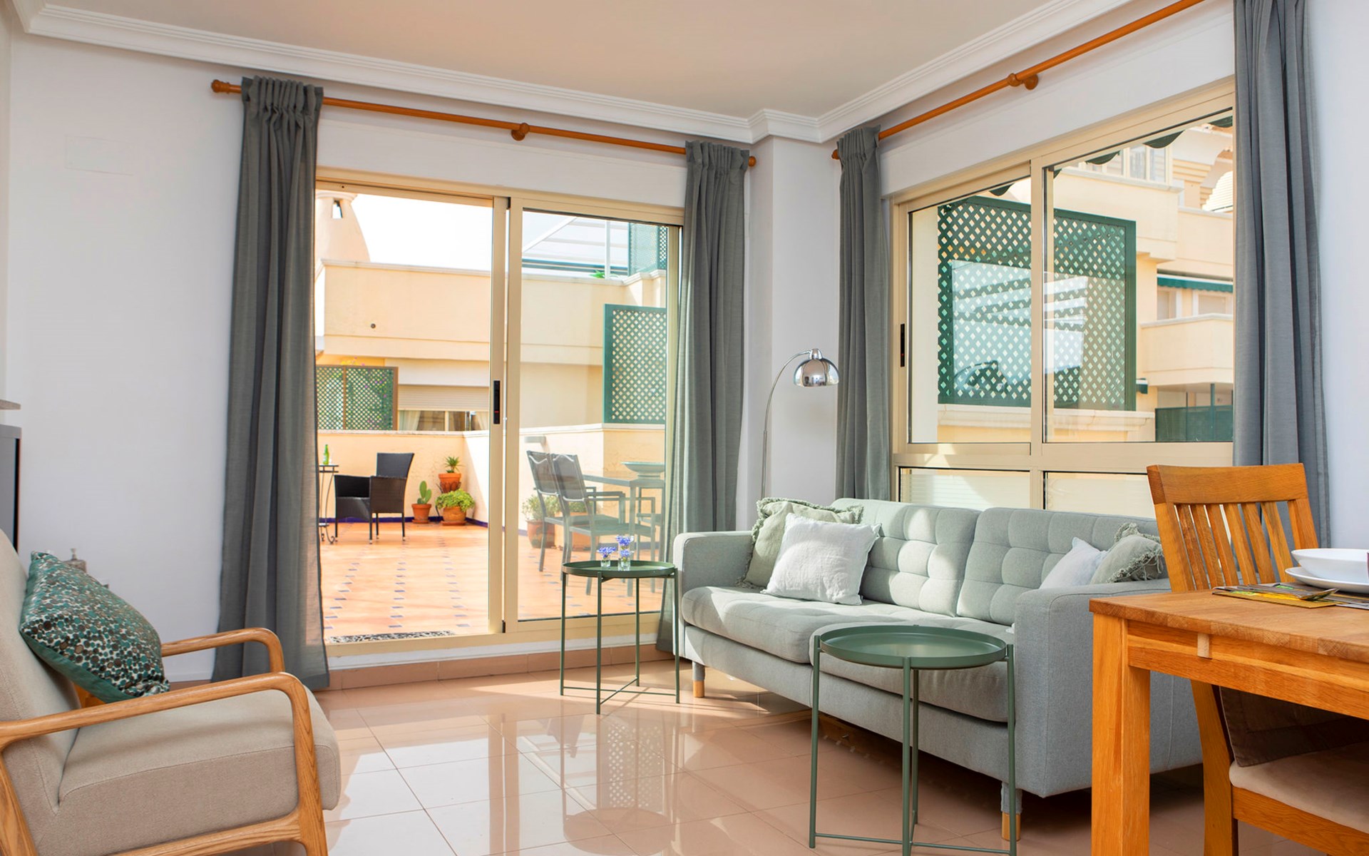 Cosy, comfortable apartment block "Medina del Sol I". 4.5 km from the centre of Denia, in a quiet position, 230 m from the sea, 230 m from the beach. For shared use: garden (fenced) with lawn and flowers, swimming pool (15 x 7 m, depth 110 - 210 cm, seasonal availability: 01.Jan. - 31.Dec.) with internal staircase. Children's pool, outdoor shower, public car park. Supermarket 150 m, restaurant, bar, café, bus stop, sandy beach 230 m. Sports harbour 4.5 km, tennis 3 km. The owner does not accept any youth groups.