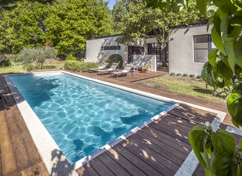 St Martin Castillon: Single-family house "Les Cotes". Outside the resort, in a secluded position. Private: property 7'200 m2, swimming pool (5 x 10 m, depth 40 - 170 cm, seasonal availability: 01.Jun. - 28.Sep.) with internal staircase. WC in the pool area, barbecue, roofed, parking on the premises. Shop 1 km, grocery 1.5 km, restaurant 1 km, bus stop "Centre" 1 km. Please note: car recommended. Swimming pool, floodlit, enclosed by a plastic sturdy electric fence.