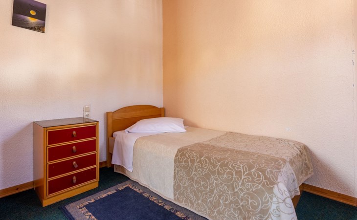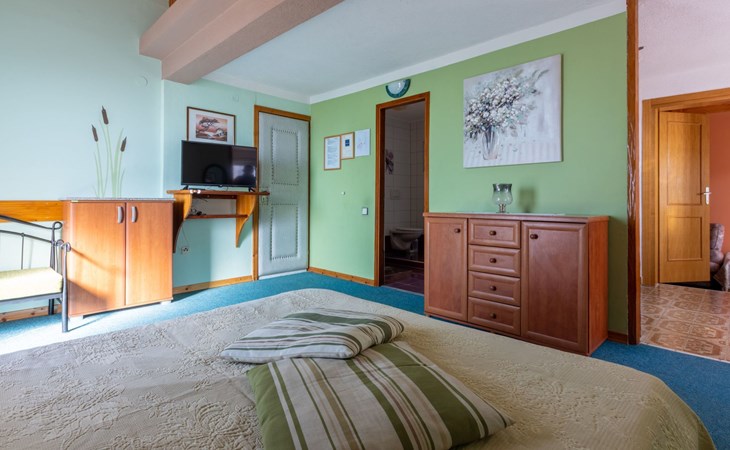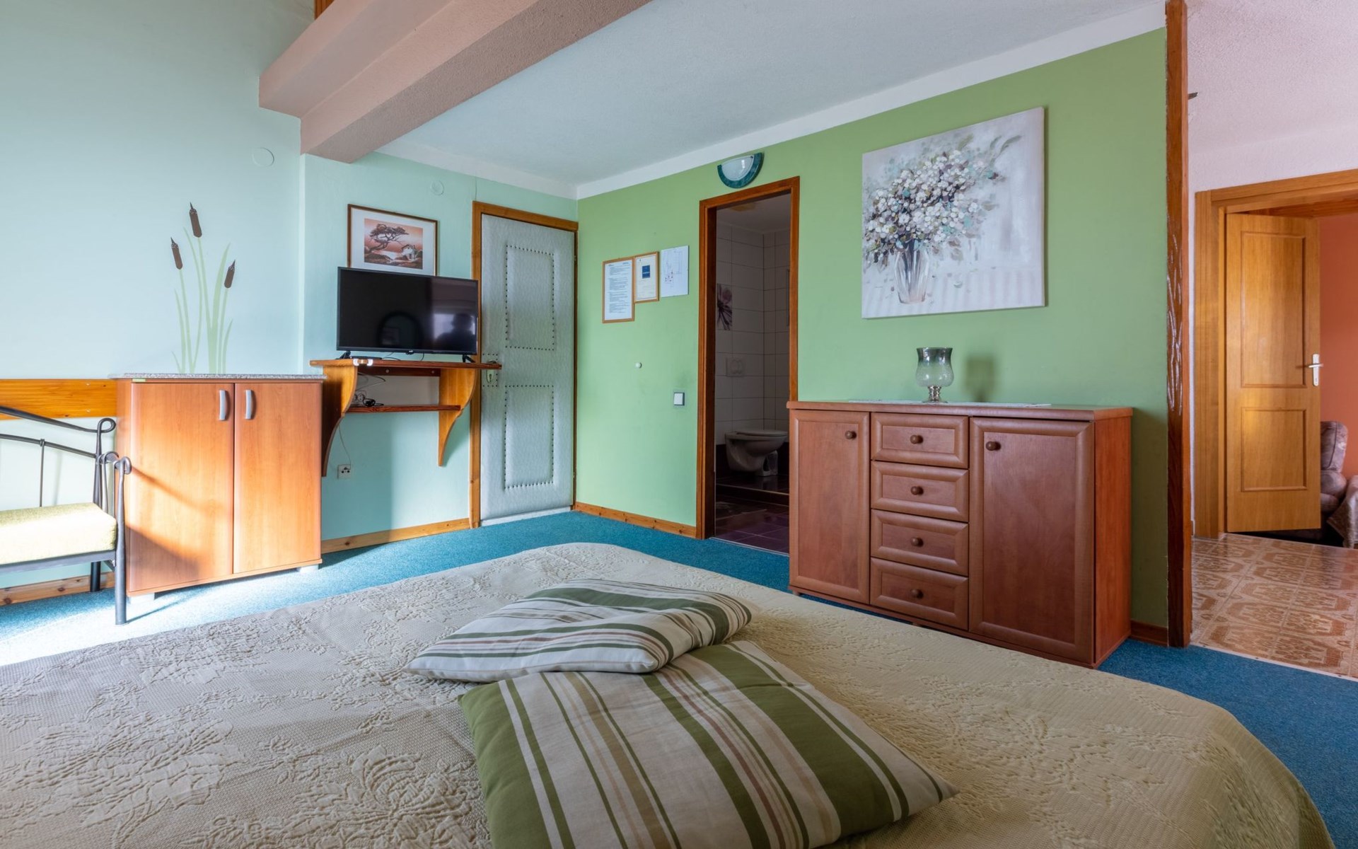 The interior of the apartment, located on the 2nd floor of a detached family house, has been thoughtfully equipped to ensure a comfortable stay. The living space features two cozy bedrooms where guests can unwind after a day of exploration. A compact yet functional kitchen, complete with a 2-plate stove, coffee machine, and electric kettle, caters to all your dining needs, while the adjoining dining area offers a space to enjoy meals together. Whether it's a quick breakfast before heading out or a peaceful dinner at home, this apartment has you covered. The convenience of air conditioning (available for an extra charge), Wi-Fi, and satellite TV further enhances your stay, ensuring you remain connected and comfortable throughout.