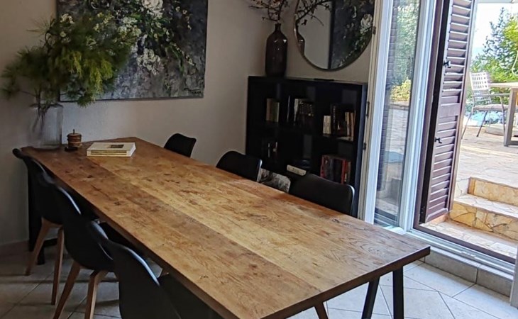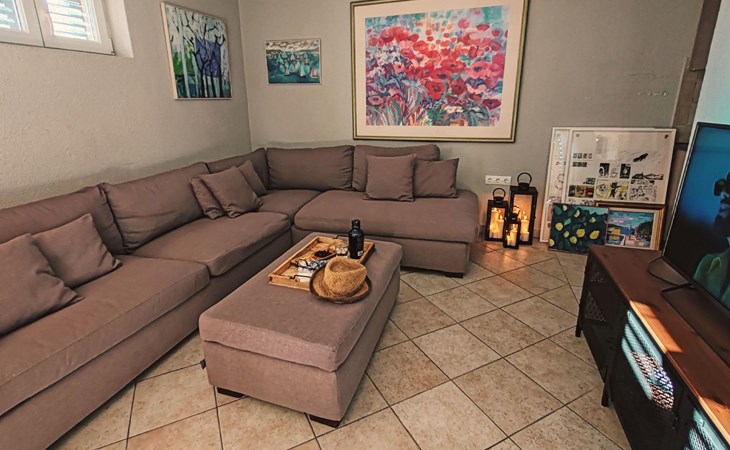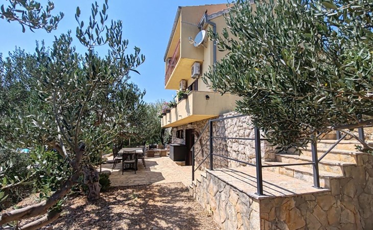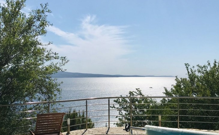 The house is located approximately 80 m above sea level and offers unobstructed views of the sea. The beach is a 10-minute walk away, and Omis, where shops and restaurants are located, is a 5-minute drive away.