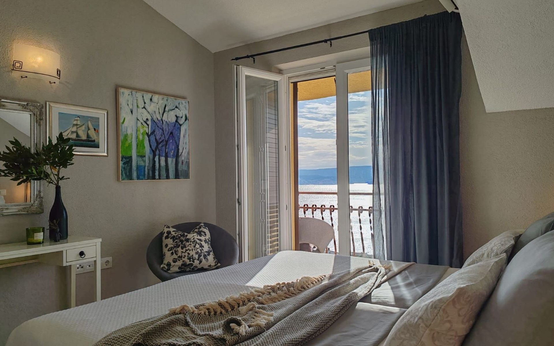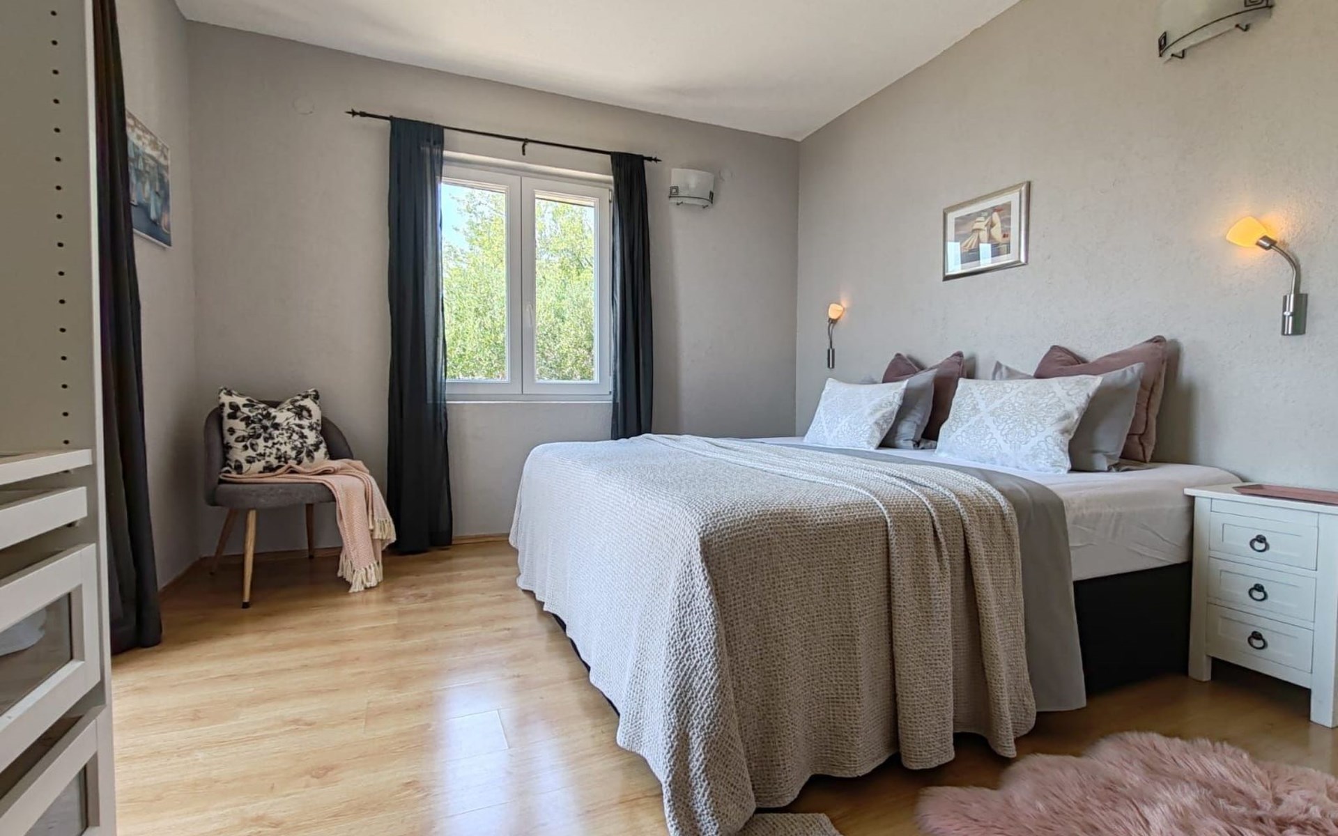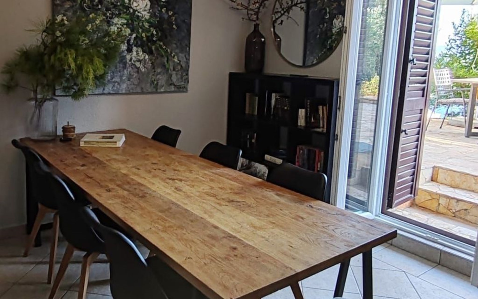 The outdoor area includes a swimming pool, a sunbathing area with sun loungers and parasols. You can also enjoy your evenings outdoors and prepare your meals on the barbecue. Relax by the private pool, enjoy the breathtaking views of the Adriatic Sea, the islands, and Biokovo National Park, and enjoy the ultimate comfort of the house.