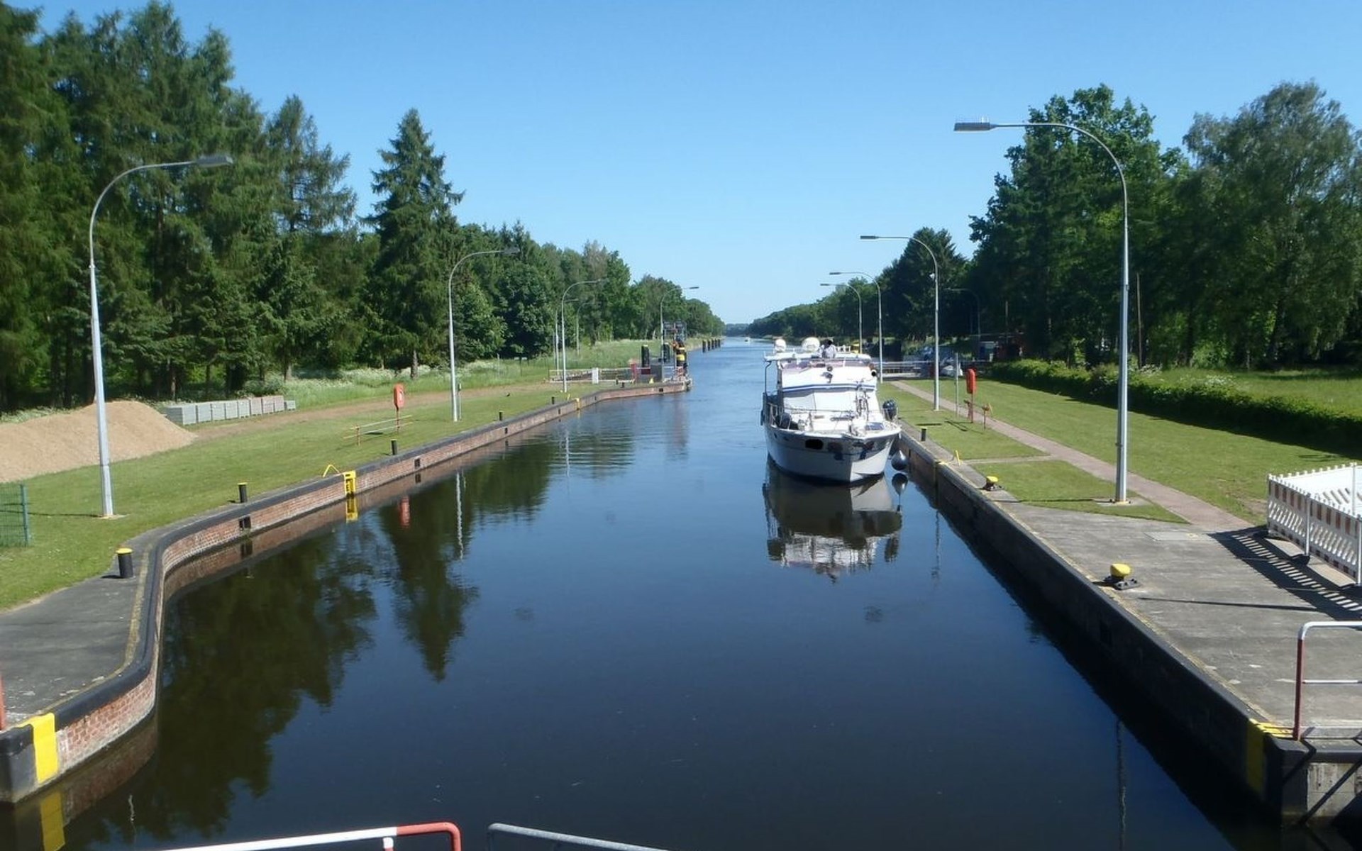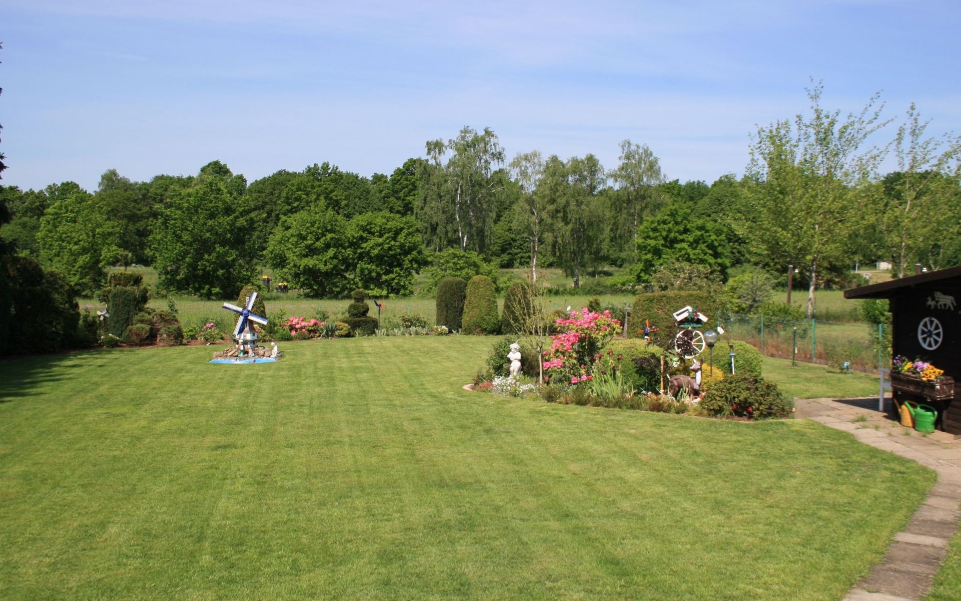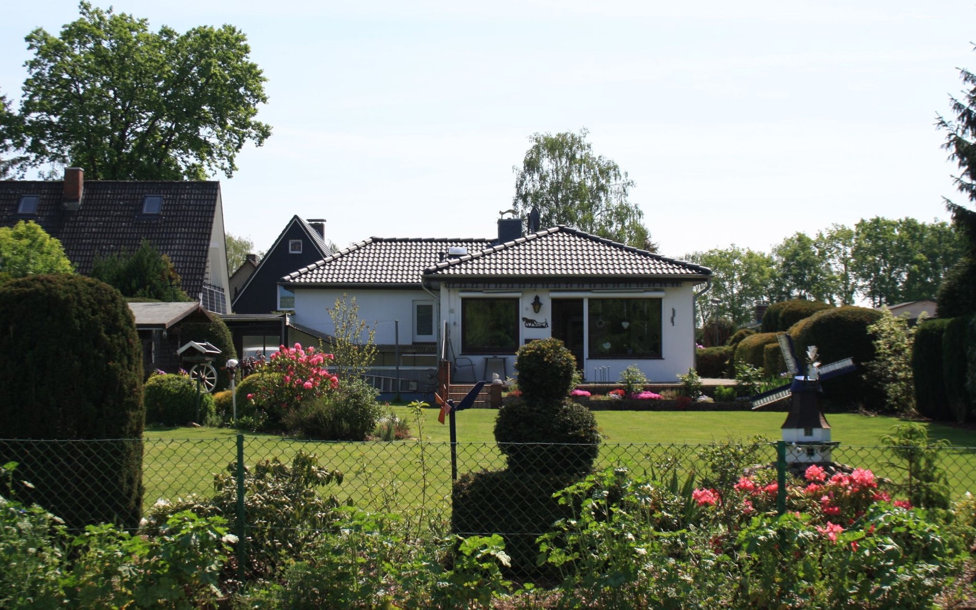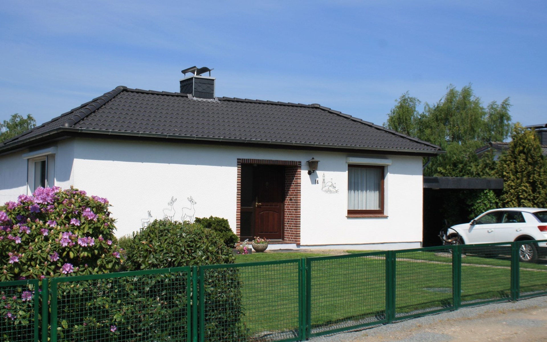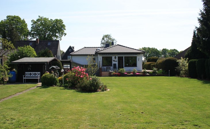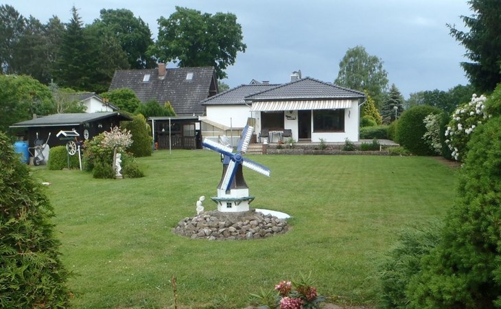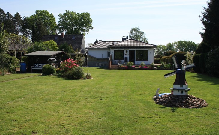 The holiday home is suitable for 2 persons (a third person on request, please no fitters as it is a pure holiday home). The house is located in Witzeeze in the district of Herzogtum Lauenburg in the metropolitan region of Hamburg and the holiday region Lauenburgische Seenlandschaft. We offer a bedroom with a double bed and an additional small bedroom with a single bed. The spacious living room consists of a dining room and a TV area. The living room and small bedroom offer a wonderful view of the well-tended, large garden and the Elbe-Lübeck Canal. From there you can watch barges and pleasure boats as well as wild animals such as deer and migratory birds. The same view can be enjoyed from the large terrace. The holiday home naturally also includes a new kitchen and a newly renovated bathroom with shower. A carport is attached to the house and there is an additional car parking space in front of it. Within walking distance of the house are two further larger car parks for guests. In the garden there is a lockable garden shed with garden furniture and space for bicycles. The garden is completely fenced (100cm high). Facilities include bed linen, towels, hairdryer, kettle, toaster, TV with satellite reception, DVD player, radio/CD player, a small collection of games, electric external blinds and an electric awning. In the warm season, the real highlight of this holiday home is the swimming area at Kiessee 8, which is only approx. 150 m away. There are other swimming opportunities, for example at Forellensee (approx. 800 m away), in the Büchen forest swimming pool (approx. 4 km away), in the Lauenburg swimming pool (approx. 10 km away) or - regardless of the season - in the "Möllner Welle" indoor pool (approx. 25 km away). Anglers also get their money's worth in Witzeeze - fishing licences are available in Büchen at Schuhhaus Fischer. There is a marina in Lauenburg with approx. 70 berths for pleasure boats. A regional speciality is the bird flight in autumn and spring, many cranes, wild geese and other migratory birds fly over our holiday home and rest in the immediate vicinity. Excursion ideas in the cold season: in October and November the local fire brigades organise wonderful lantern parades, in the Advent season you can visit many beautiful Christmas markets (e.g. Gut Basthorst) and around Easter there are many Easter bonfires. Up to two dogs are welcome by prior arrangement. Witzeeze's sights can be reached on foot in just a few minutes: the Witzeeze lock on the Elbe-Lübeck Canal and the historic Dücker lock in the Stecknitz/Devenau, which has been in existence since the late Middle Ages. Witzeeze also offers the restaurant "Zum Lindenkrug" with many delicious dishes. In nearby Büchen, in addition to the forest swimming pool and numerous shopping facilities (various supermarket chains and some speciality shops), there is an interesting exhibition on the former German-German border in the Priesterkate, where coffee and cake are also sold on selected weekends. The old town centre of Lauenburg is a special attraction in the region. But the old towns of Mölln, Ratzeburg and Boizenburg are also not far away. There is a regular train connection from Büchen to Hamburg city centre (approx. 35 min. journey time) as well as to Lübeck, Lüneburg and Schwerin, which are also not far away. In the Duchy of Lauenburg there are countless hiking and cycling opportunities along the Elbe, the lakes of the Lauenburg Lake District or along the Elbe-Lübeck Canal. The castle in Wotersen, known from the 80s series "The Guldenburgs", is also worth a detour.