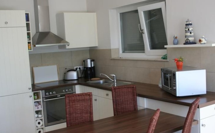 Inside the holiday flat, in addition to the pleasant underfloor heating, which ensures a sense of well-being in all rooms, you will find numerous amenities to make your stay comfortable. Relax in front of the flickering fireplace in the evening or make use of the modern technical equipment, which leaves nothing to be desired: A washing machine is available for your sole use and the kitchenette is fully equipped with a dishwasher, kettle and coffee machine. So you can organise your holiday exactly as you wish.