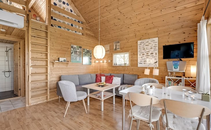 Holiday village, built in 2004. 45 km from the sea. Private: natural state property 300 m2. Terrace (18 m2), parking at the house. Grocery 800 m. The owner does not accept any youth groups.