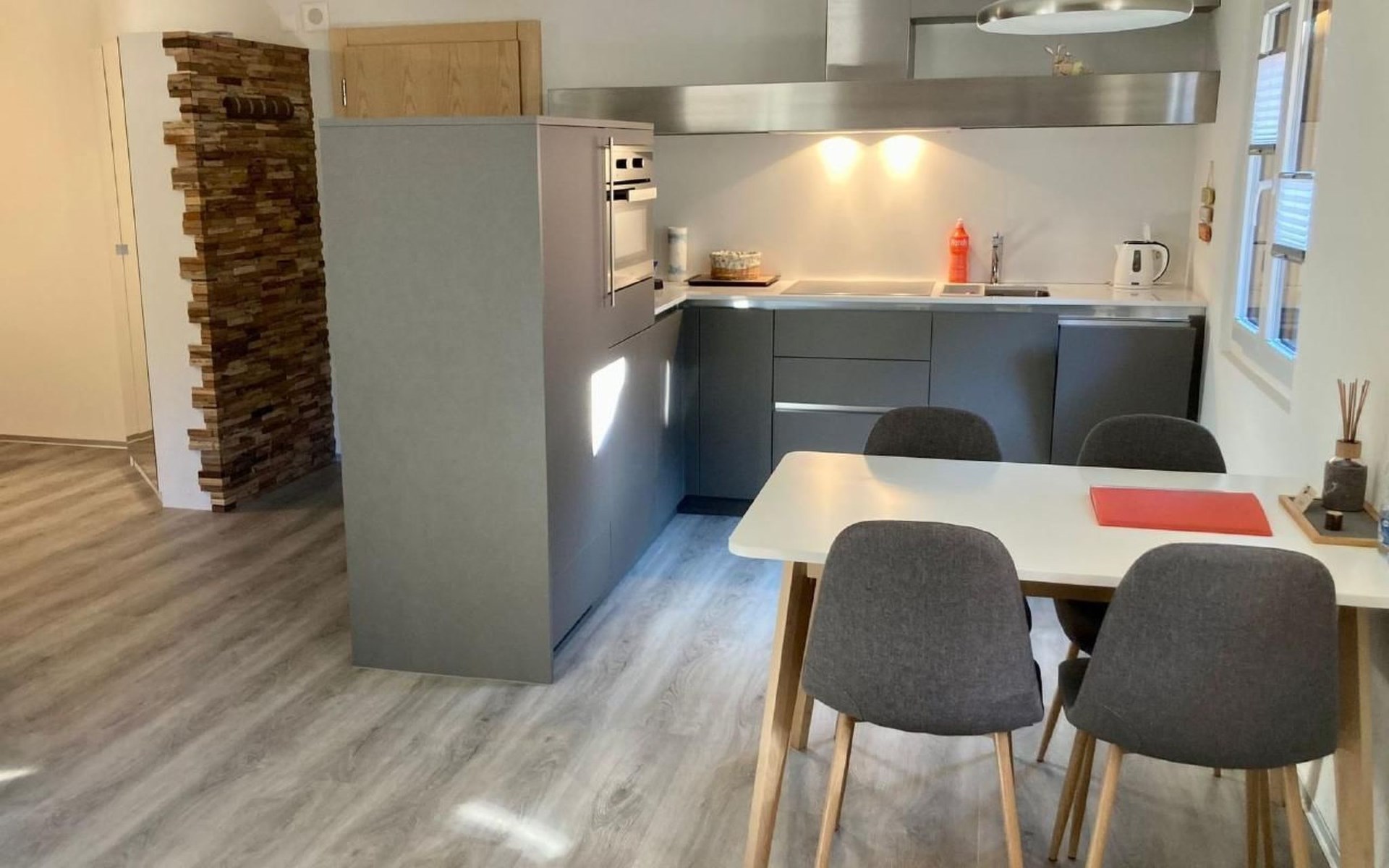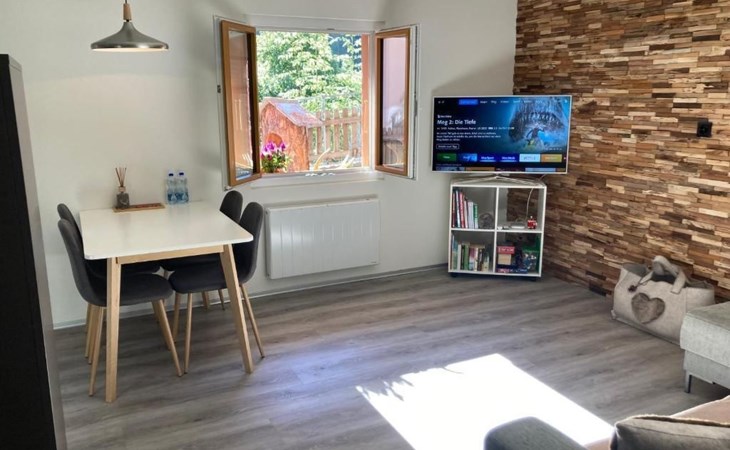 Inside, you will find a fully equipped kitchen with microwave, oven, fridge with freezer compartment, ceramic hob, dishwasher, kettle and a Nespresso coffee machine. The spacious living area is equipped with a satellite LCD TV, satellite radio, fast, free WiFi (102 MBit/s) and a washing machine including tumble dryer. Final cleaning, bed linen, towels and visitor's tax are included in the price, so there are no additional costs.