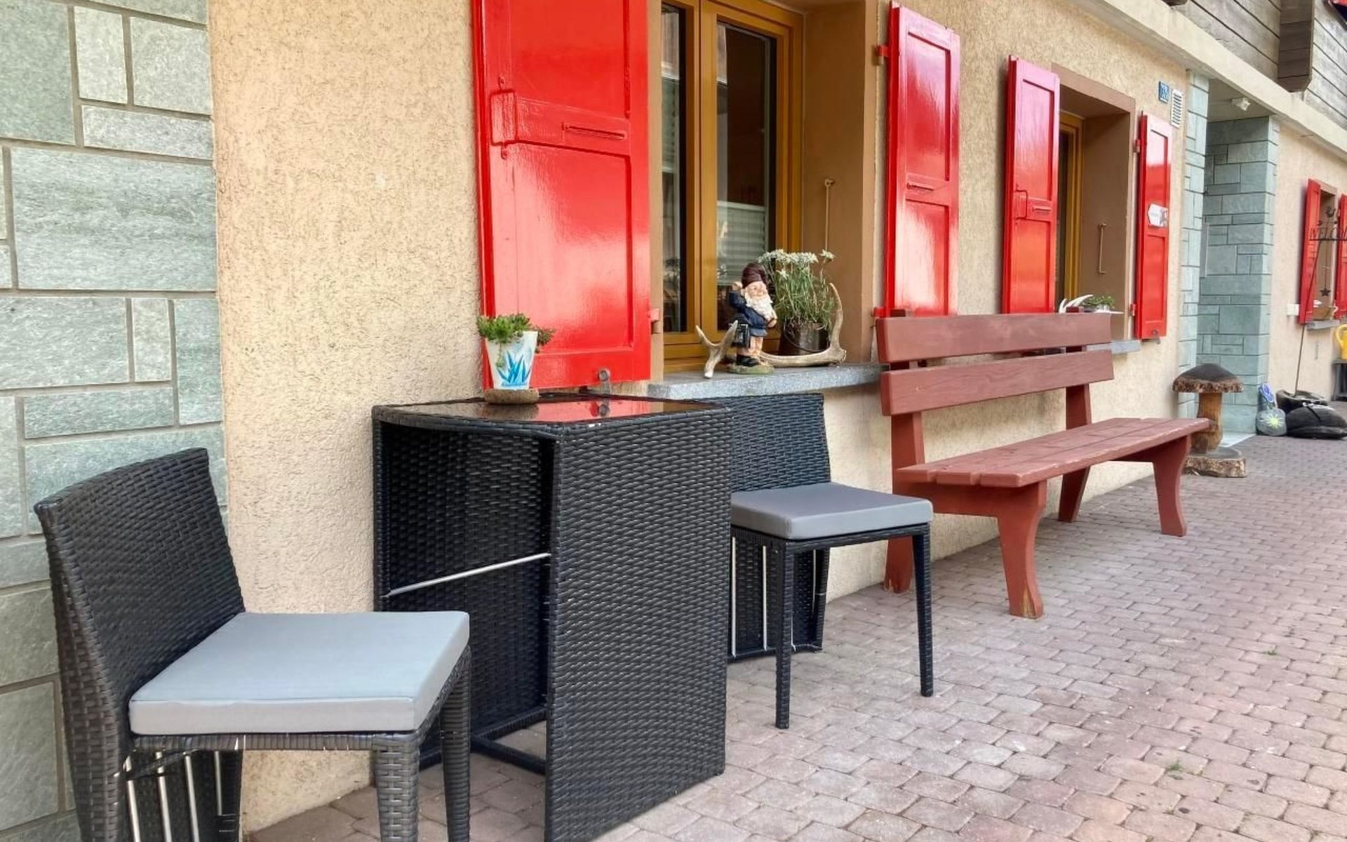 Look forward to the sunny courtyard of the holiday flat, which invites you to relax in the fresh mountain air with cosy seating. The flat is located in an apartment building in an elevated position, away from traffic and yet only a few steps from the village centre. The idyllic outdoor area is easily accessible via the characteristic alleyways of the Valais village and lends your stay a peaceful and authentic atmosphere.