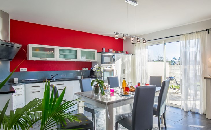 Beautiful, comfortable single-family house "La Goulvinoise". 60 m from the centre of Goulven, 10 km from the centre of Plouescat, 7 km from the centre of Lesneven, 650 m from the sea. Private: property 750 m2 (fenced) with lawn, parking (for 2 cars) at the house. Shop 200 m, grocery 160 m, supermarket 7 km, restaurant 60 m, bakery 2 km, café, bus stop 160 m, sandy beach "Plage de Keremma" 1.5 km, indoor swimming pool 8 km, thermal baths "Thalasso Roscoff" 30 km. Golf course (9 hole) 13 km, surf school 8 km, sailing school 5 km, walking paths from the house 650 m. Nearby attractions: Reserve Ornitholigique Keremma 1 km, Meneham 8.5 km, Roscoff et Jardin Exotique 30 km, Oceanopolis Brest 40 km, Morlaix 50 km. Hiking paths: GR34, sentier des douaniers 650 m.
