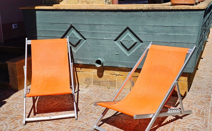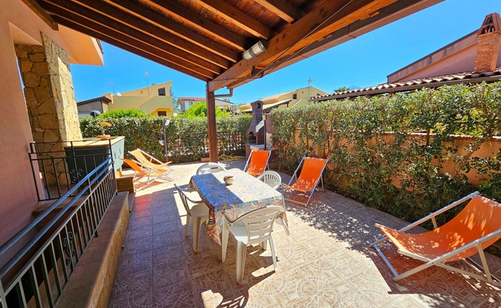 The outside area of the villa has a veranda that can be used as a dining area, a large garden and a barbecue area. In the garden there is also a shower, toilet, sink and foot wash basin, which are very useful for long afternoons sunbathing or returning from the sea. Private parking for cars and motorbikes is free of charge.