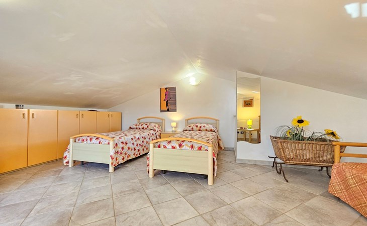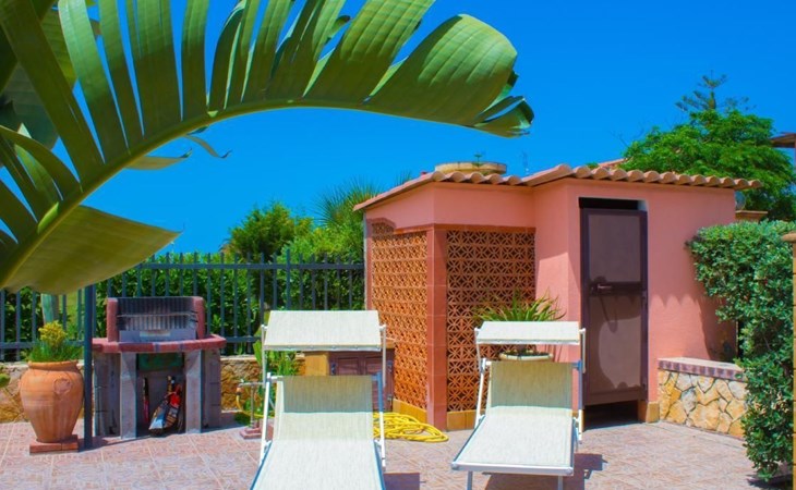 The outside area of the villa has a veranda that can be used as a dining area, a large garden and a barbecue area. In the garden there is also a shower, toilet, sink and foot wash basin, which are very useful for long afternoons sunbathing or returning from the sea. Private parking for cars and motorbikes is free of charge.