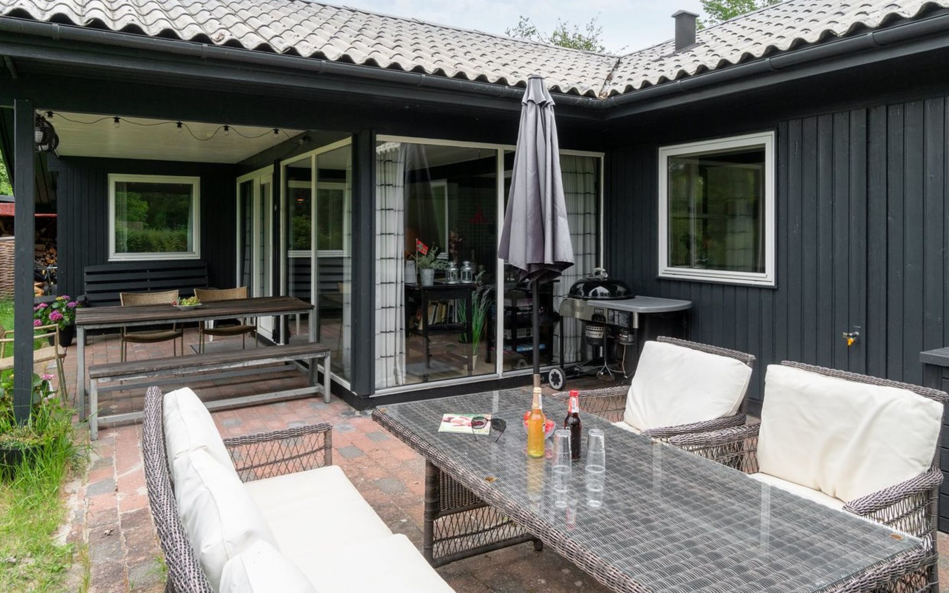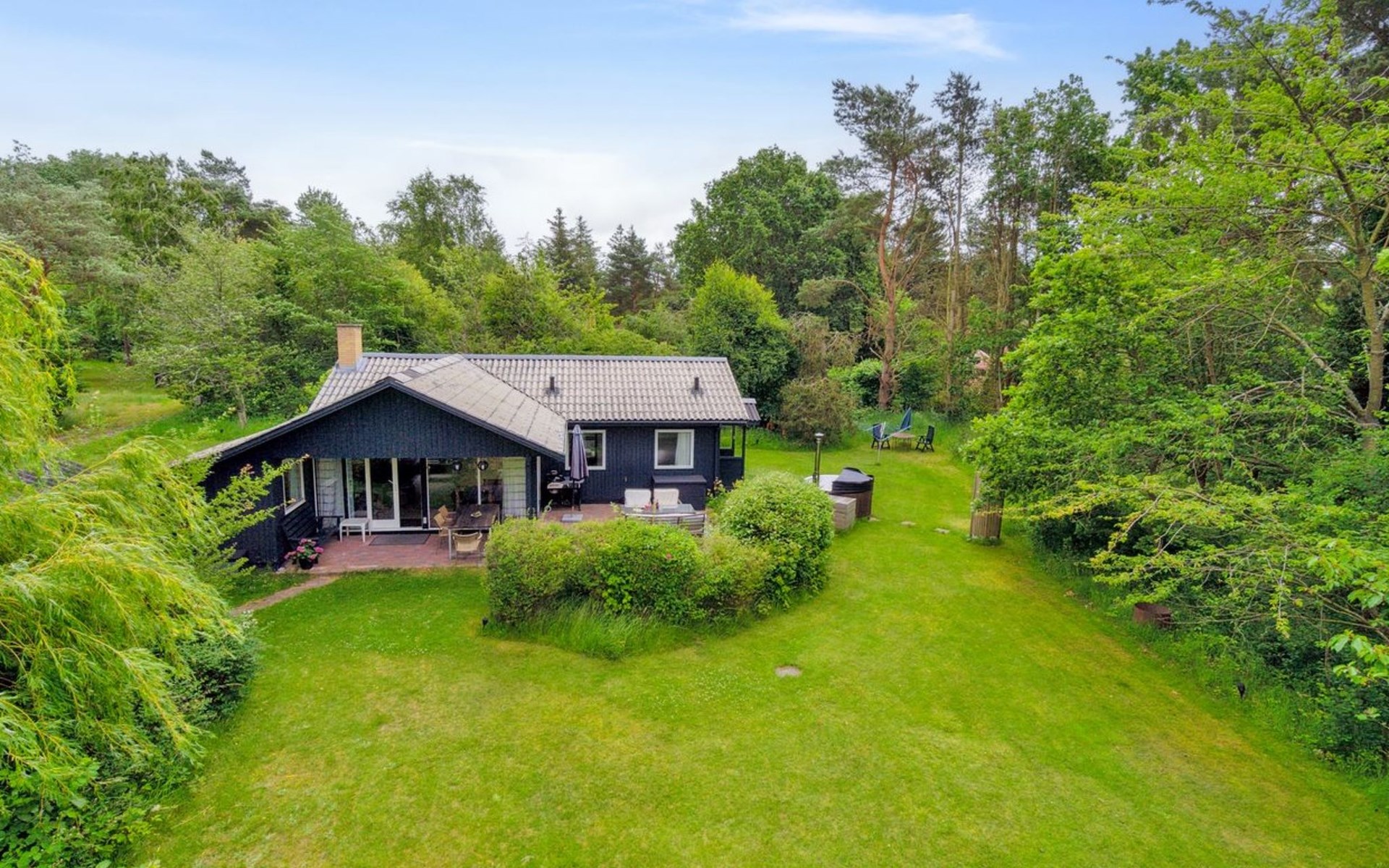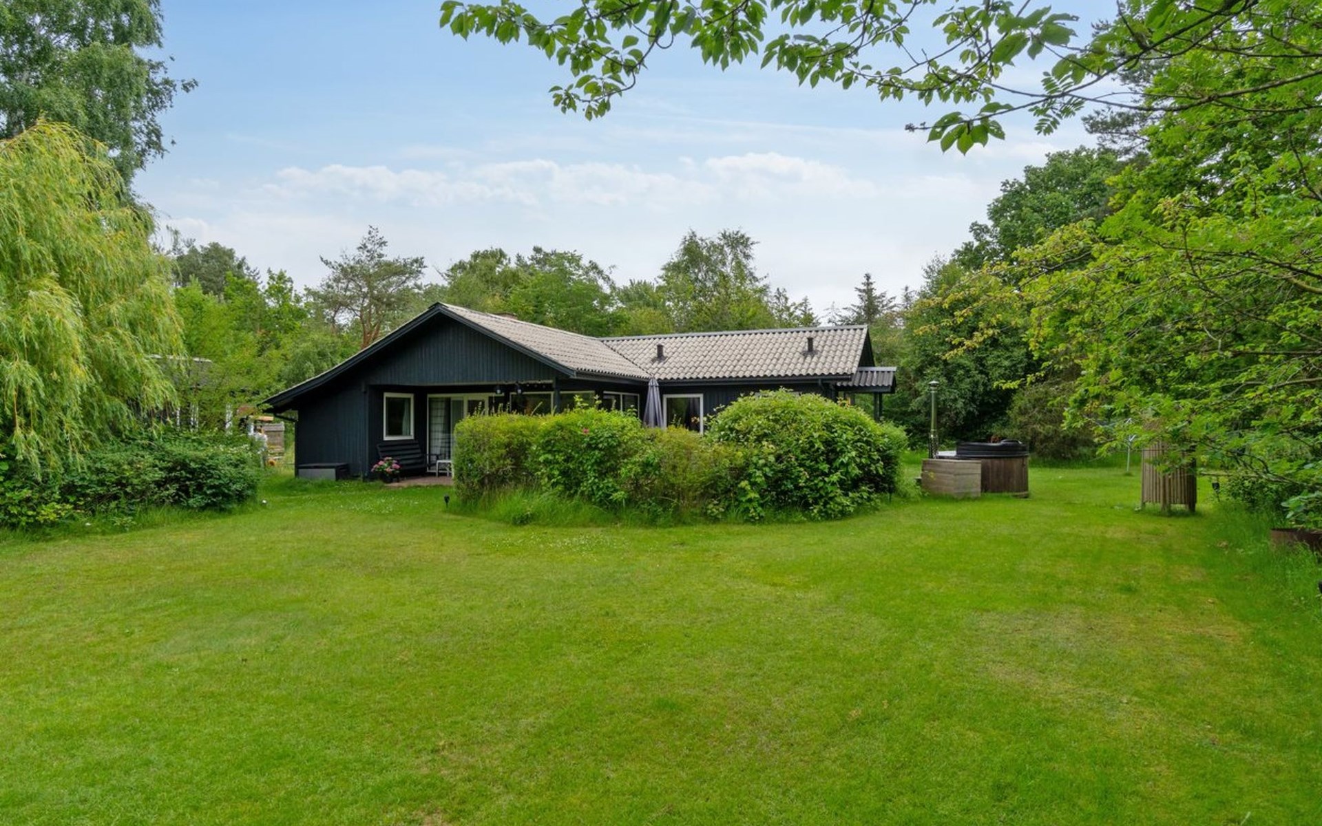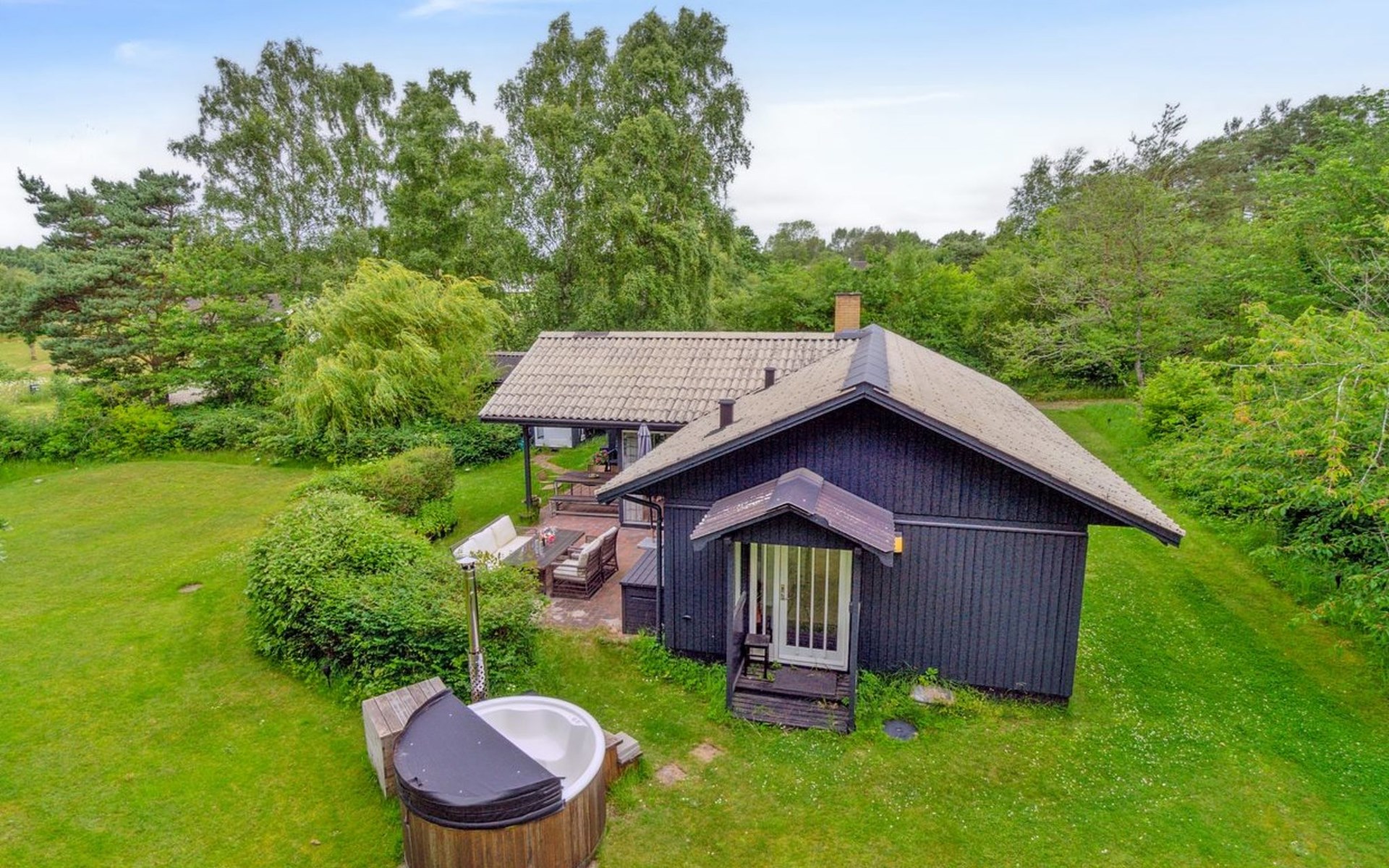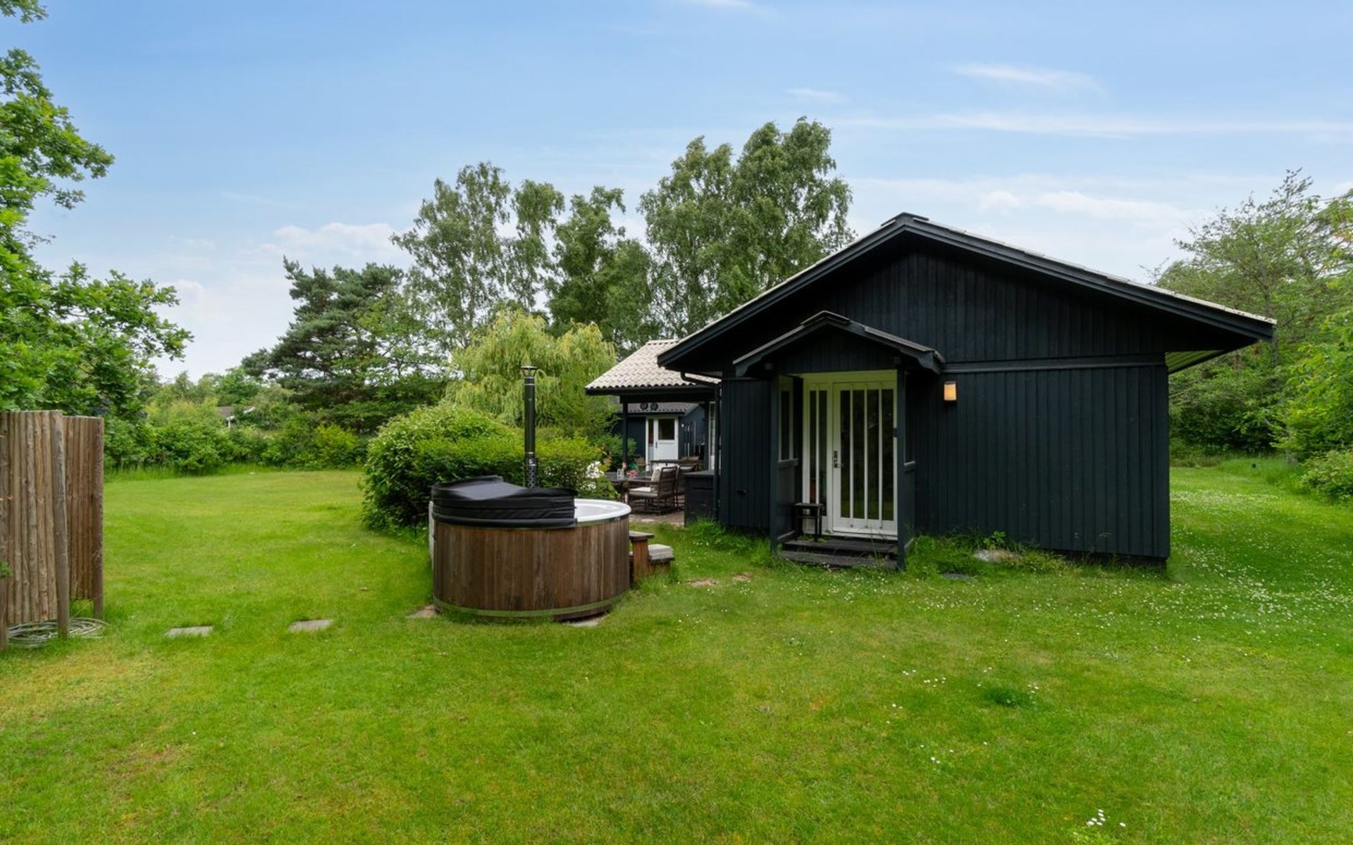 Single-family house, built in 1976. 600 m from the sea. Private: natural state property 1'692 m2. Outdoor shower, barbecue, parking at the house. Grocery 2.7 km. Golf course 3.8 km. The owner does not accept any youth groups.