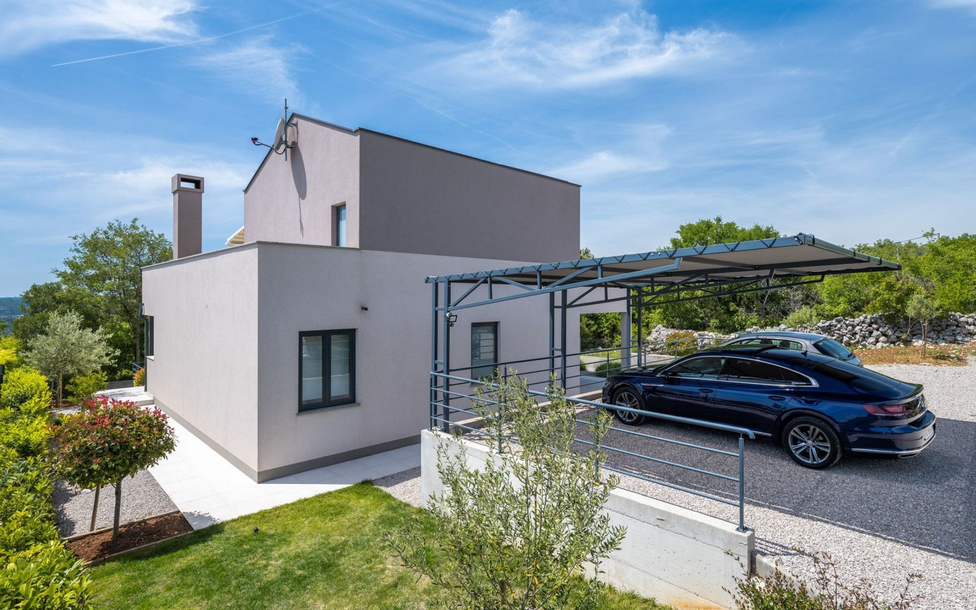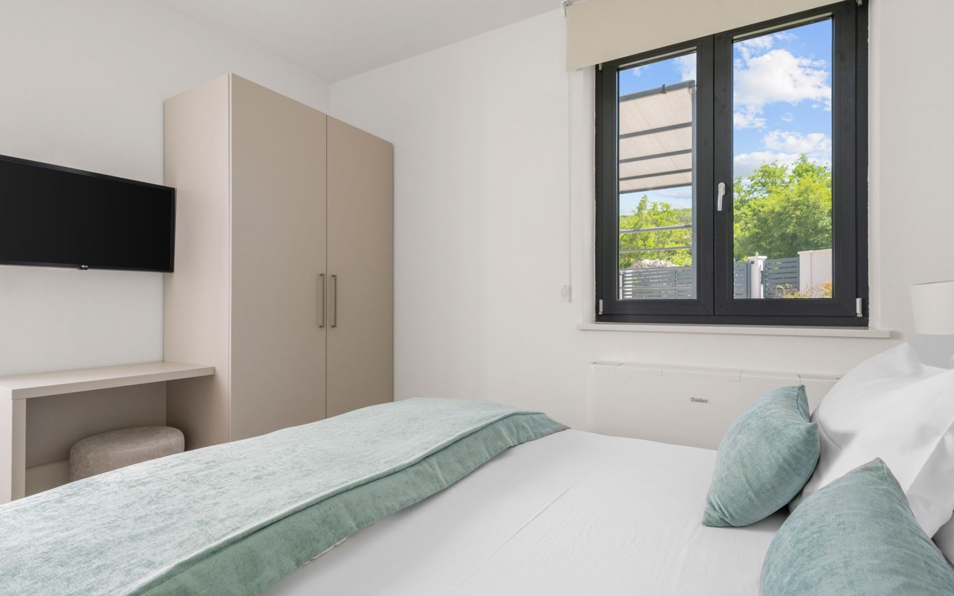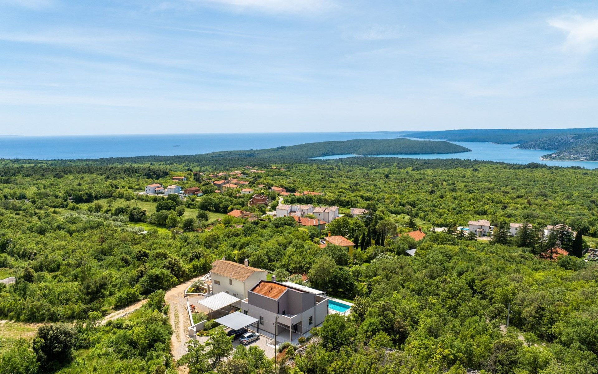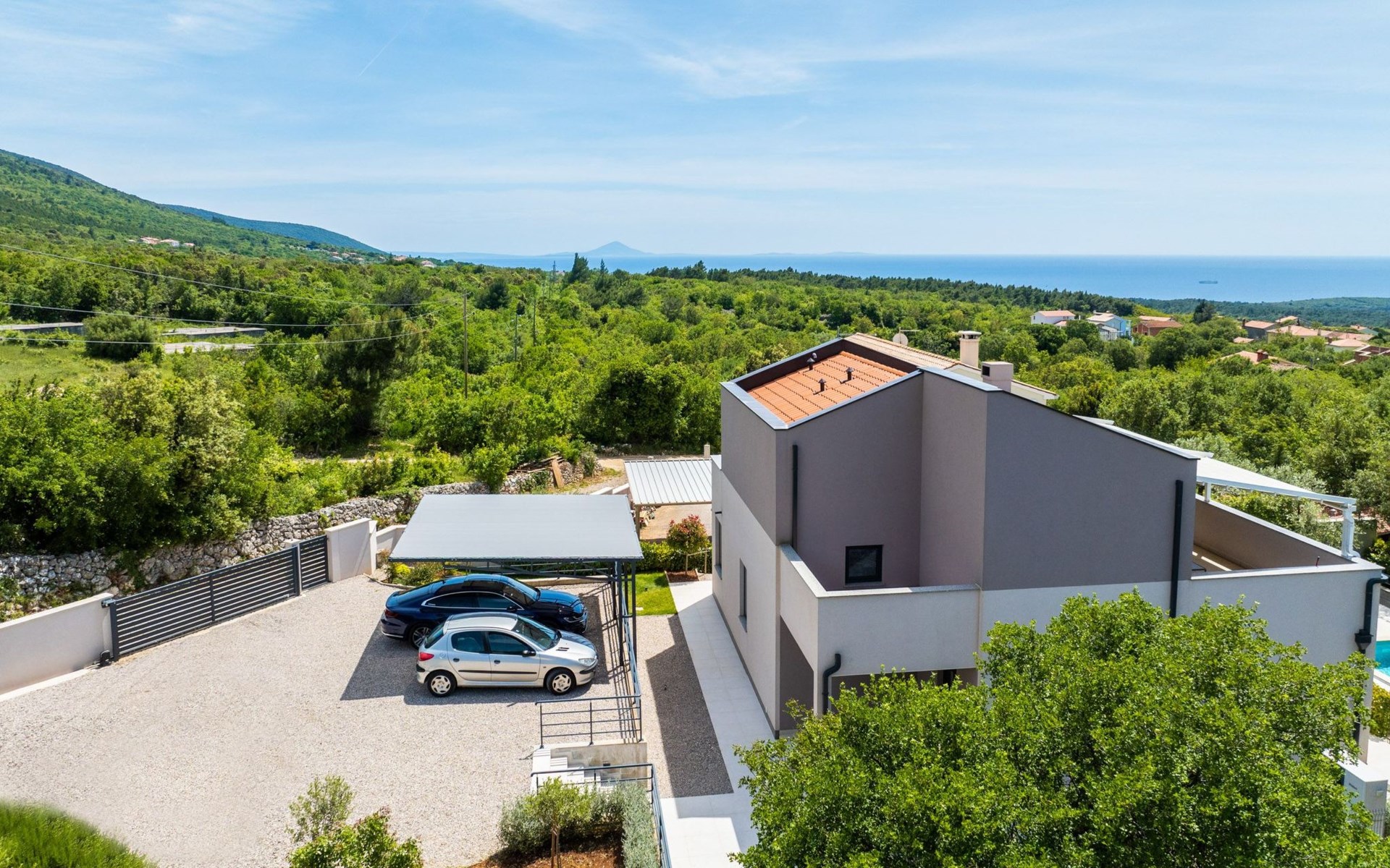 Inside Villa Alba, guests are greeted by a spacious and elegantly decorated interior. On the lower floor of the villa there is a modern kitchen equipped with everything necessary for preparing meals, including a ceramic hob, filter coffee machine, capsule coffee machine, dishwasher and kettle. There is also a spacious dining room and living room, along with one bedroom. Two additional bedrooms are located on the upper floor, each with its own bathroom and terrace overlooking the Kvarner Bay, and each bedroom can be darkened for maximum privacy and comfort.