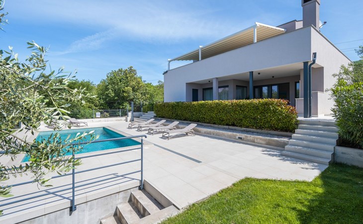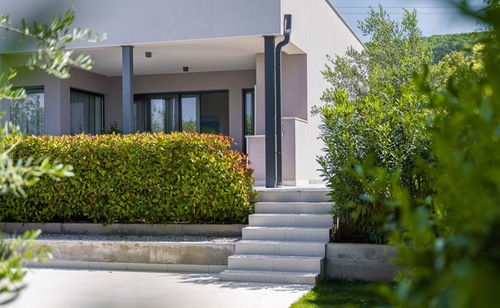 The beautiful outdoor area of Villa Alba is designed for maximum relaxation and enjoyment. Enjoy the outdoor heated pool, relax on the terrace or in the covered summer kitchen perfect for evening entertainment. The villa is surrounded by lush greenery, guaranteeing peace and privacy.