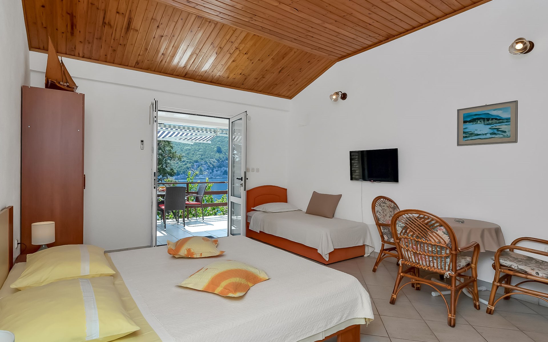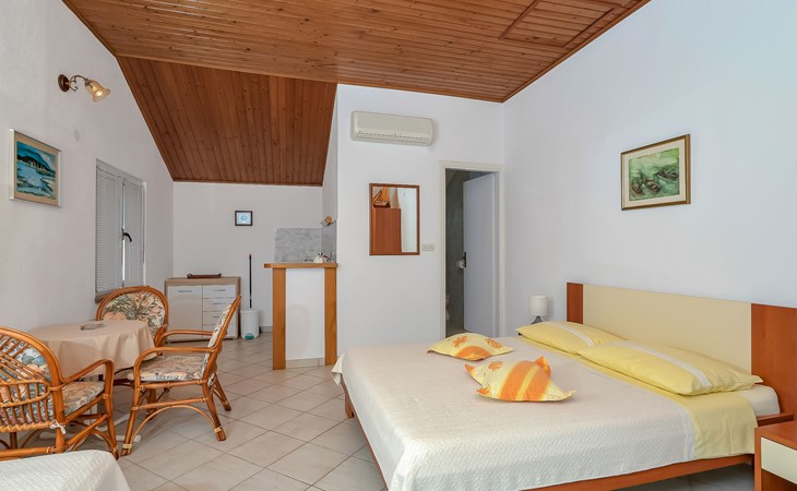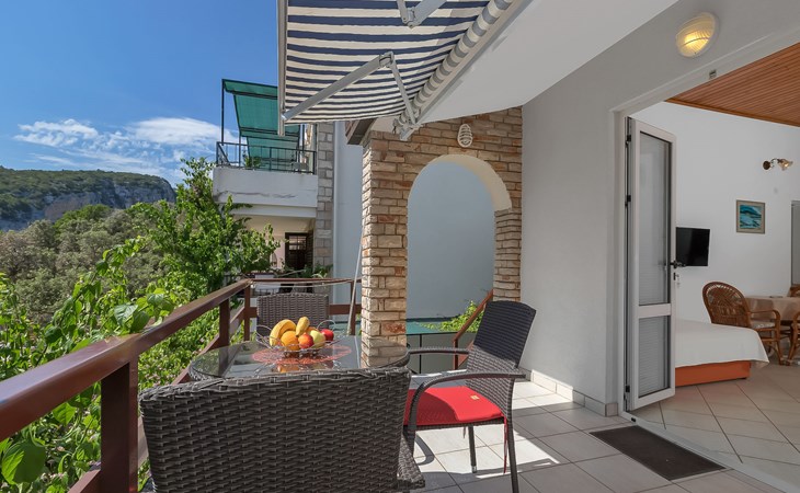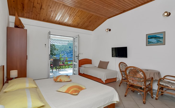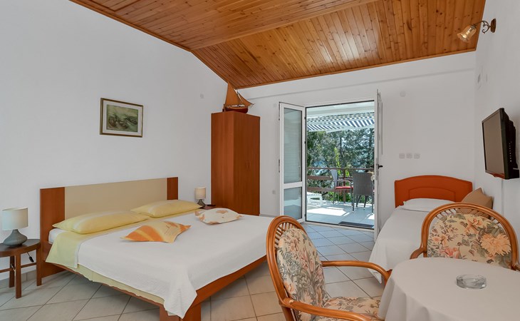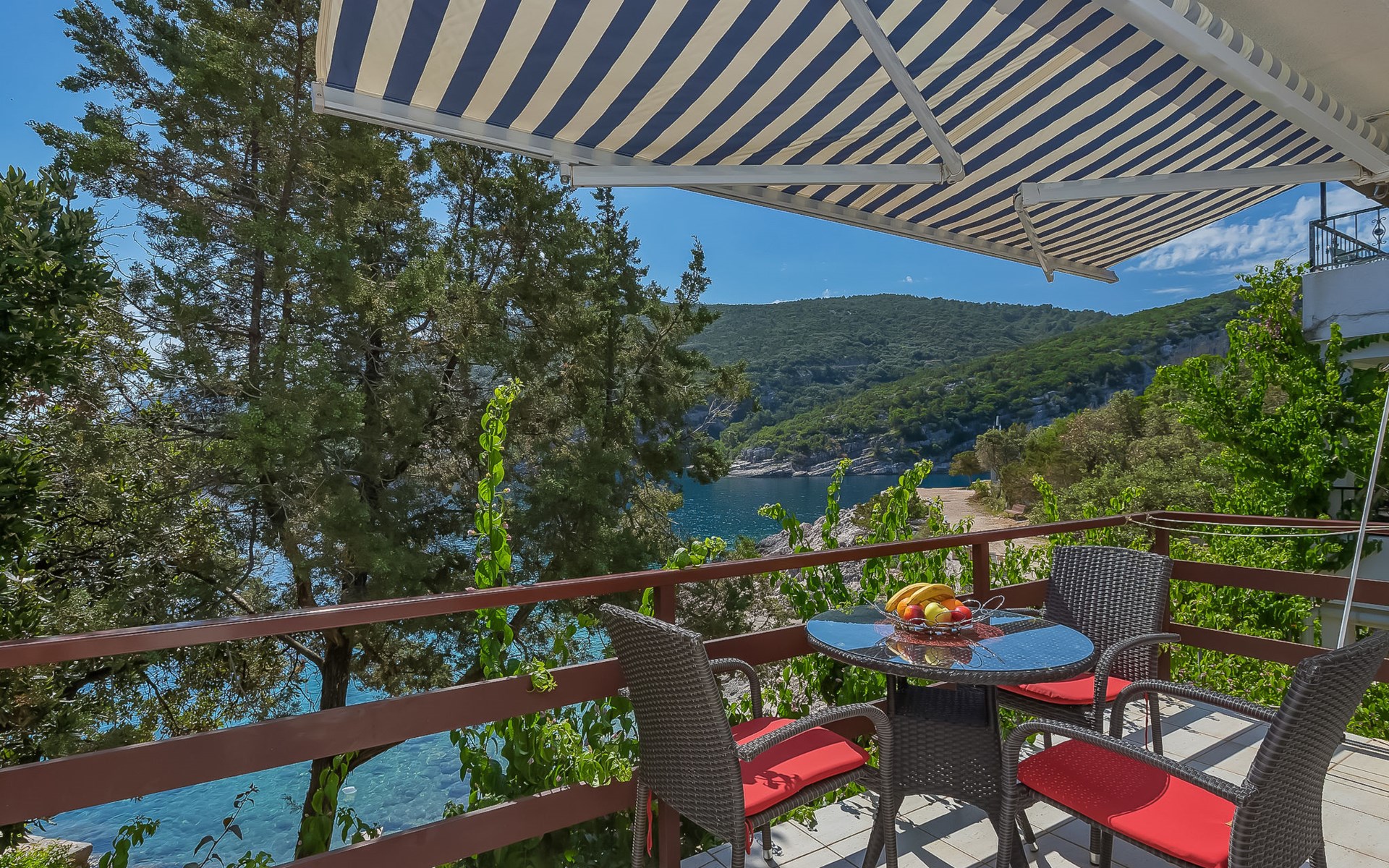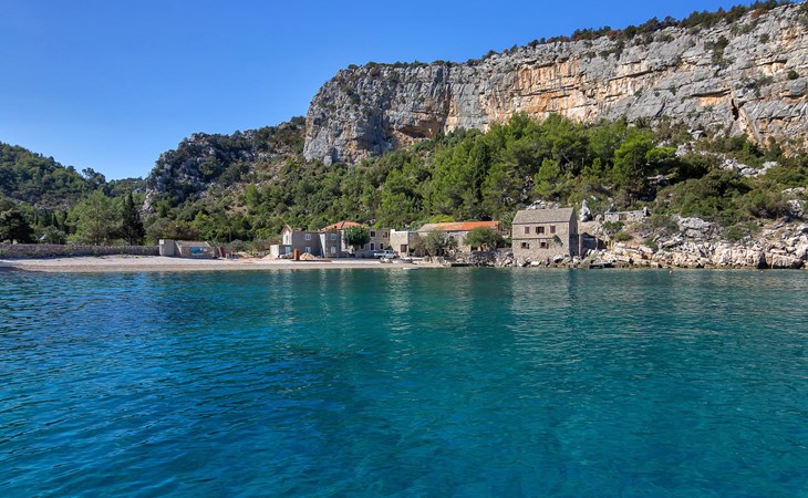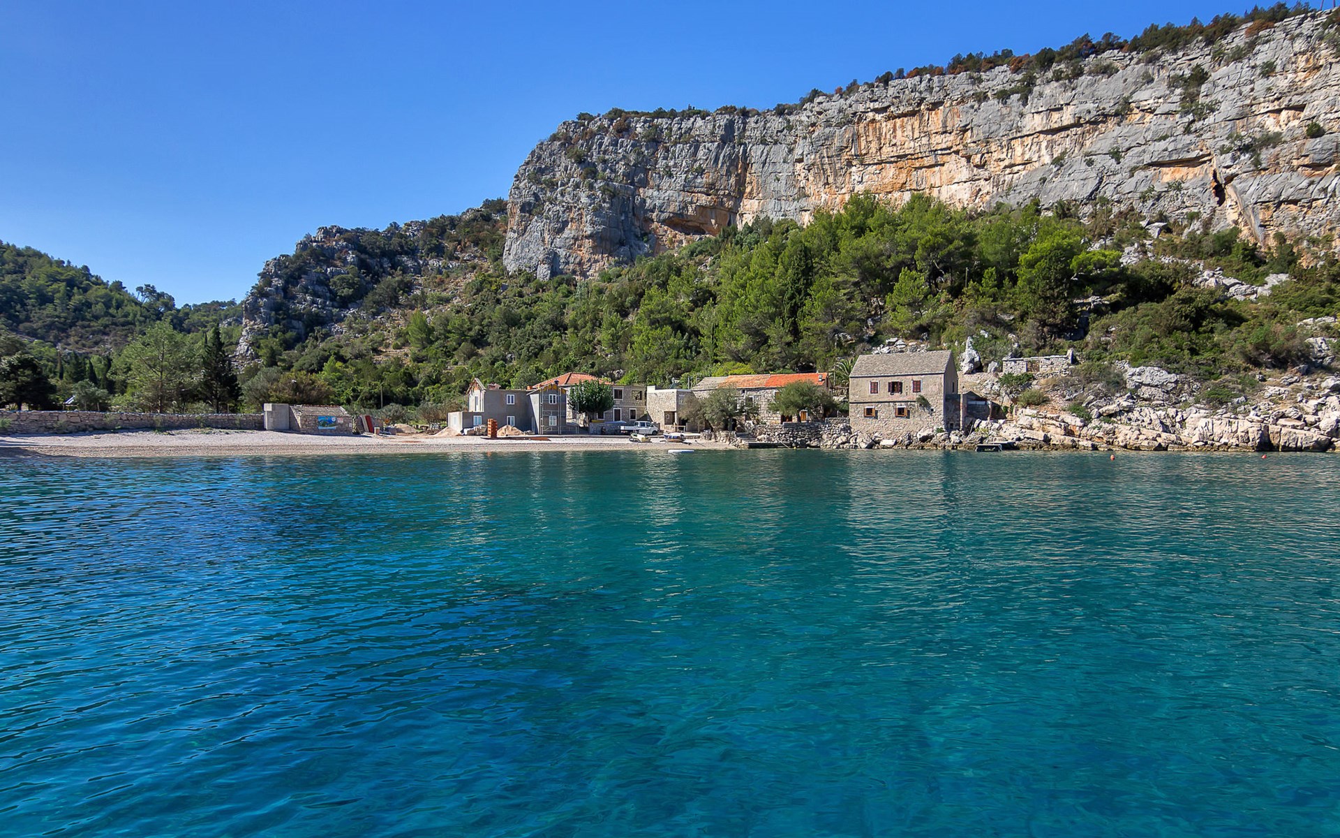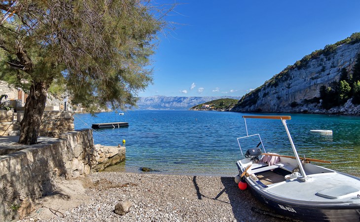 3-family house "Martina". 4 km from the centre of Zastražišće, in a quiet, sunny position, 10 m from the sea, 10 m from the beach. For shared use: barbecue. In the house: internet access, bicycle rental. Parking at the house on the premises. Shop 4 km, restaurant 15 km, bus stop 54.3 km, rocky beach, concrete beach 10 m. Motor-boat rental possible (on request, extra).