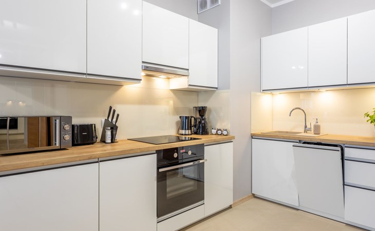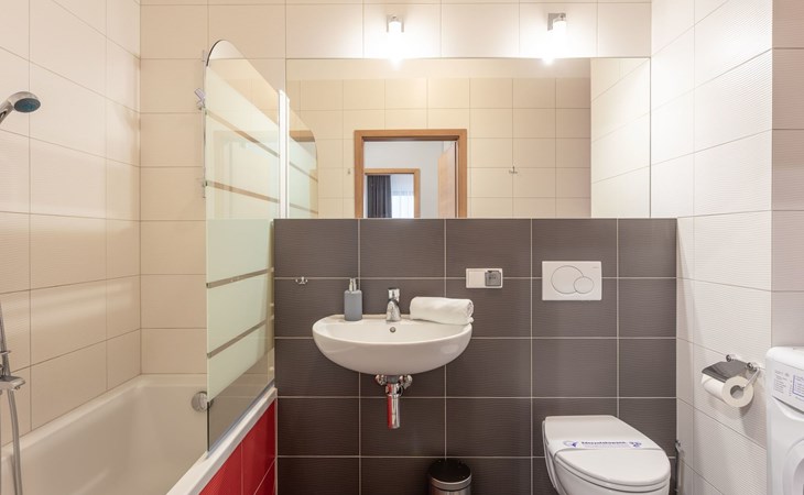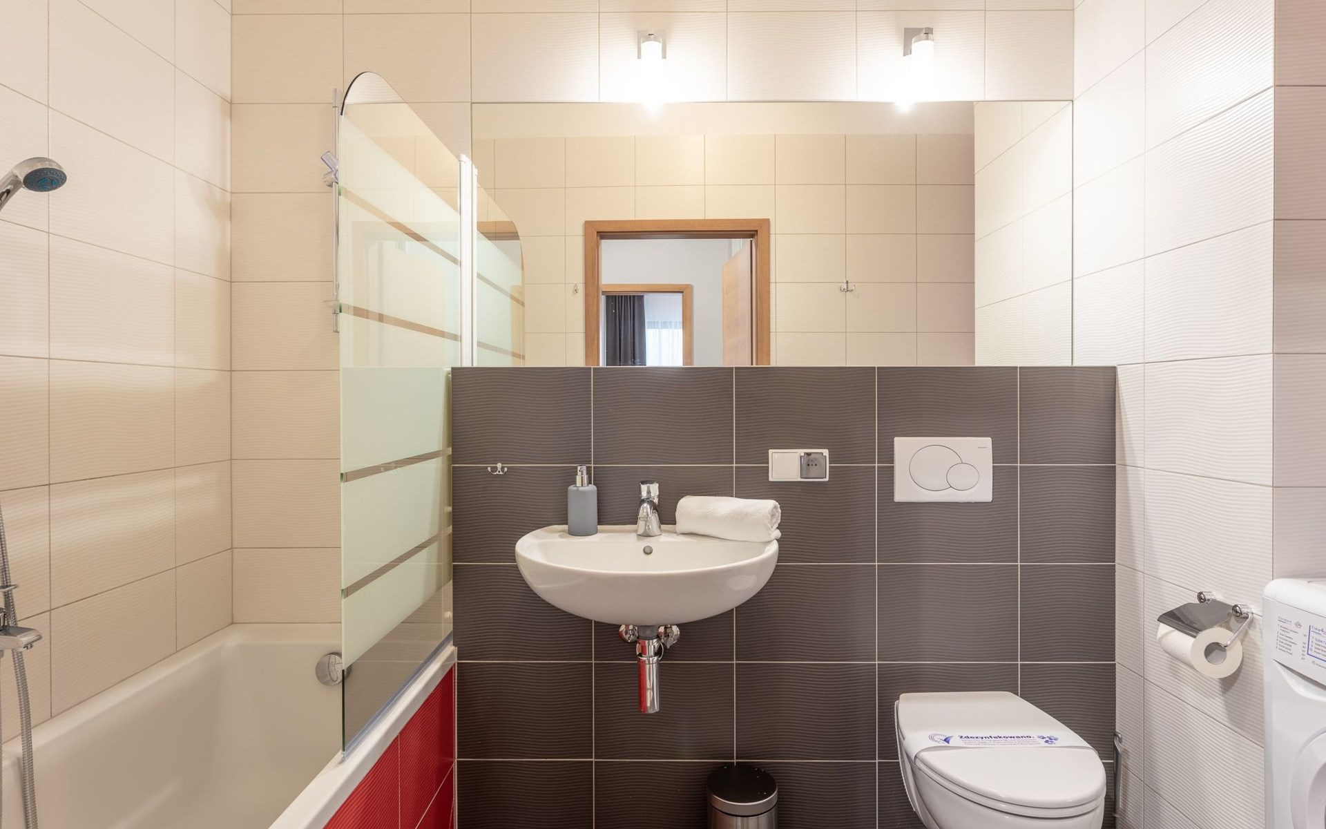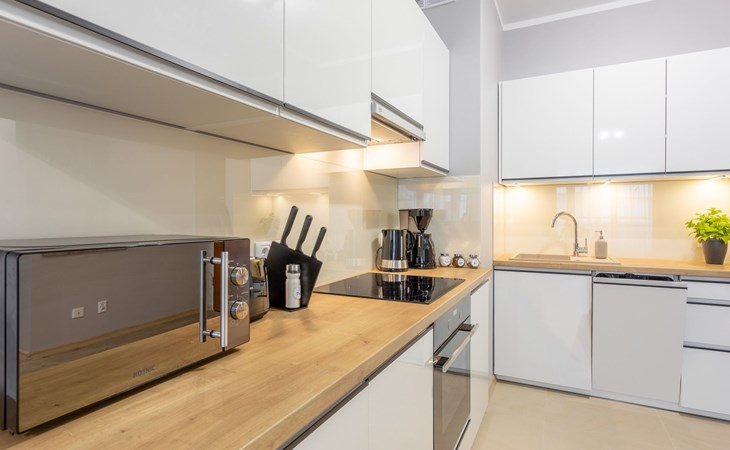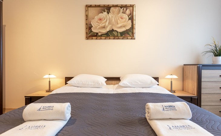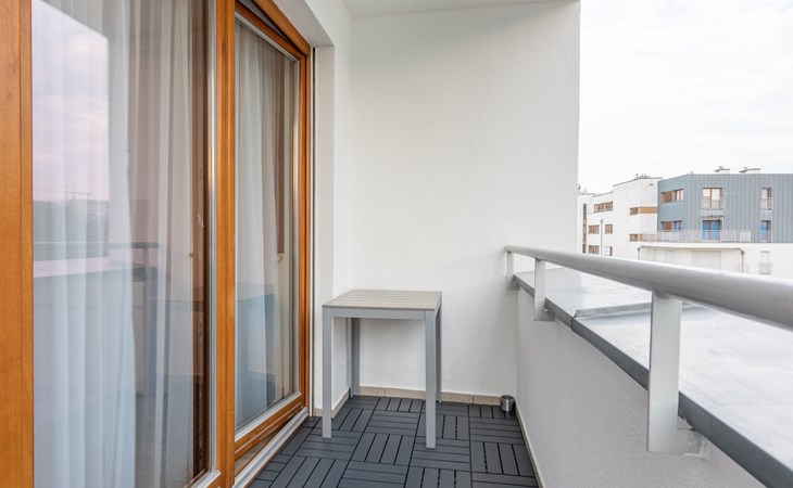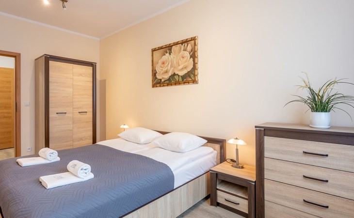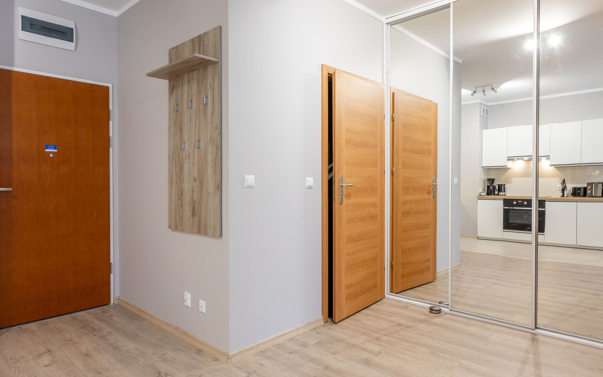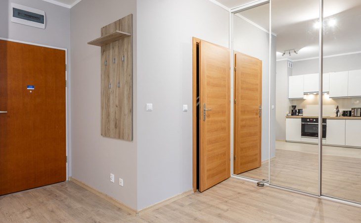 It is a very spacious flat with a total area of 51 m2, not far from the sea. It consists of a large bedroom, a living room with a kitchenette and a bathroom. It also has a sunny balcony where you can enjoy the moments between successive attractions. The interior is dominated by muted neutral colours - white, grey and ecru, enhanced by natural light and simple shapes that bring the mood of order and harmony as well as sublime elegance. In addition, a complete interior not only increases the functionality of the room, but also affects the comfort and true pleasure of use. A touch of rustic atmosphere combined with the ergonomics of modern solutions create an optimal space for relaxation.