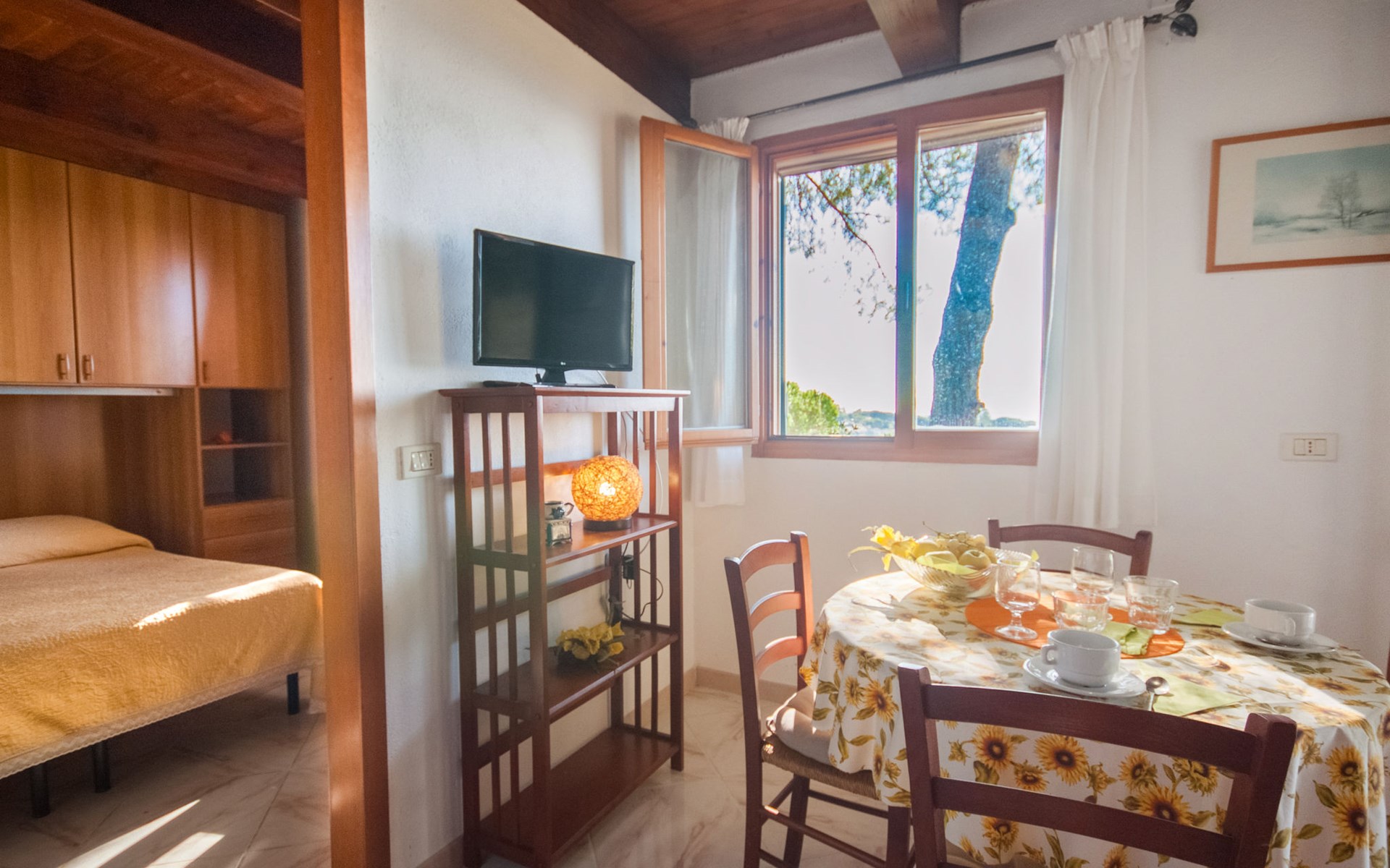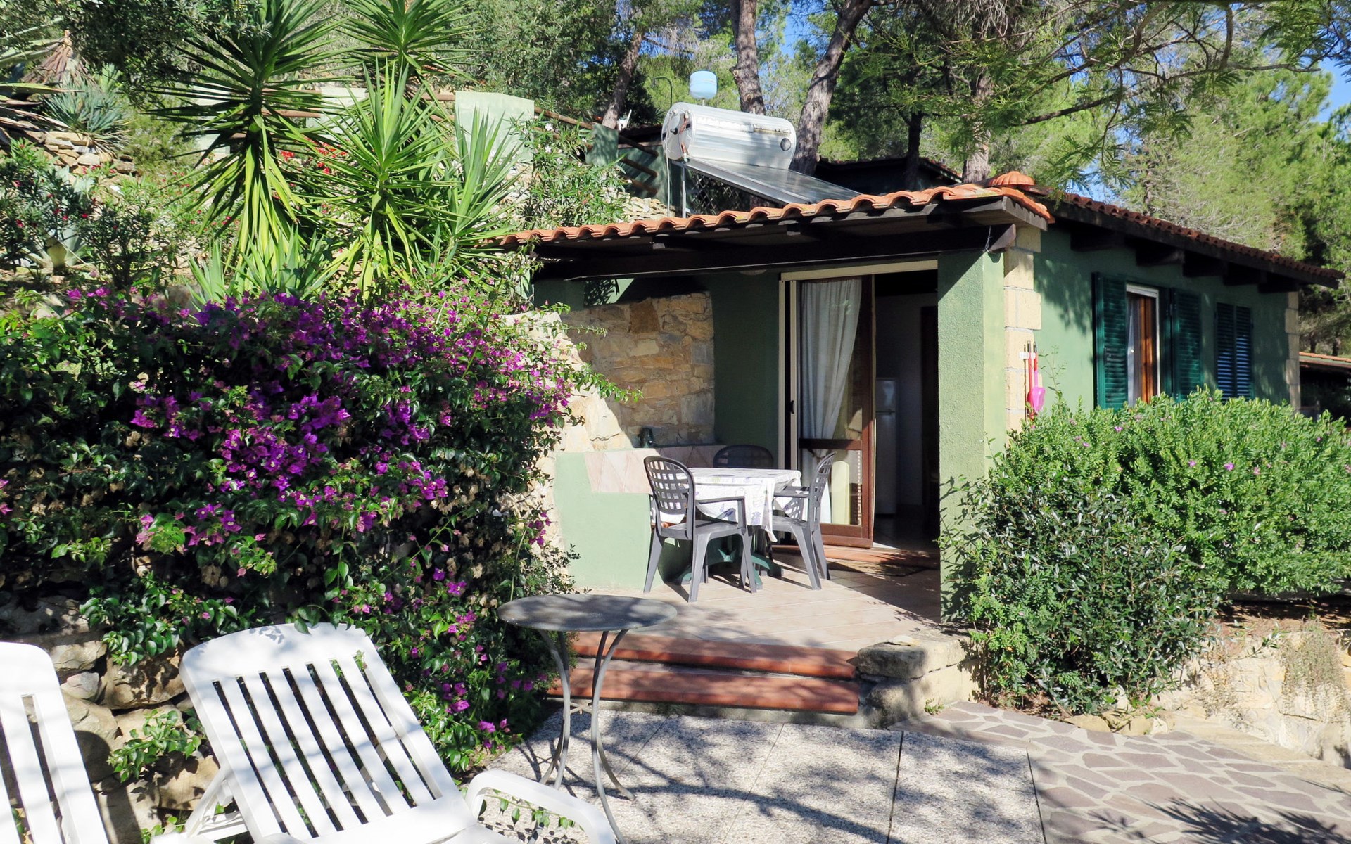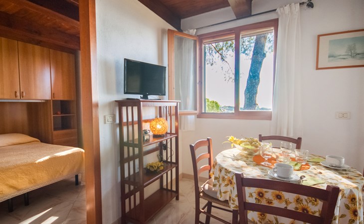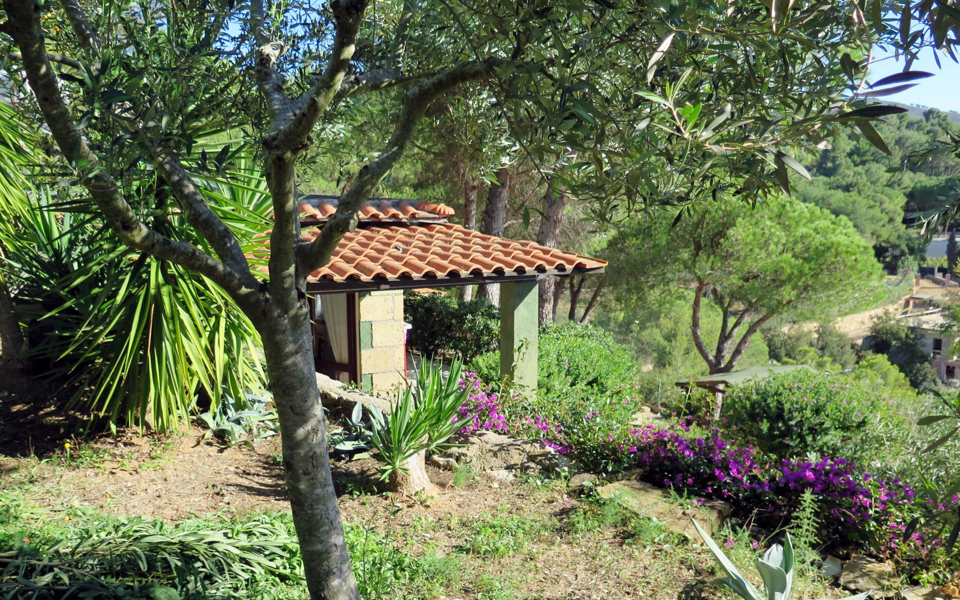 Small resort "Piccola Oasi", surrounded by trees. 7 houses in the residence. 8 apartments in the residence. 1 km from the centre of Capoliveri, 800 m from the sea, 800 m from the beach. For shared use: terraced garden, 10'000 m2 (fenced) with plants and trees, natural garden, pond. Outdoor shower, terrace, garden furniture, barbecue. In the complex: WiFi, washing machine (extra). Grocery 1.5 km, bus stop 250 m, ferry "Portoferraio" 13 km, sandy beach "Barabarca" 800 m pebble beach "Zuccale" 800 m. Nearby attractions: Porto Azzurro 5 km, Portoferraio 13 km. Please note: residence with electric gates. The owner lives on the same property. Animals in the neighbourhood. The owner has 3 small dogs, 2 ponies and turtles. Outside shower not in IT8400.674.2 / IT8400.674.7.
