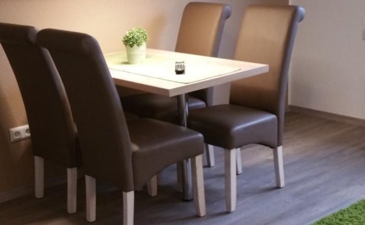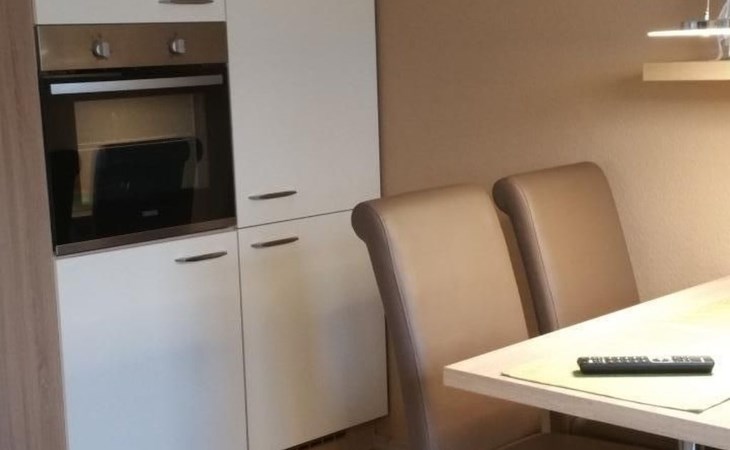 The kitchen is fully equipped with a dishwasher, microwave, coffee machine, kettle, toaster, fridge with freezer compartment and a ceramic hob. A large modern table with very comfortable chairs invites you to dine and linger.
