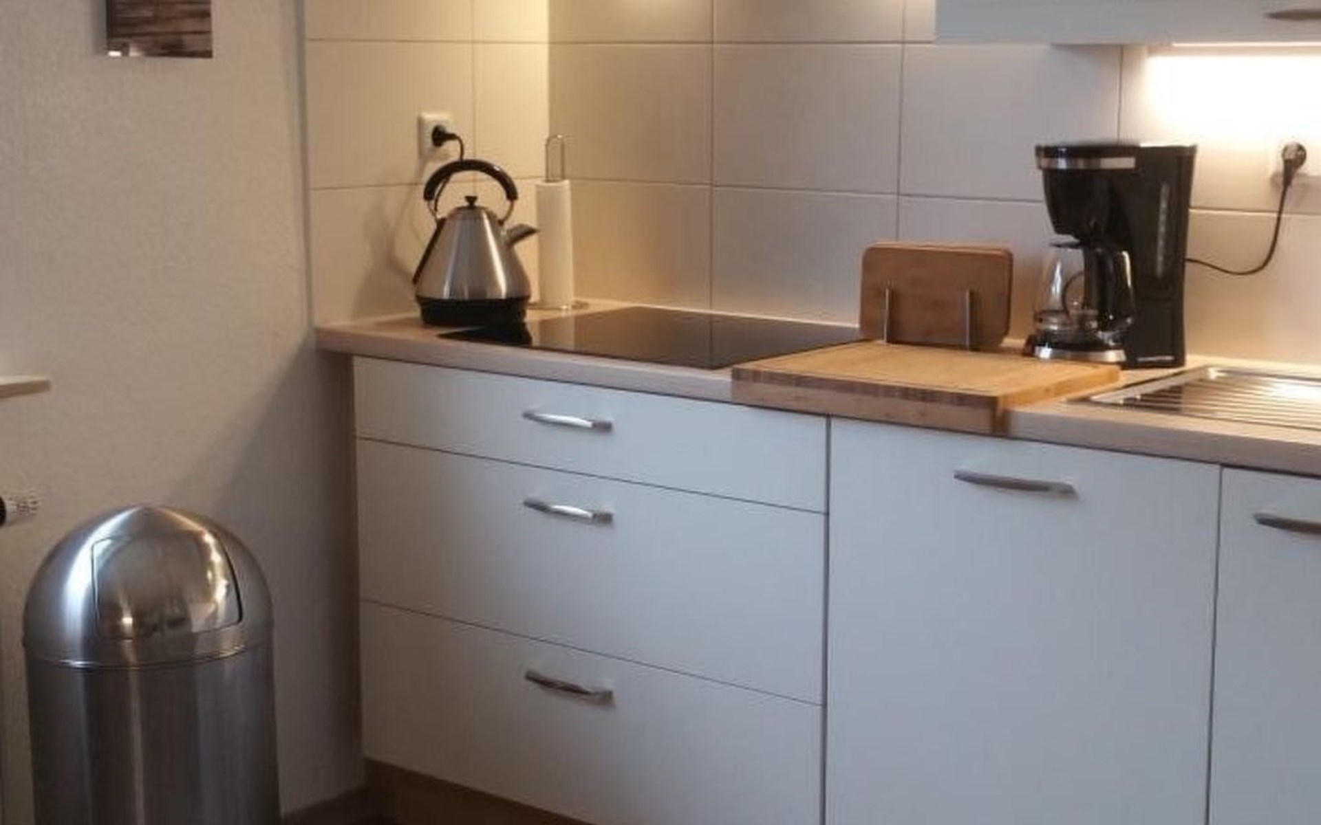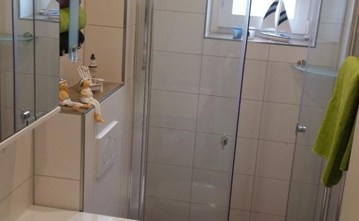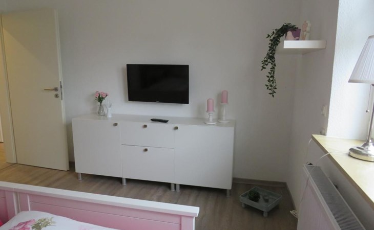 A cosy bedroom with a large double bed and a second bedroom with 2 single beds provide enough space for dream worlds. Wardrobes are available in both rooms for your luggage. Each bedroom also has its own large television! A third television is located in the open-plan living area. WLAN is also a matter of course in this flat.