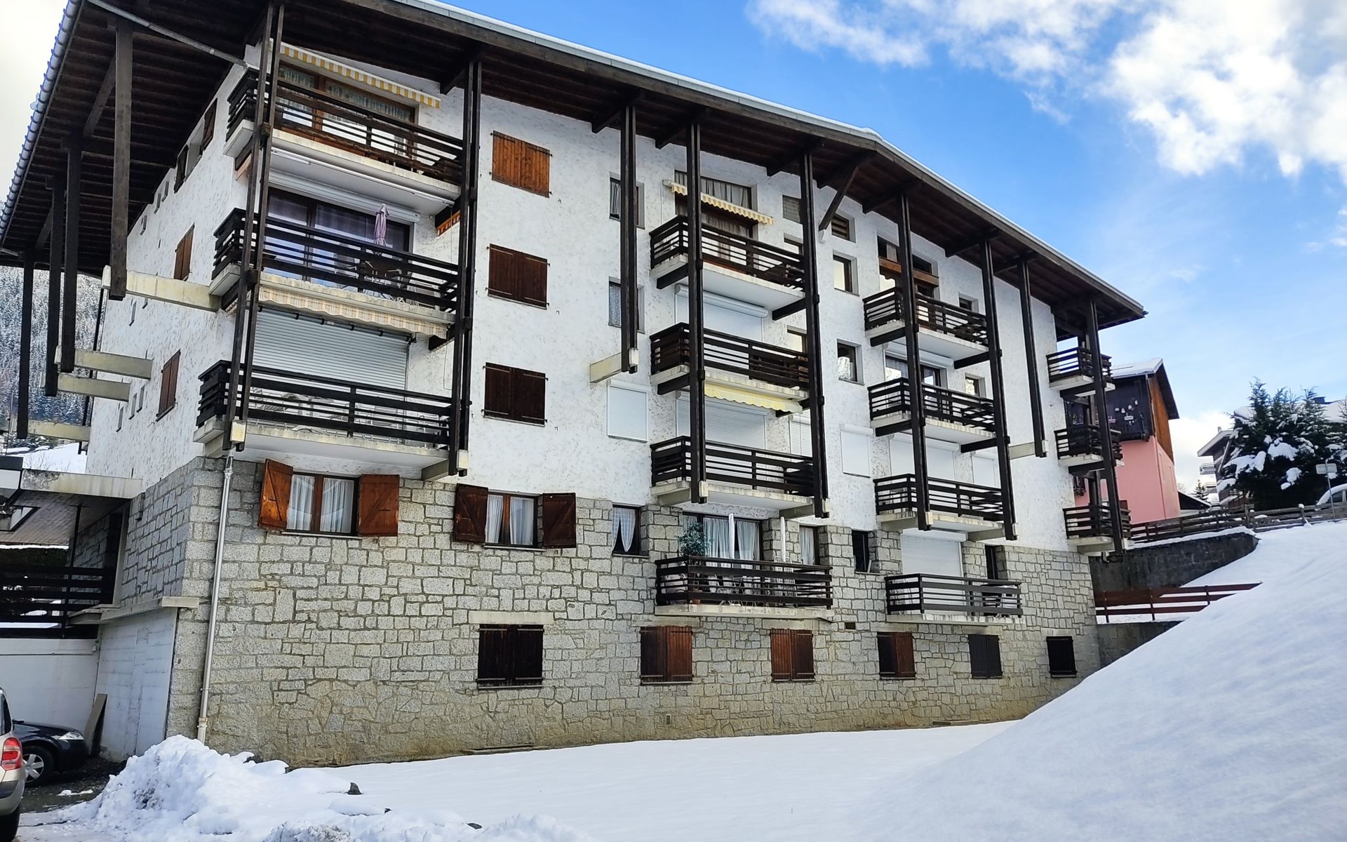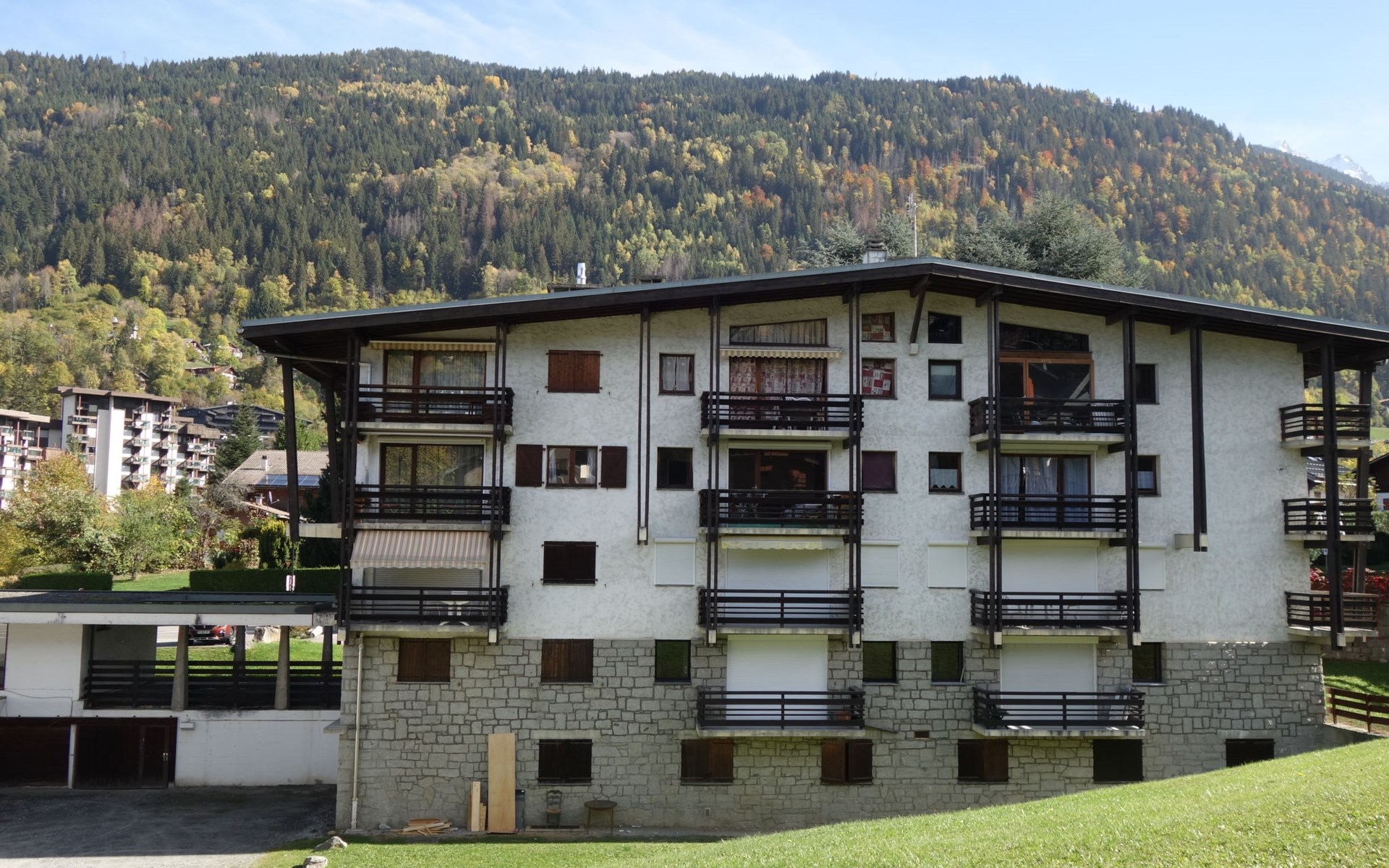Residence "Le Nerey", 3 storeys. On the outskirts, 800 m from the centre of Saint-Gervais, in a quiet position, 7.6 km from the skiing area. In the house: storage room for skis. Grocery 700 m, restaurant 500 m, bakery 100 m, 10 minute walk to the centre, bus stop "téléphérique / télécabine" 400 m, outdoor swimming pool 1.3 km, thermal baths "Thermes de Saint-Gervais" 6.3 km. Skisport facilities 400 m, ski bus stop 100 m, ice rink 500 m. Well-known ski regions can easily be reached: Domaine Evasion 500 m. Please note: no lift.