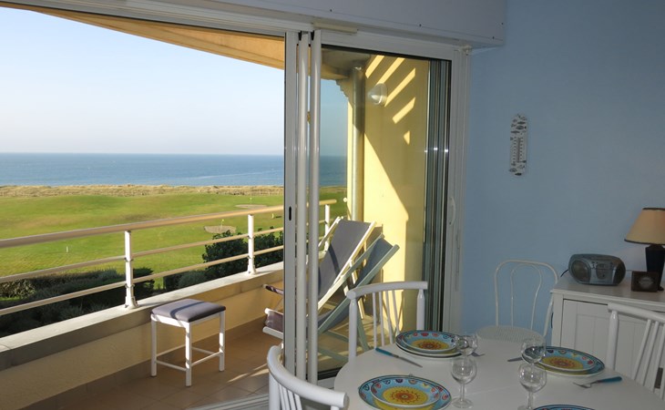 Residence "Pamplemousse Face Mer", 5 storeys. 100 apartments in the residence. 2 km from the centre of Saint Jean-de-Monts, 16 km from the centre of Saint Hilaire-de-Riez, 20 km from the centre of Challans, 150 m from the sea, in a cul-de-sac. For shared use: property, lawn, swimming pool fenced (20 m2, depth 90 - 170 cm, seasonal availability: 15.Jun. - 15.Sep.). Children's pool, outdoor shower. In the house: lift. Parking (limited number of spaces), public parking 50 m. Shop 1 km, bus stop 2 km, sandy beach 150 m, indoor swimming pool 2.5 km. Golf course (18 hole) 50 m. Nearby attractions: Ile de Noirmoutier 20 km, Saint Gilles Croix de Vie 20 km, Pornic 45 km, Nantes 75 km, Pornichet-La Baule 80 km. Please note: car-free holiday complex. Residence with electric gates.