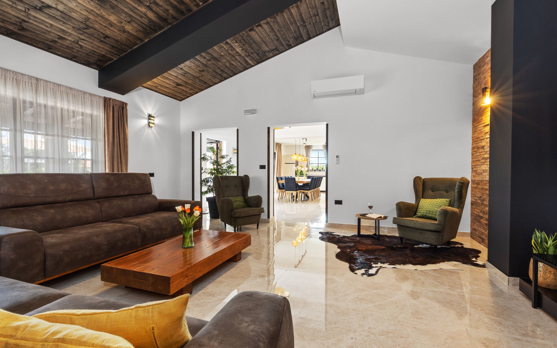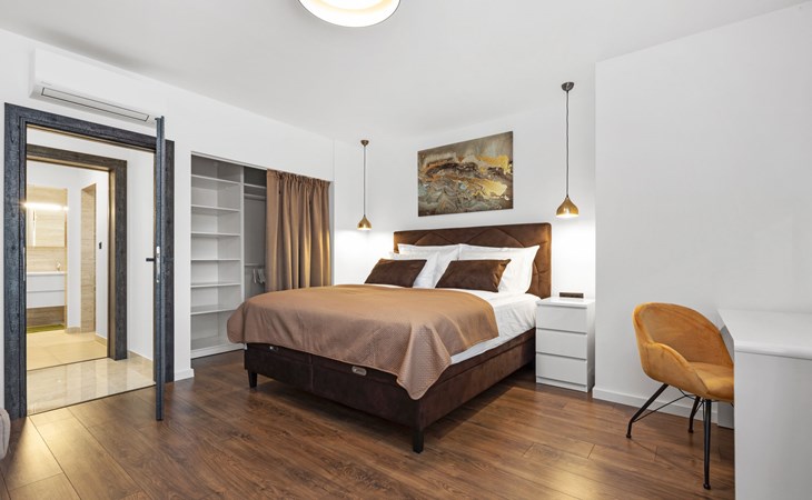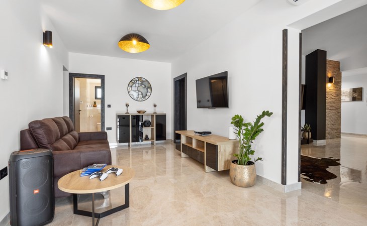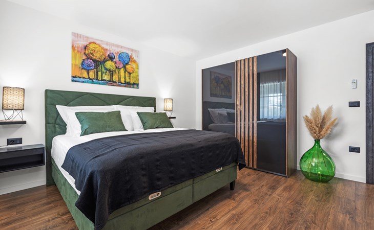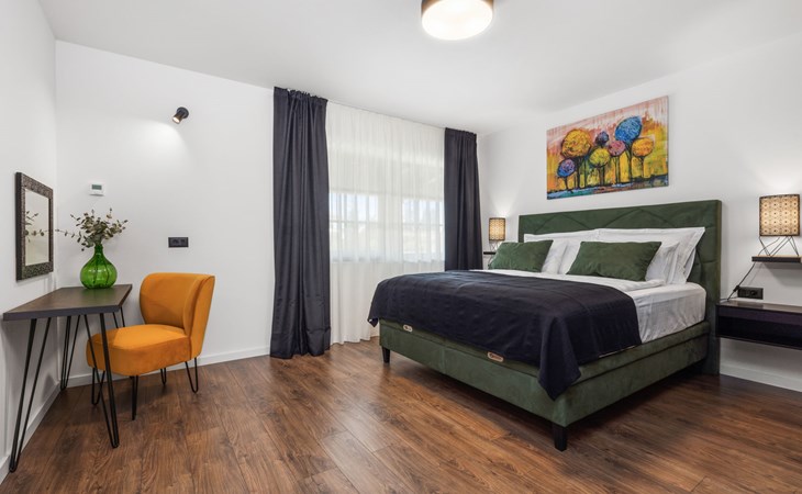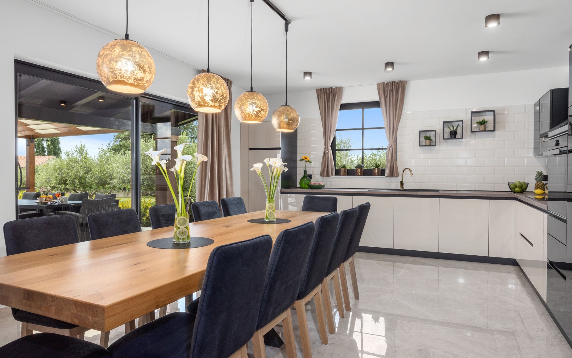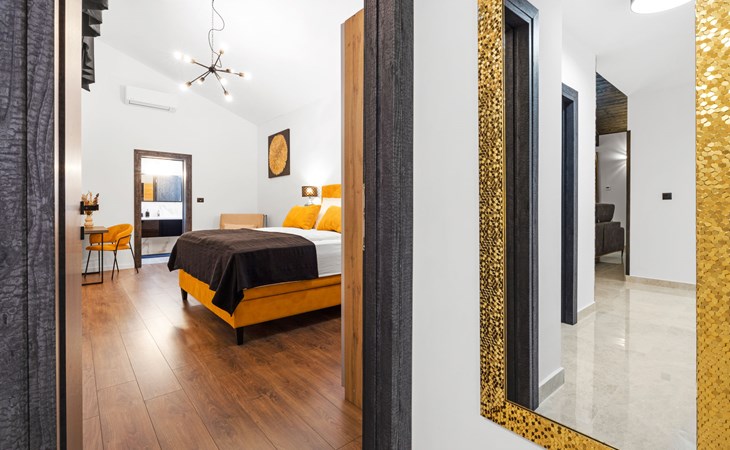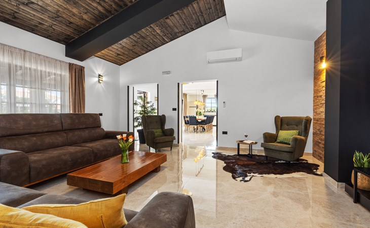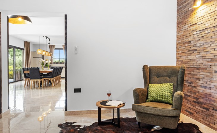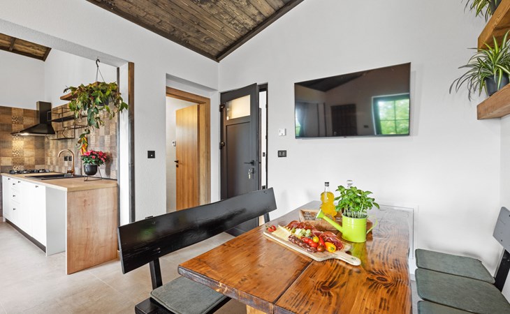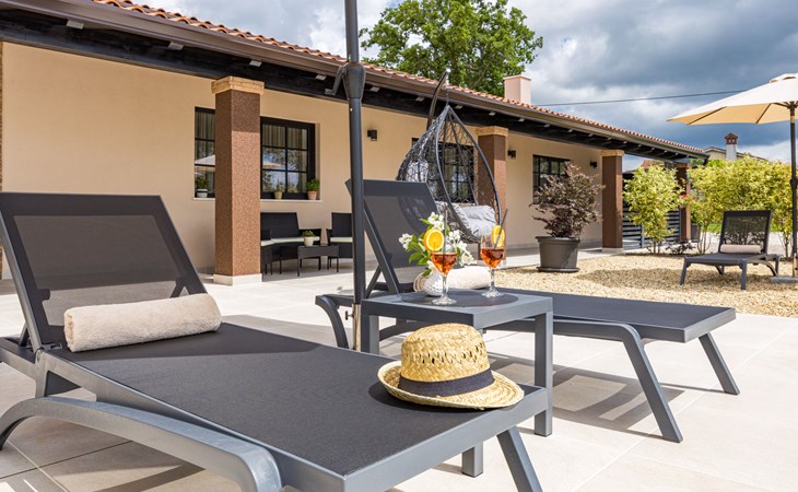 Very beautiful, luxurious single-family house "Villa Venezia". In the hamlet Markoci 6 km from the centre of Labin, 12 km from the centre of Rabac, in a quiet, sunny position, 12 km from the sea, in the countryside. Private: property 10'000 m2 with lawn and wildlife garden, swimming pool angular (40 m2, depth 140 cm, seasonal availability: 29.Mar. - 30.Oct.) with internal staircase. Outdoor shower, hot tub, table tennis, badminton, volleyball court, terrace, garden furniture, barbecue, pool maintenance by the owner/gardener. In the house: internet access, billiard table, washing machine. Parking (for 4 cars) at the house on the premises. Shop 1 km, supermarket 6 km, restaurant 1 km, bus stop 7.1 km, pebble beach 12 km. Please note: airfield 45 km from the property.