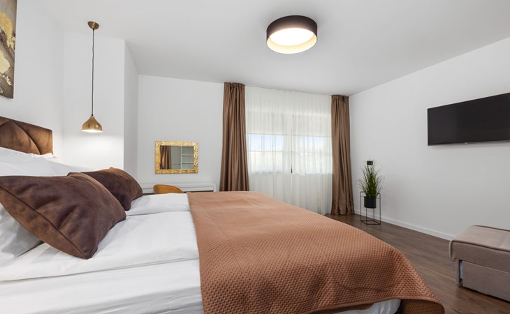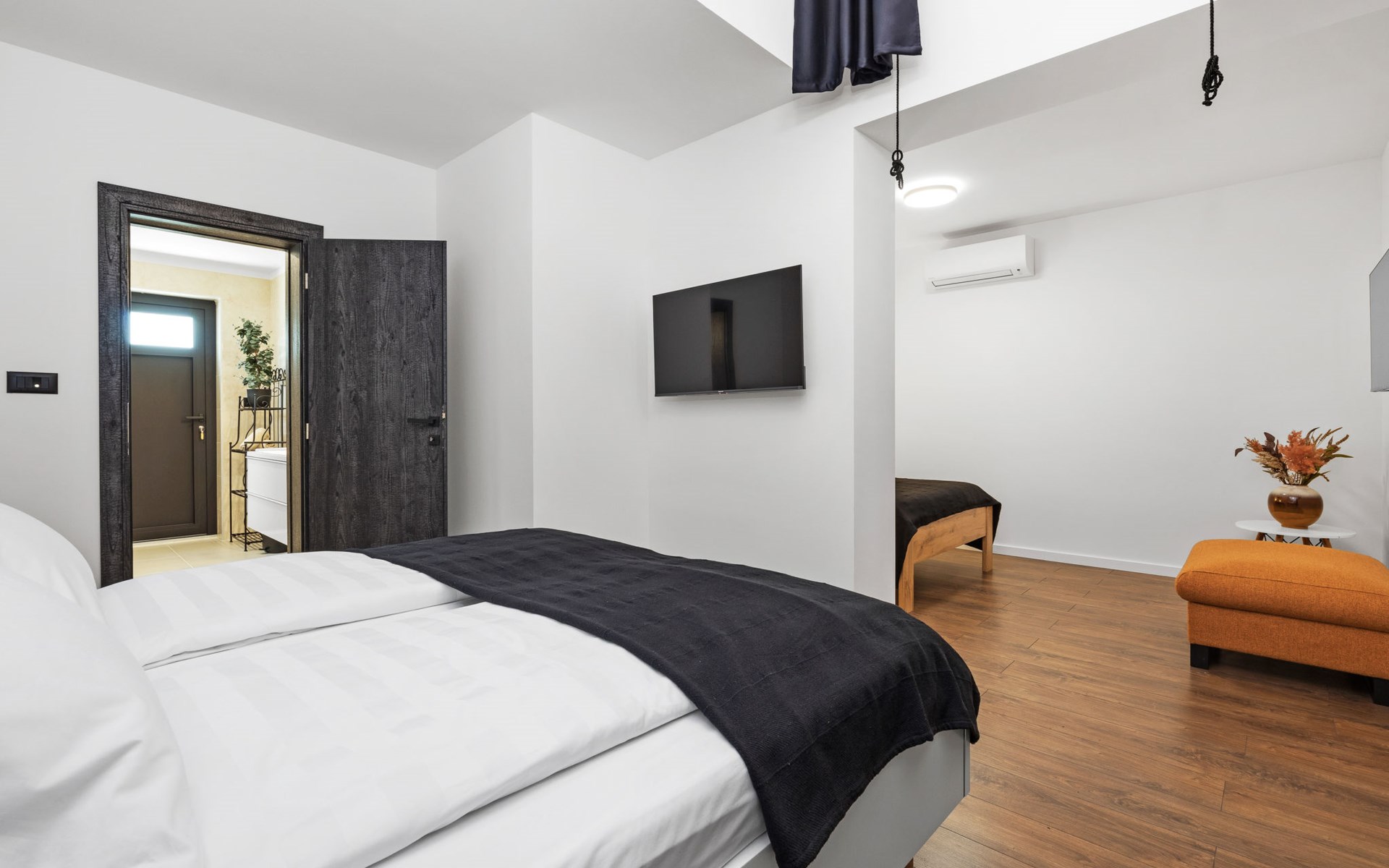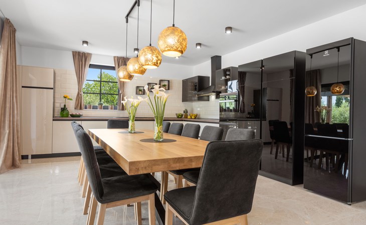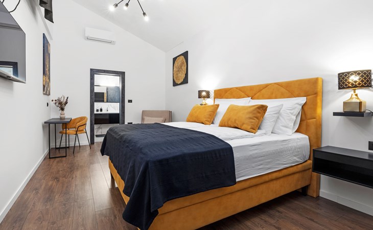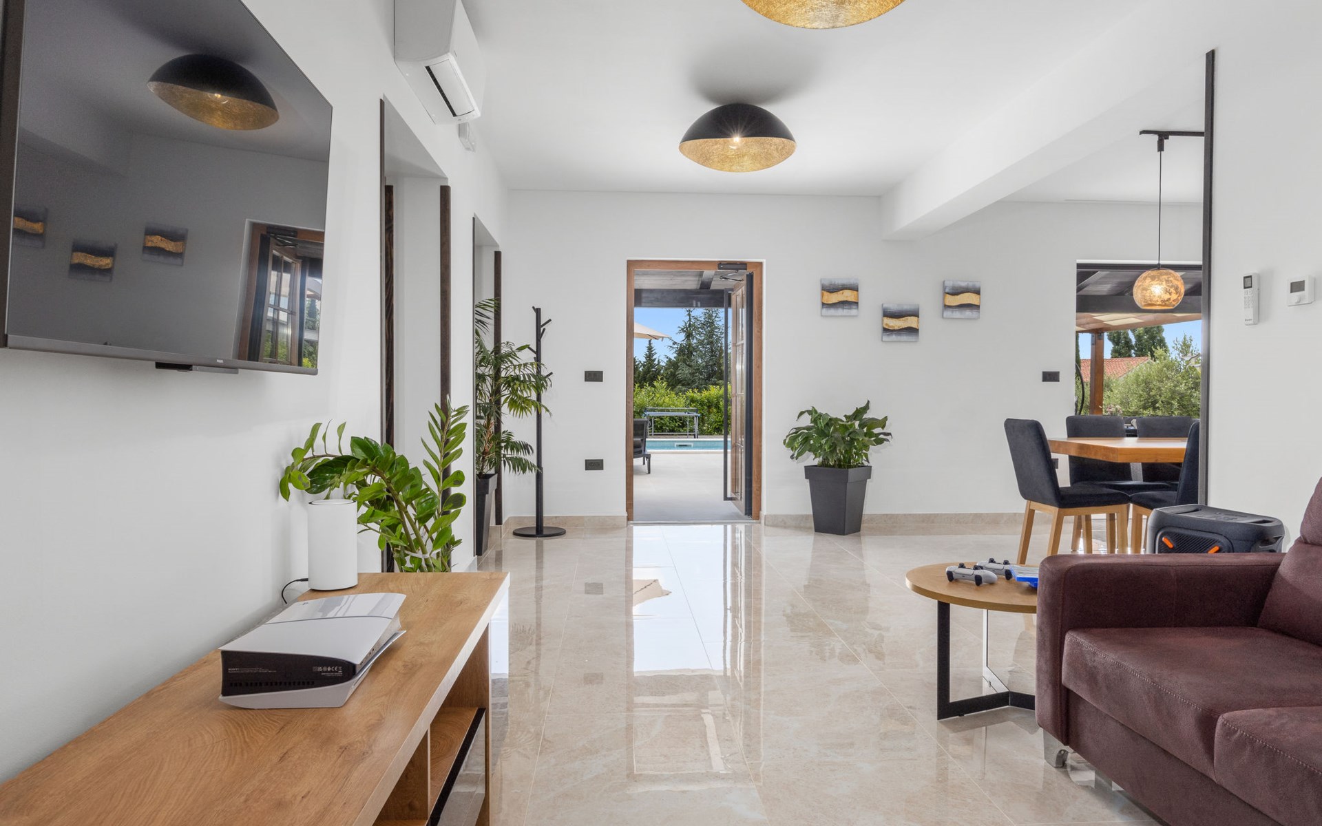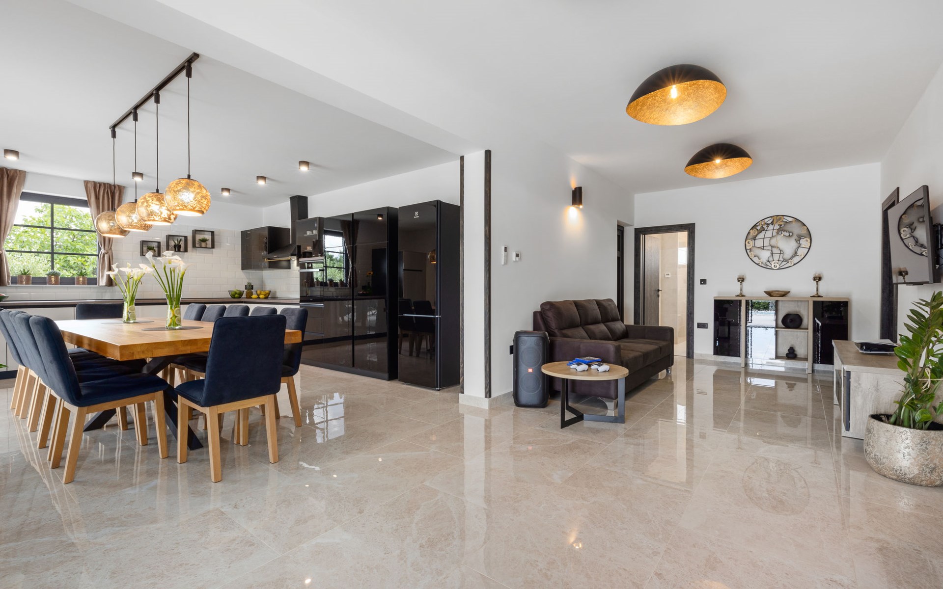 Very beautiful, luxurious single-family house "Villa Venezia". In the hamlet Markoci 6 km from the centre of Labin, 12 km from the centre of Rabac, in a quiet, sunny position, 12 km from the sea, in the countryside. Private: property 10'000 m2 with lawn and wildlife garden, swimming pool angular (40 m2, depth 140 cm, seasonal availability: 29.Mar. - 30.Oct.) with internal staircase. Outdoor shower, hot tub, table tennis, badminton, volleyball court, terrace, garden furniture, barbecue, pool maintenance by the owner/gardener. In the house: internet access, billiard table, washing machine. Parking (for 4 cars) at the house on the premises. Shop 1 km, supermarket 6 km, restaurant 1 km, bus stop 7.1 km, pebble beach 12 km. Please note: airfield 45 km from the property.