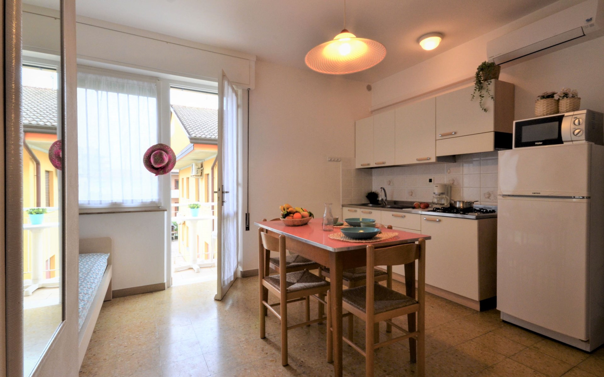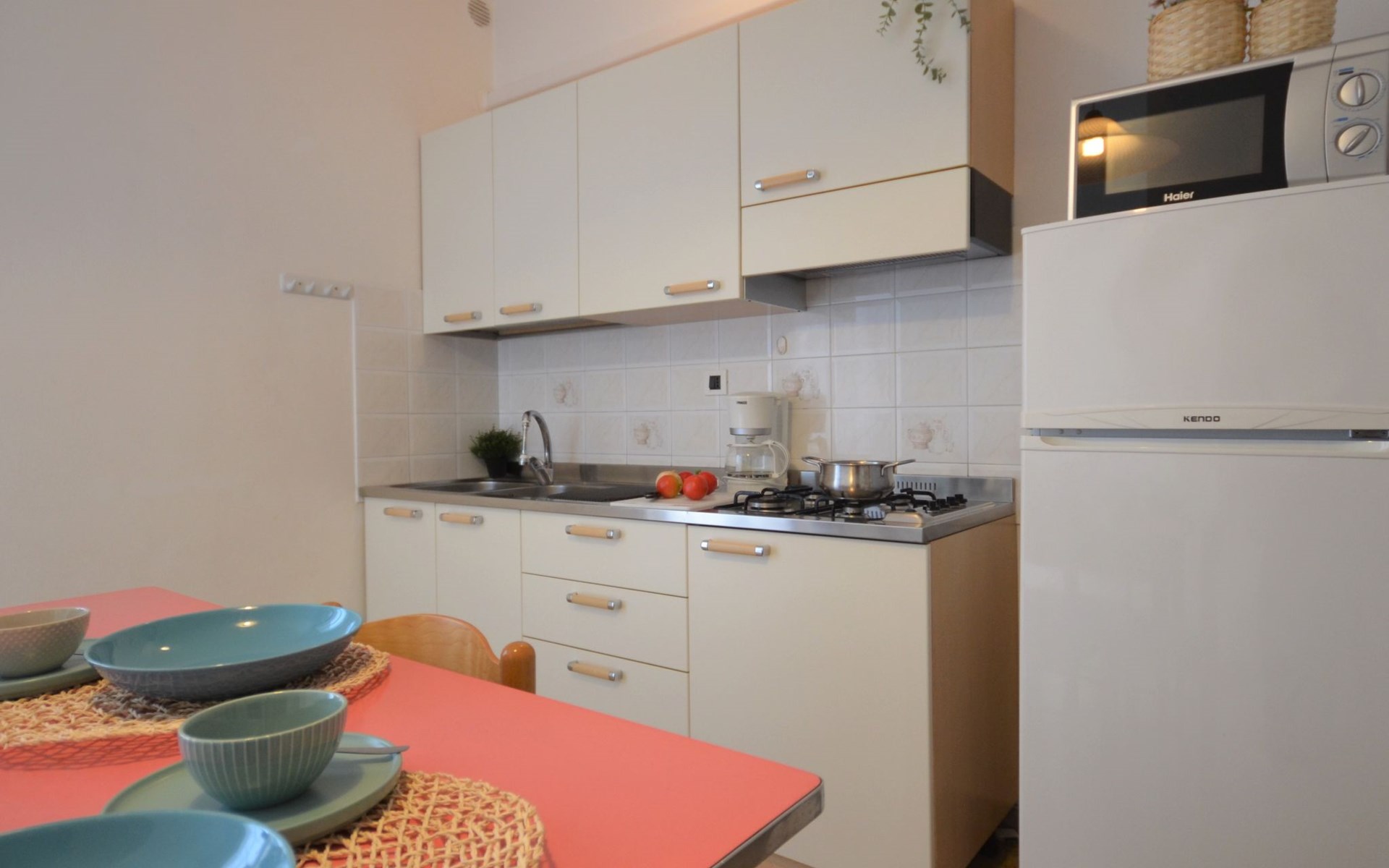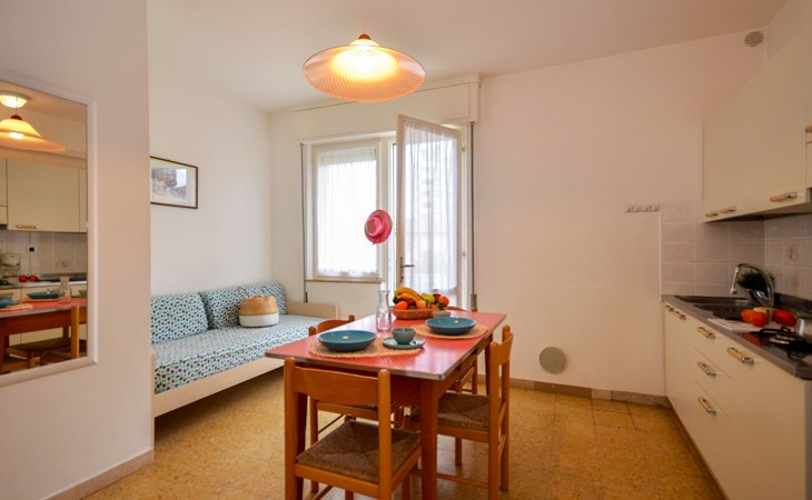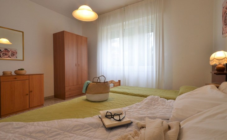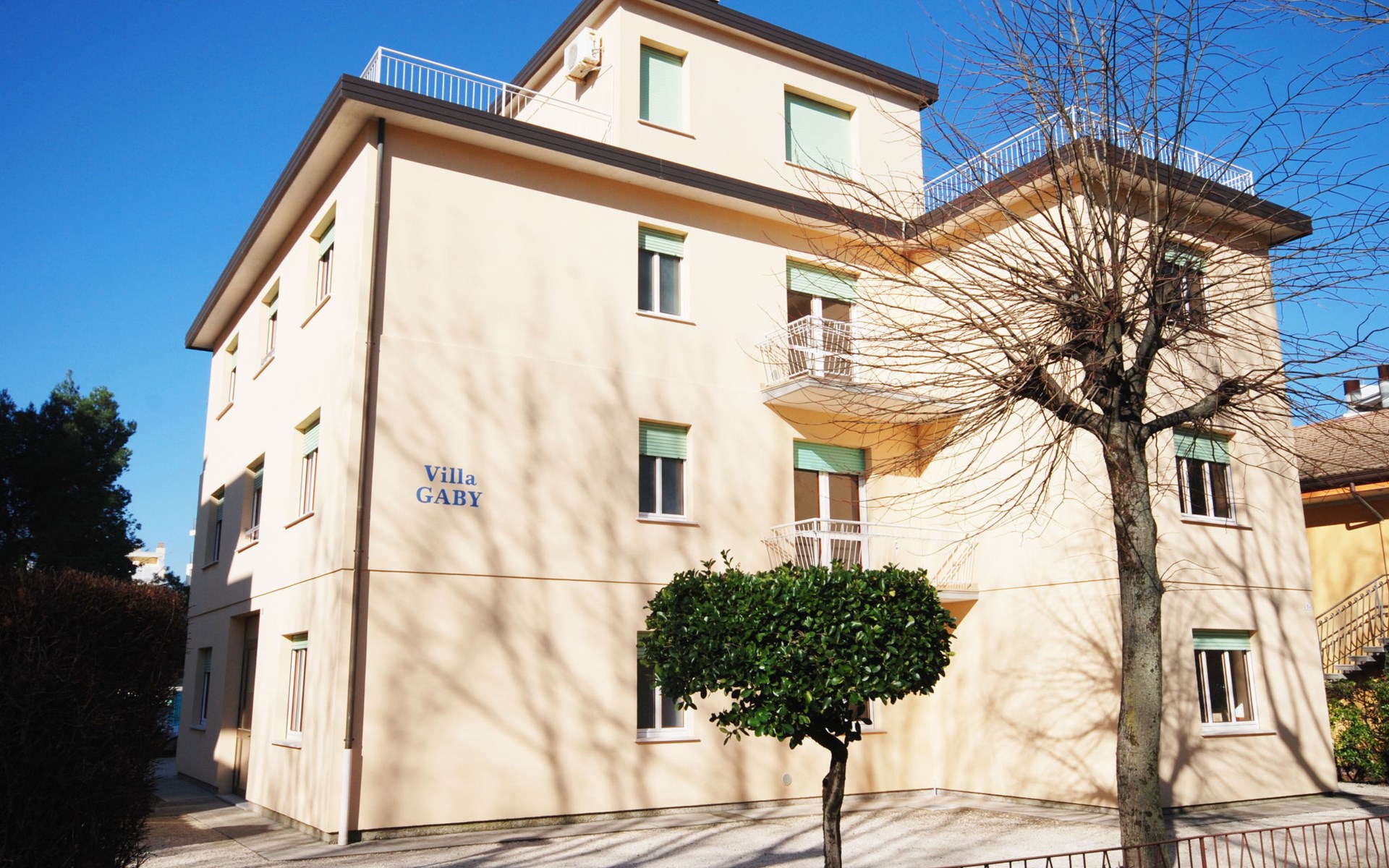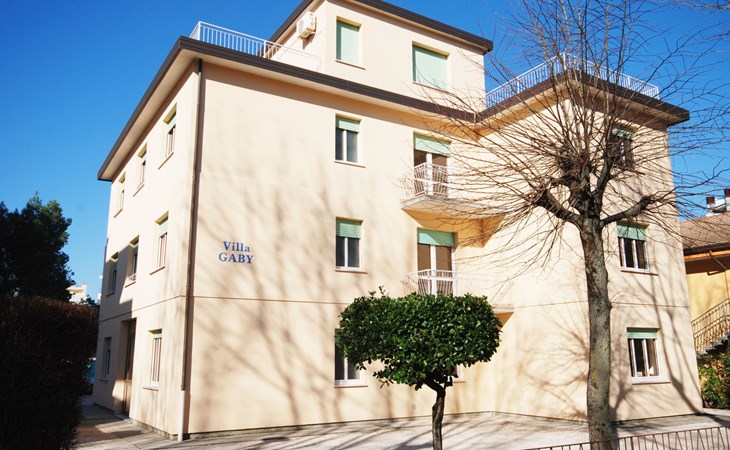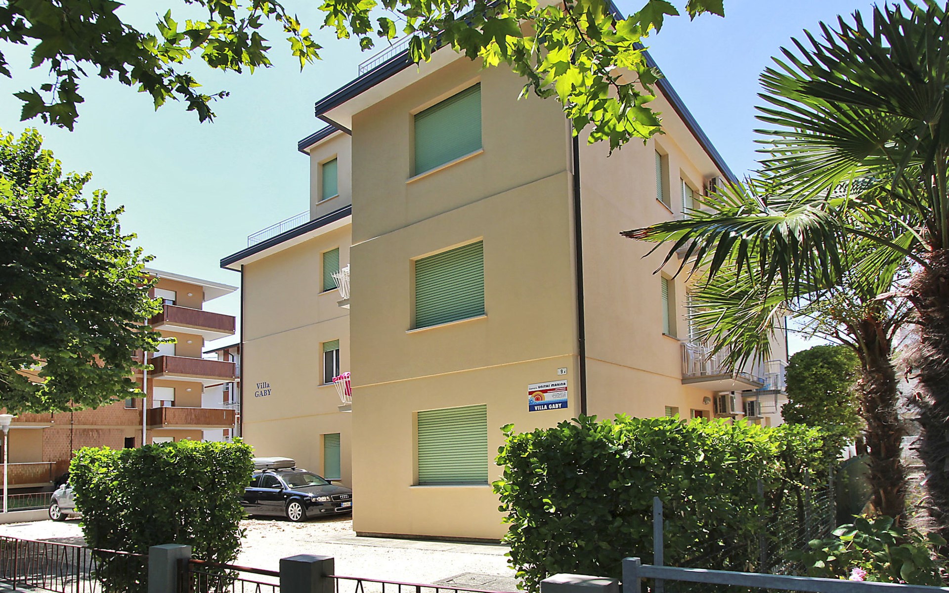 Small apartment block "Villa Gaby", 3 storeys. 14 apartments in the residence. In the district of Sabbiadoro 110 m from the centre of Lignano-Sabbiadoro, 13 km from the centre of Bibione, 95 km from the centre of Trieste, in a central position, 100 m from the sea. For shared use: property (fenced). In the house: bicycle rental. Shop 200 m, supermarket 10 m, restaurant 200 m, 2 minute walk to the centre, bus stop 200 m, railway station "Latisana (Milano-Venezia-Triest)" 20 km, sandy beach 100 m. Marina 300 m, golf course (18 hole) 8 km. Beach service: From approx. the beginning of May to approx. mid-September, 1 sun lounger, 1 deck chair and 1 parasol per accommodation unit are included in the rental price.