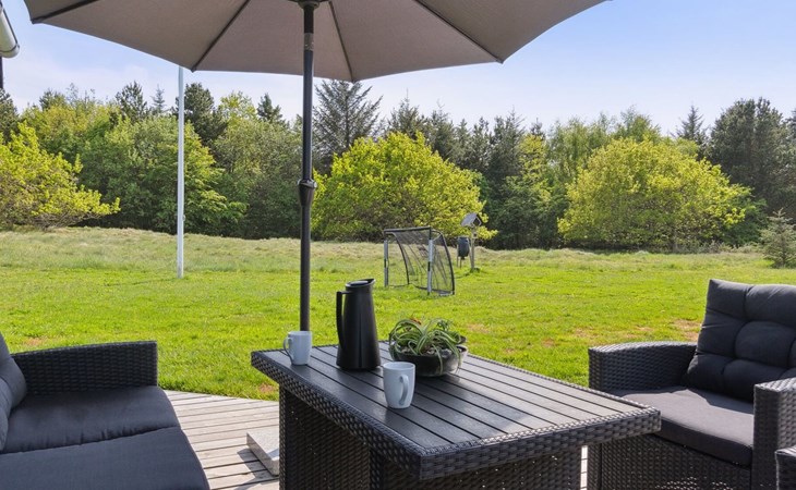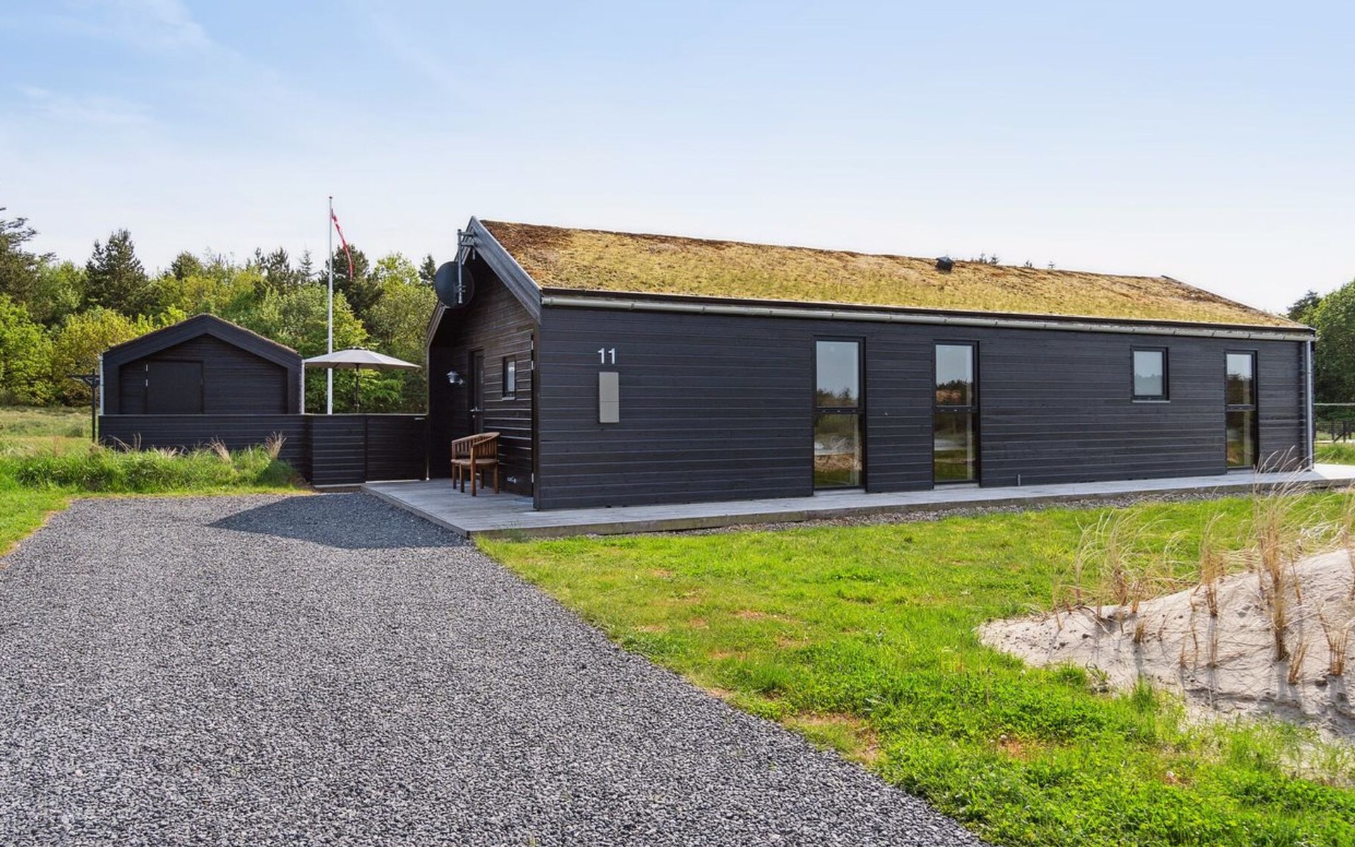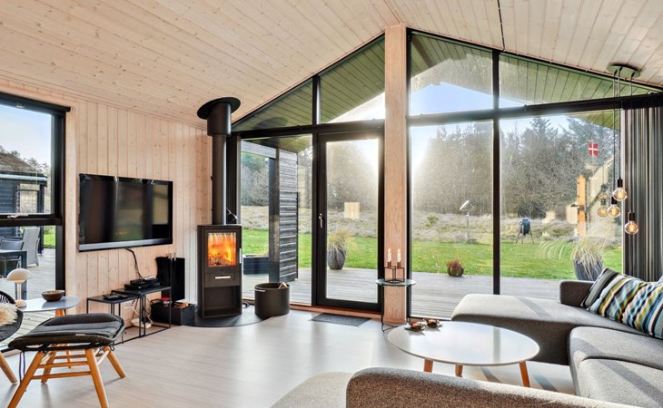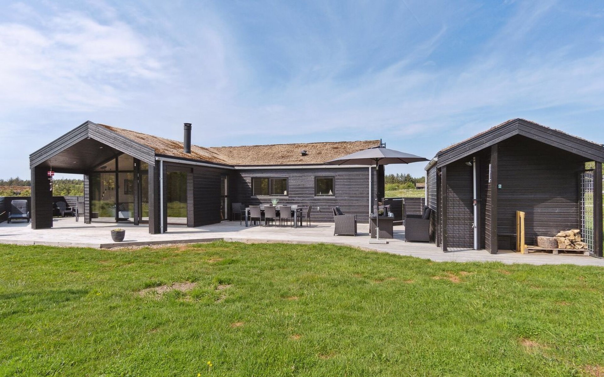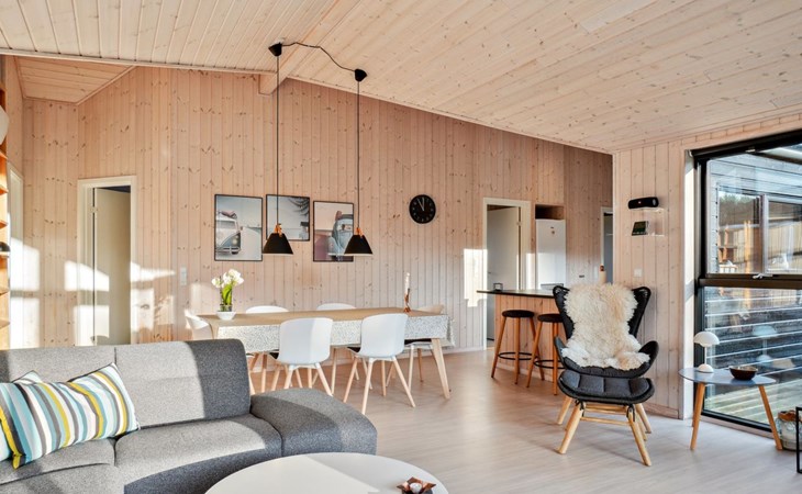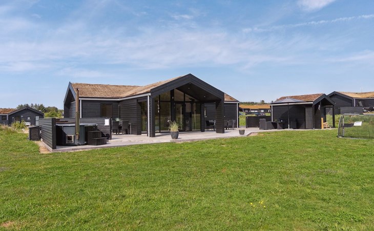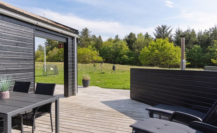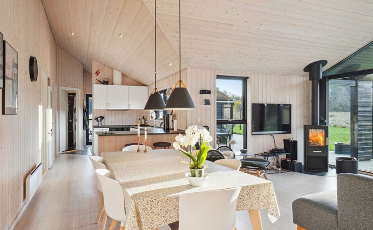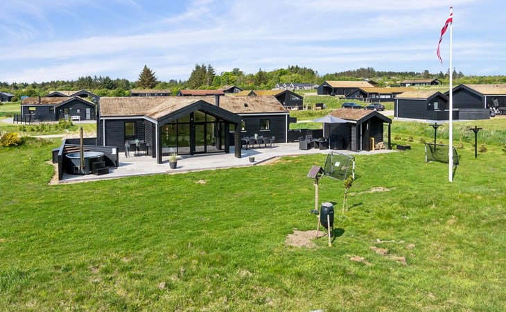 Single-family house, built in 2018. 1.5 km from the sea. Private: natural state property 1'300 m2. Terrace (90 m2), barbecue. In the house: sauna, washing machine, tumble dryer. Parking at the house. E-charging station. Grocery 1.8 km. Golf course 15 km. The owner does not accept any youth groups.