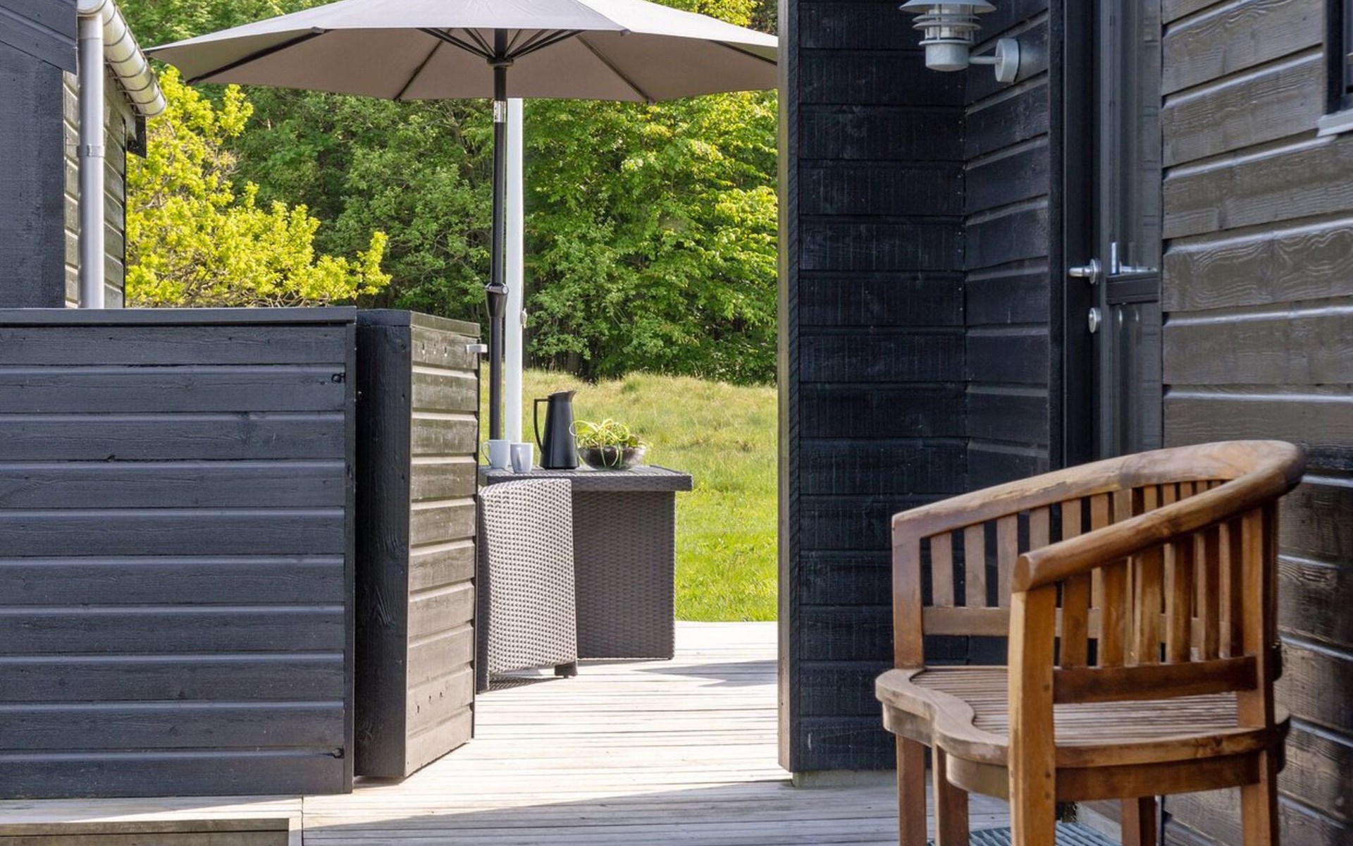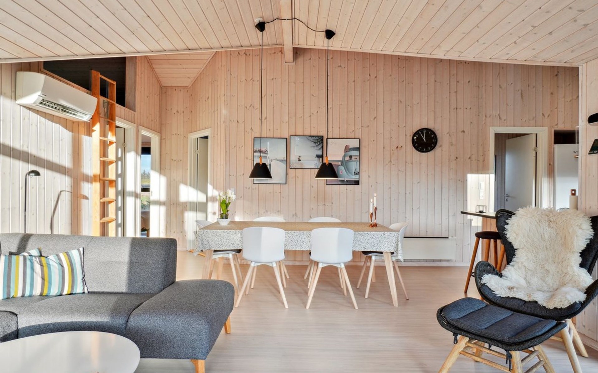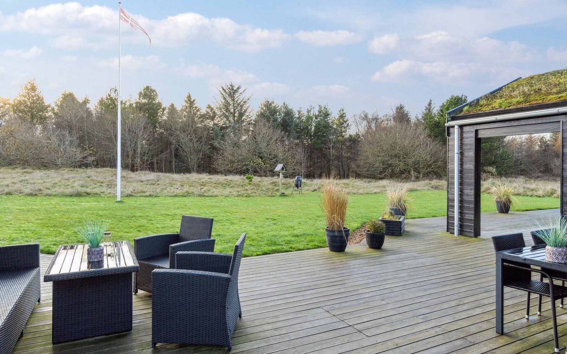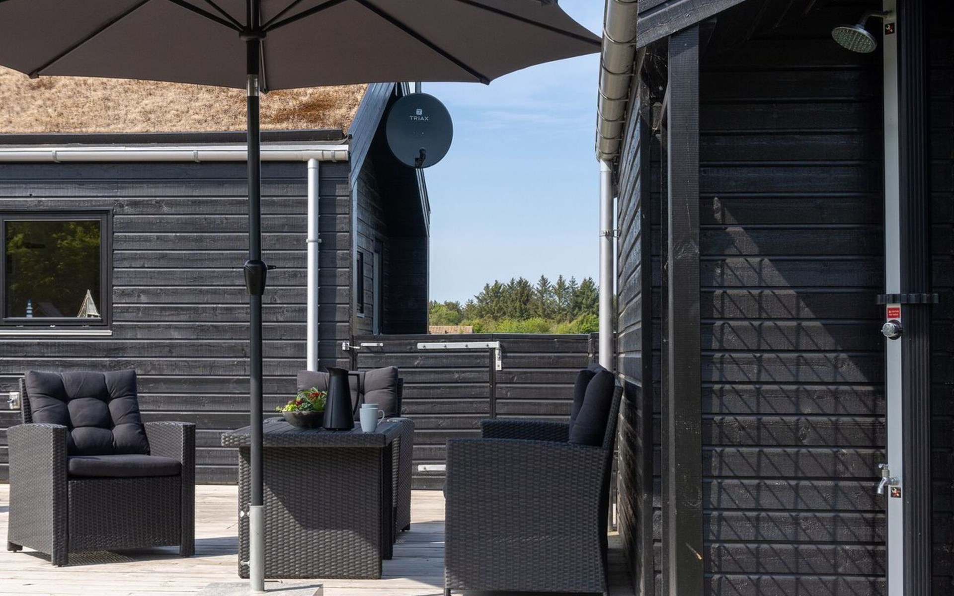 Single-family house, built in 2018. 1.5 km from the sea. Private: natural state property 1'300 m2. Terrace (90 m2), barbecue. In the house: sauna, washing machine, tumble dryer. Parking at the house. E-charging station. Grocery 1.8 km. Golf course 15 km. The owner does not accept any youth groups.