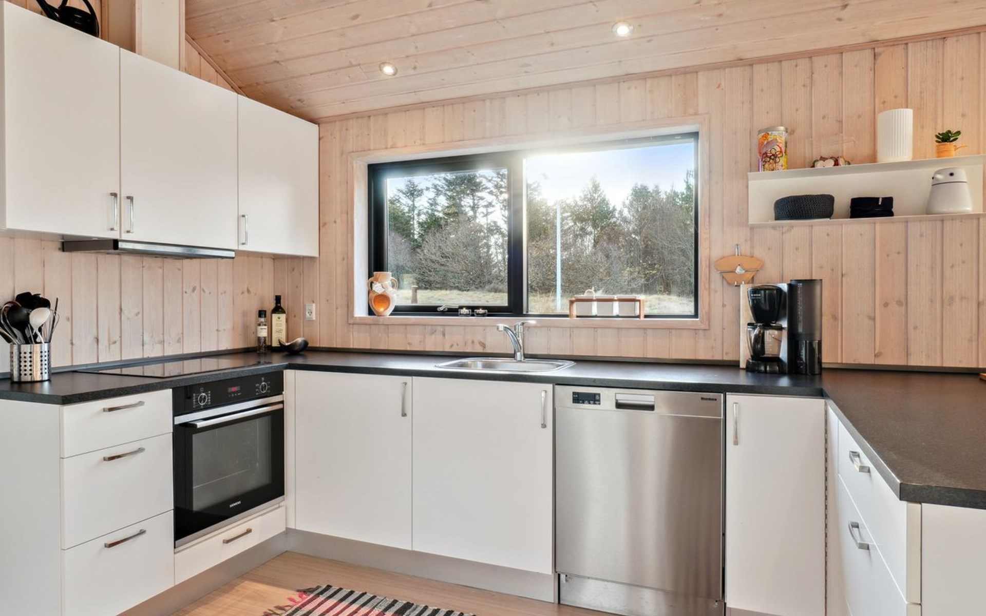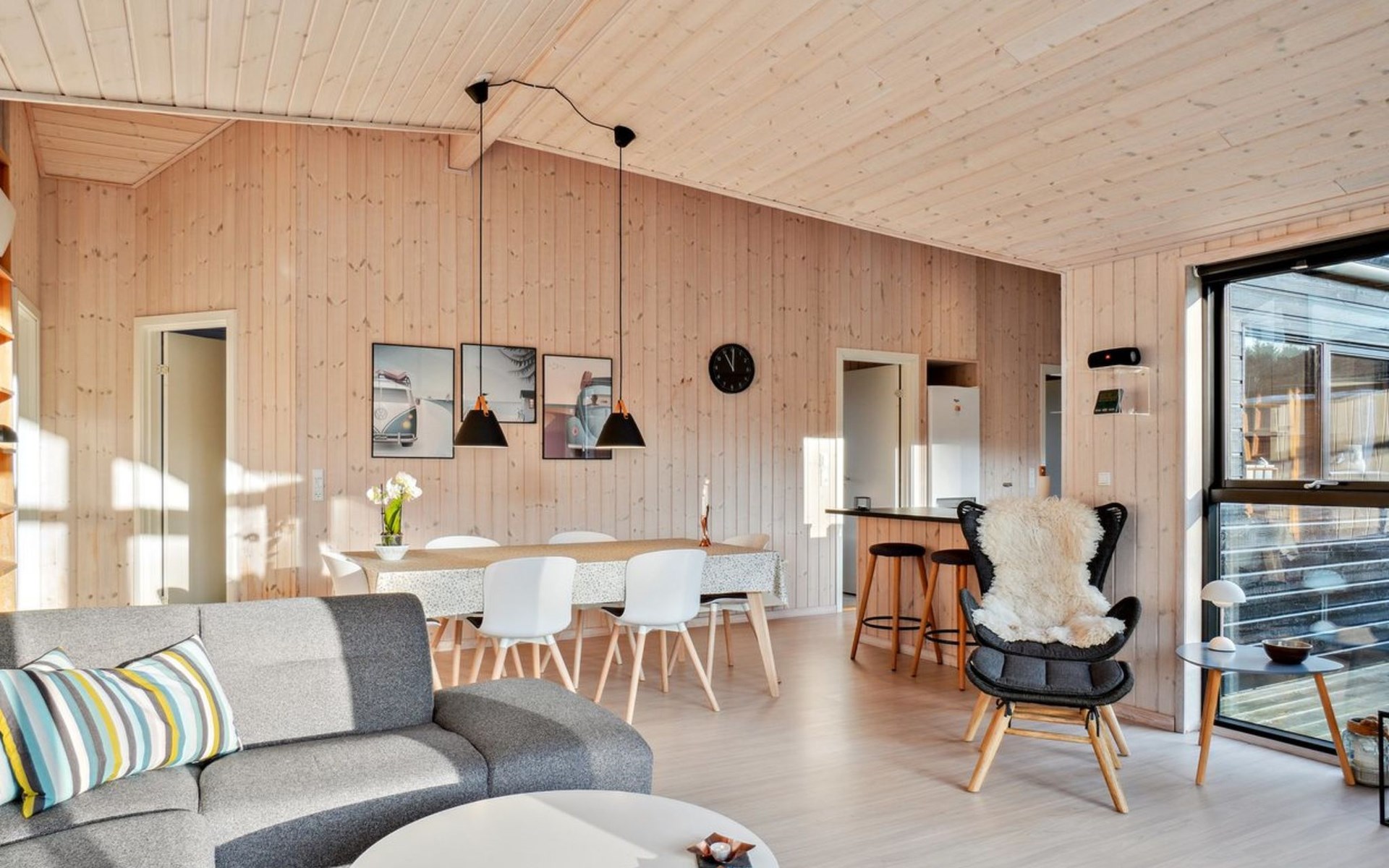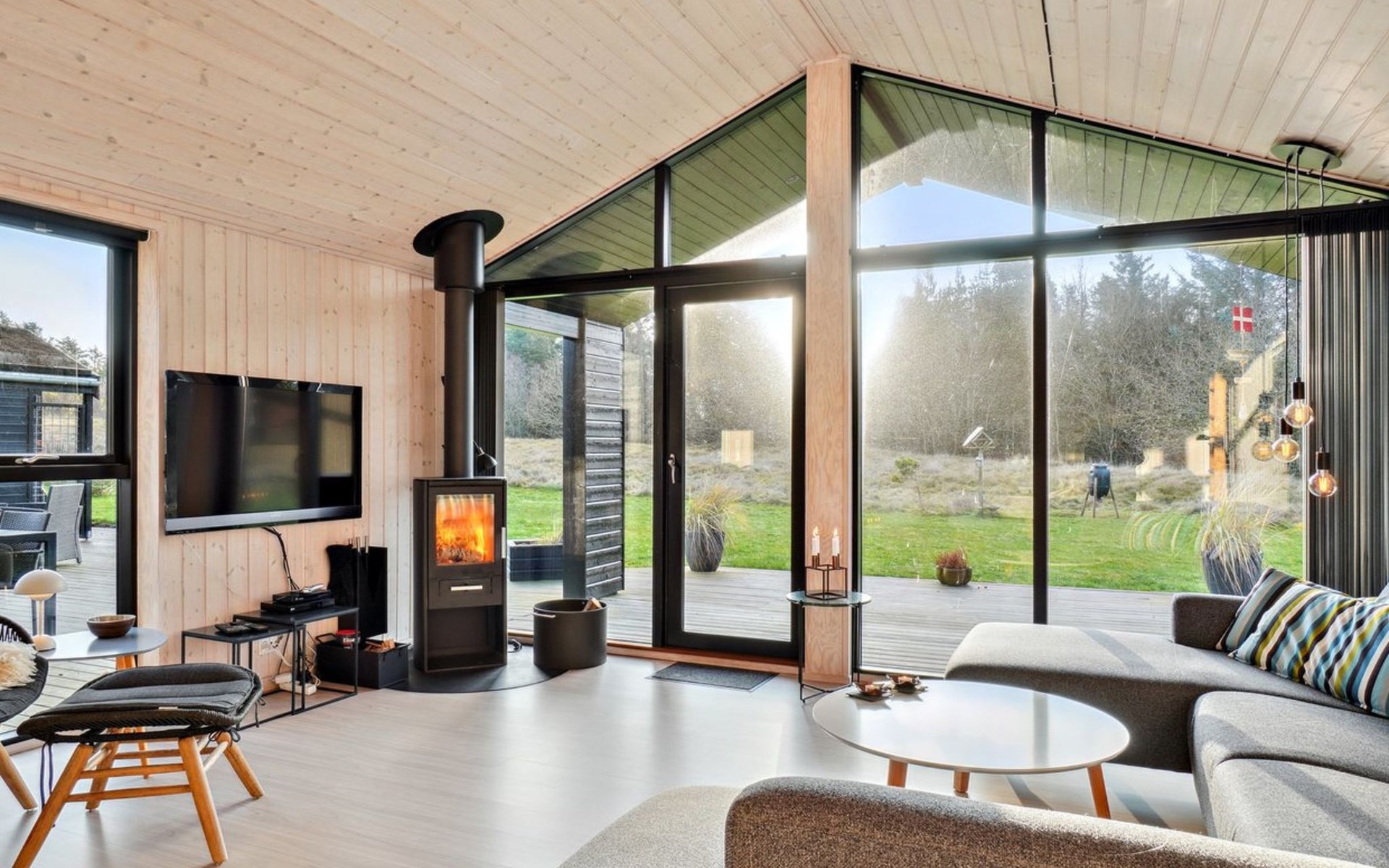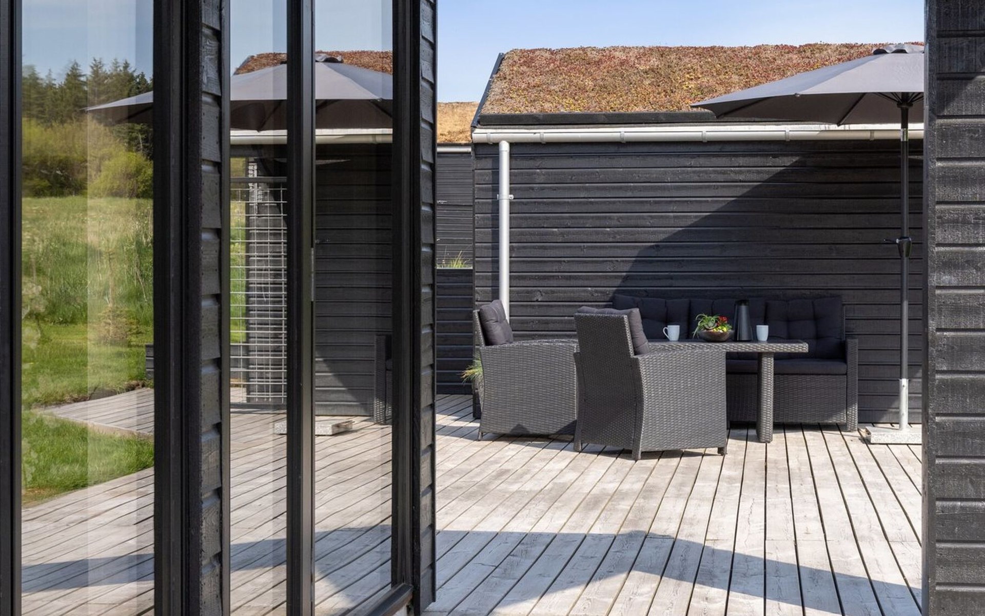 Single-family house, built in 2018. 1.5 km from the sea. Private: natural state property 1'300 m2. Terrace (90 m2), barbecue. In the house: sauna, washing machine, tumble dryer. Parking at the house. E-charging station. Grocery 1.8 km. Golf course 15 km. The owner does not accept any youth groups.