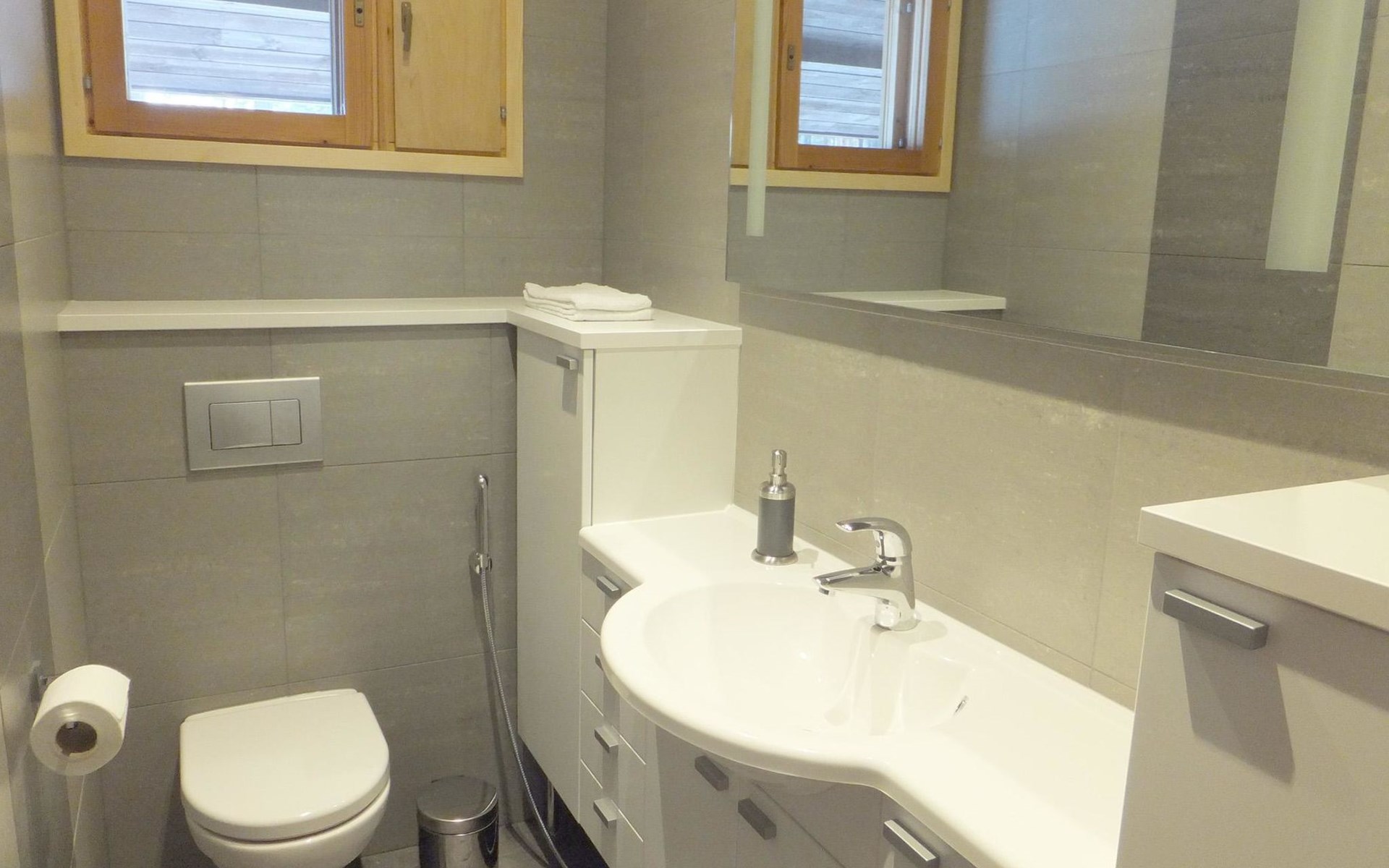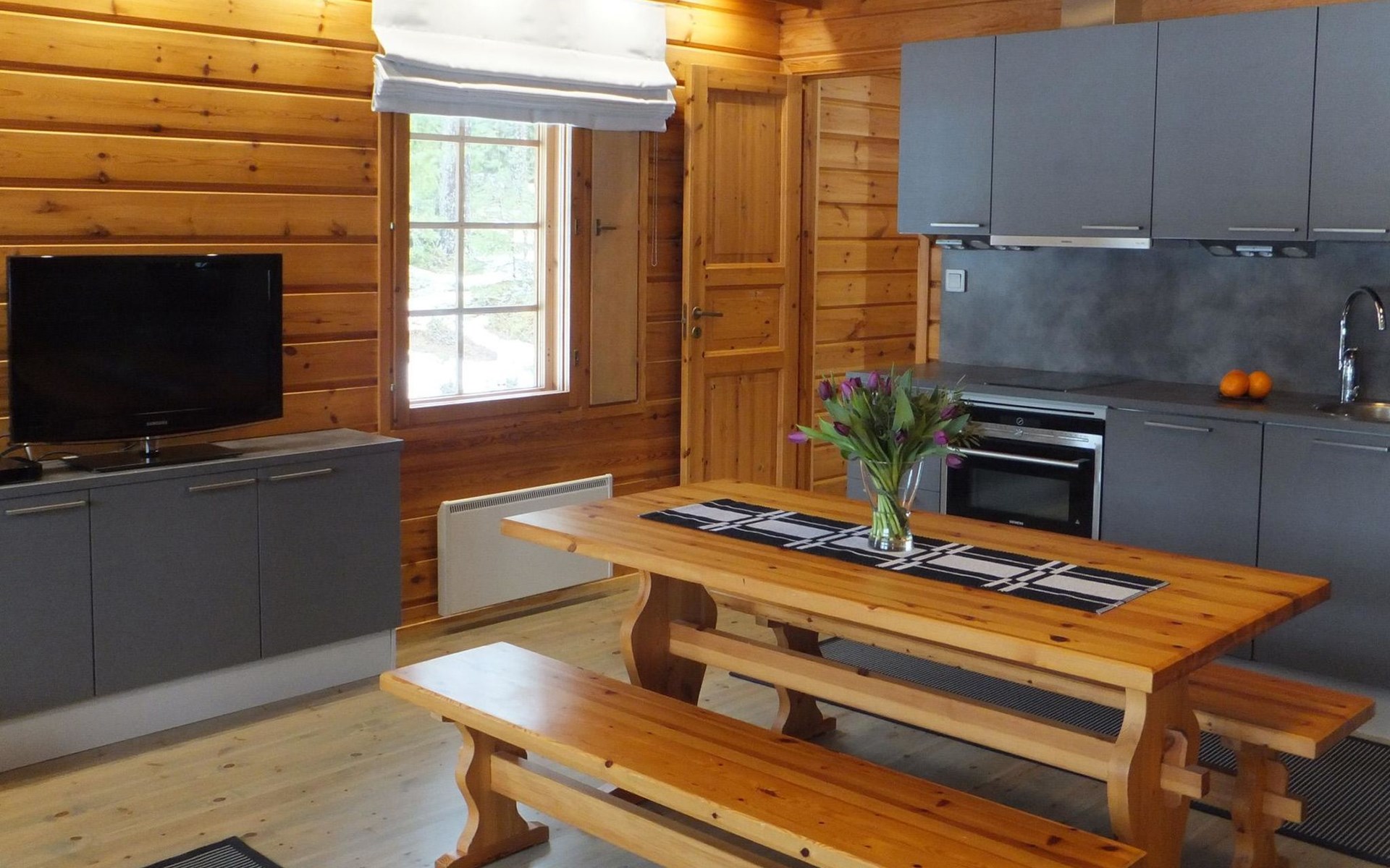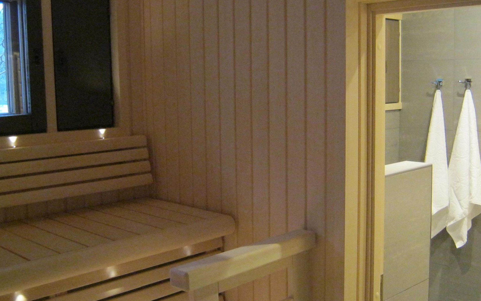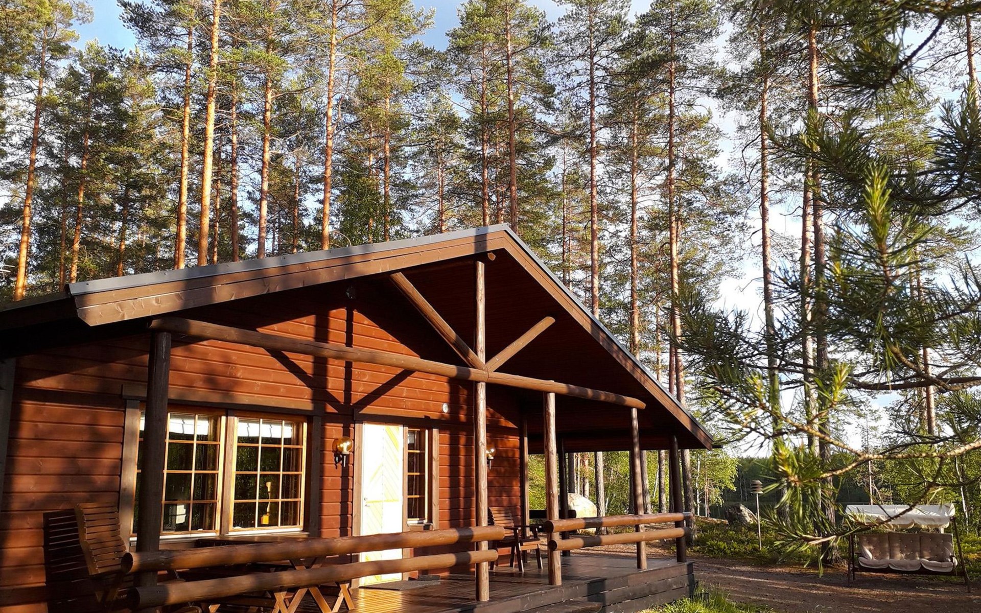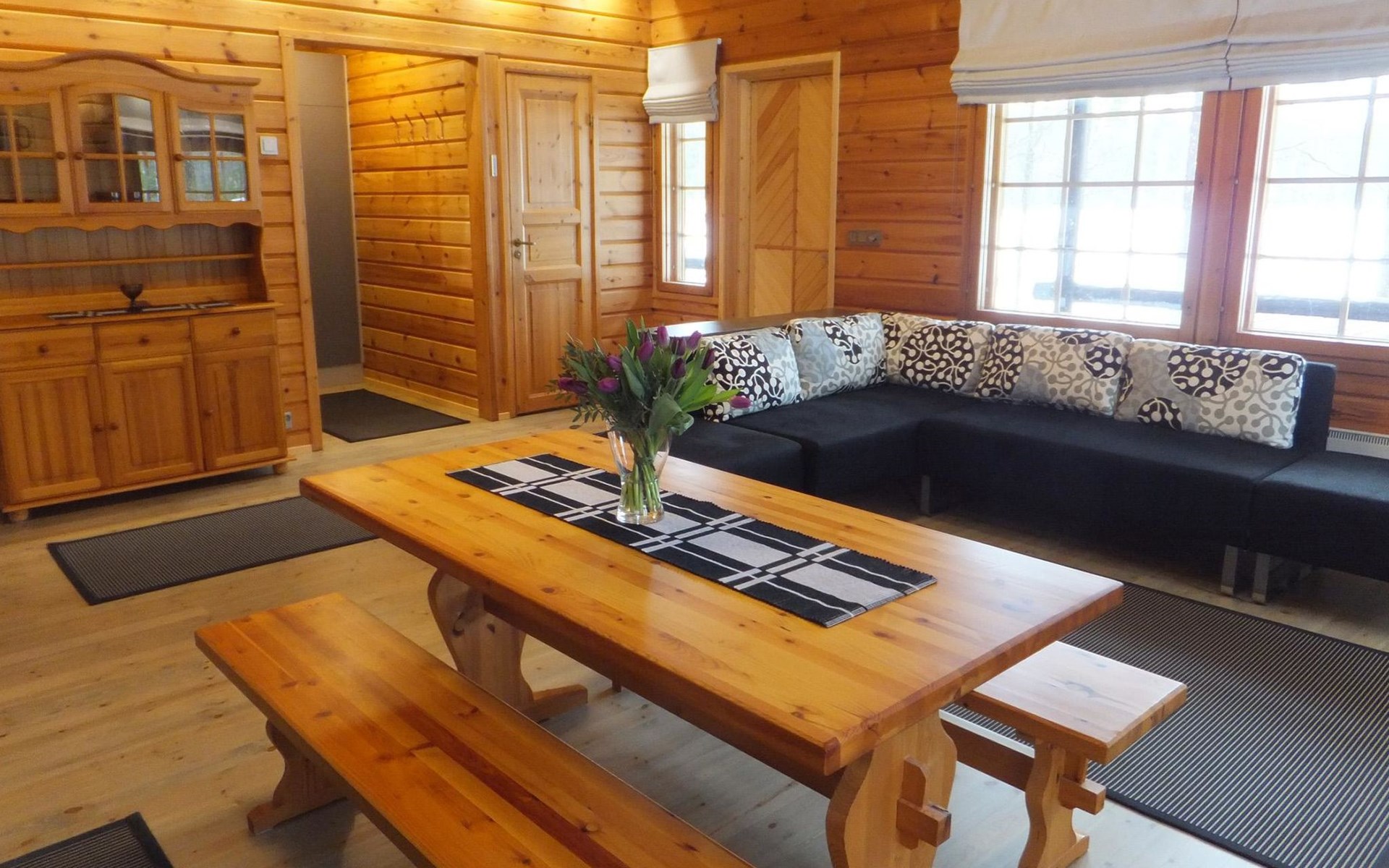 Log cabin 1983, renovated 2014, spacious living room-kitchen, bedroom (8 m²) with double bed 180x200 cm, bedroom (7 m²) with 2 beds á 90 x 200 cm, wood-fired sauna, washroom, dressing room, open veranda.