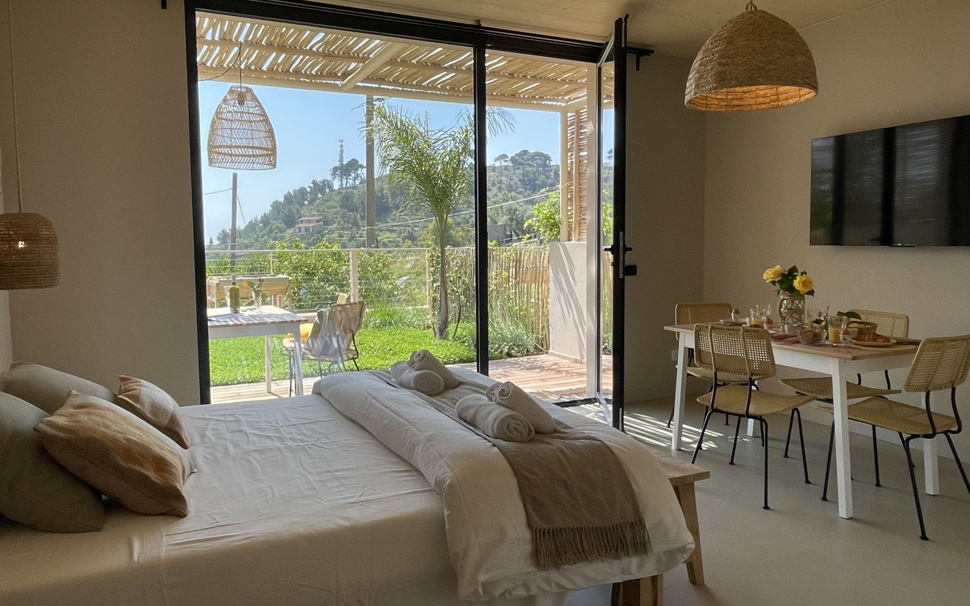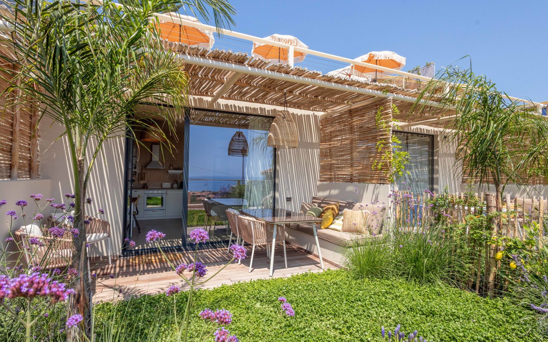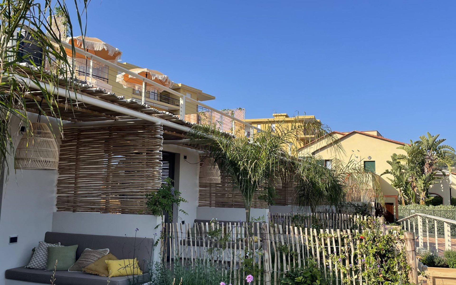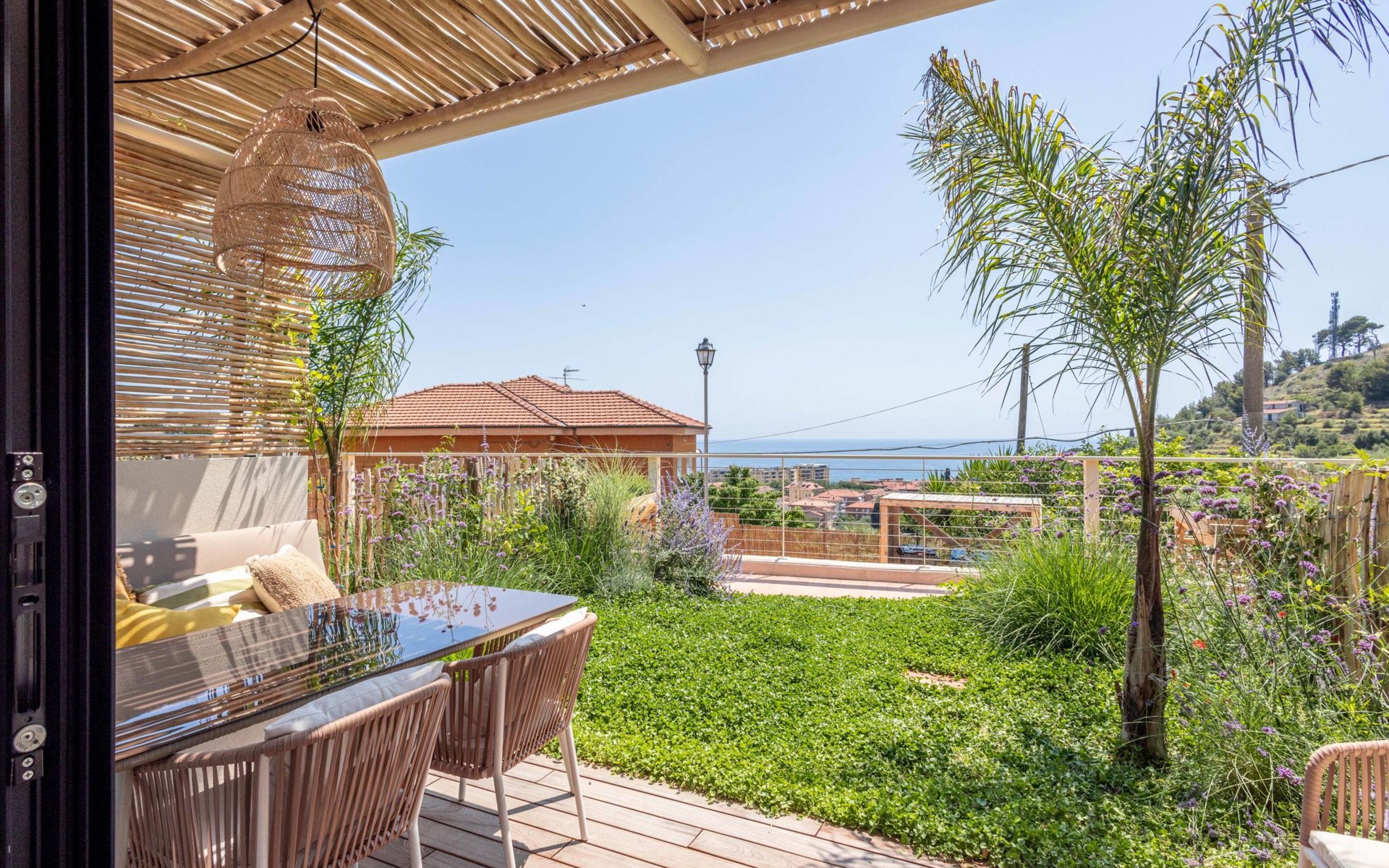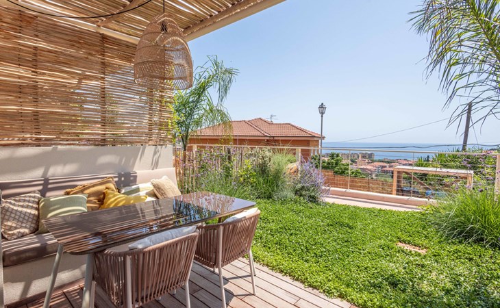 Modern, very comfortable residence "Casa Mia", built in 2023. 5 apartments in the residence. In the centre of San Lorenzo al Mare 25 km from the centre of San Remo, 5 km from the centre of Imperia Porto Maurizio, in a sunny, elevated position in the residential district, 400 m from the sea. For shared use: terrace (150 m2), garden furniture. In the complex: reception, WiFi, storage room for bicycles, sun terrace, roof terrace, washing machine, tumble dryer (for shared use). Bread roll service and beverage service. Parking (for 10 cars) at the house. Grocery, supermarket 400 m, shopping centre 8 km, restaurant, bar, bakery, café, pedestrian zone, bicycle rental 400 m, 10 minute walk to the centre, bus stop 400 m, railway station "Imperia Oneglia" 8 km, sandy beach "San Lorenzo al Mare" 400 m pebble beach 500 m, rocky beach 400 m, bathing lake "Laghetti di Torre Paponi" 6 km. Marina 5 km, minigolf 600 m, walking paths from the house 500 m, cycle lane 400 m, children's playground 300 m. Nearby attractions: Pista ciclabile lungo mare 400 m, Porto Maurizio Altstadt Parasio 5 km, Bussana Vecchio Erdbebendorf 34 km, Triora Hexendorf 40 km, Finale Ligure Mountainbike Paradies 55 km, Monaco Monte Carlo 50 km. Hiking paths: Monte Faudo (1149 m) Mountainbike Trails, Felswasserbadebecken in Torre Paponi. Suitable for events. Please note: Additional accommodations can be booked.