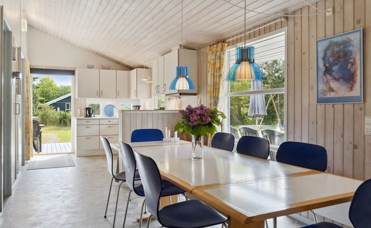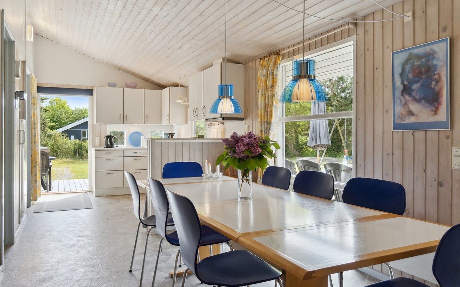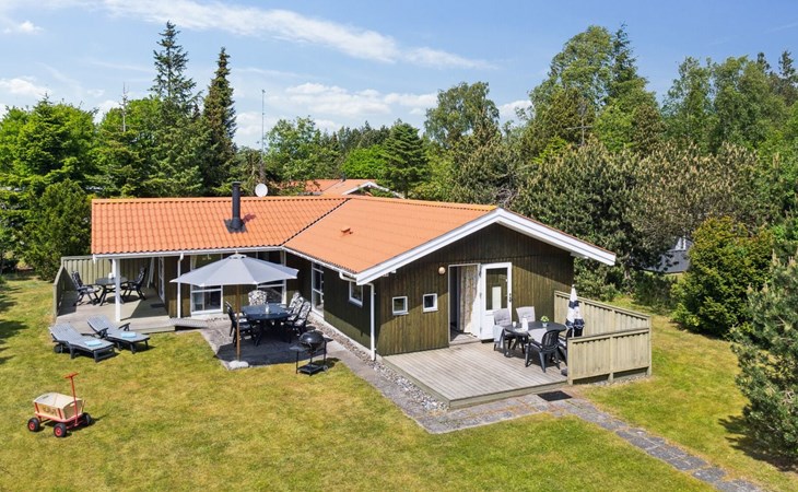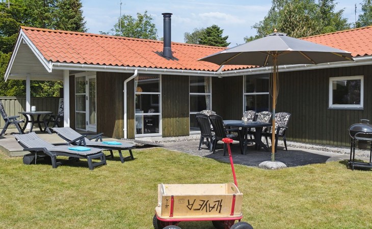 Single-family house, built in 1992. 500 m from the sea. Private: natural state property 1'000 m2. Barbecue, children's playground (swing). In the house: sauna, washing machine, tumble dryer. Parking at the house. Grocery 800 m. Golf course 3 km. The owner does not accept any youth groups.