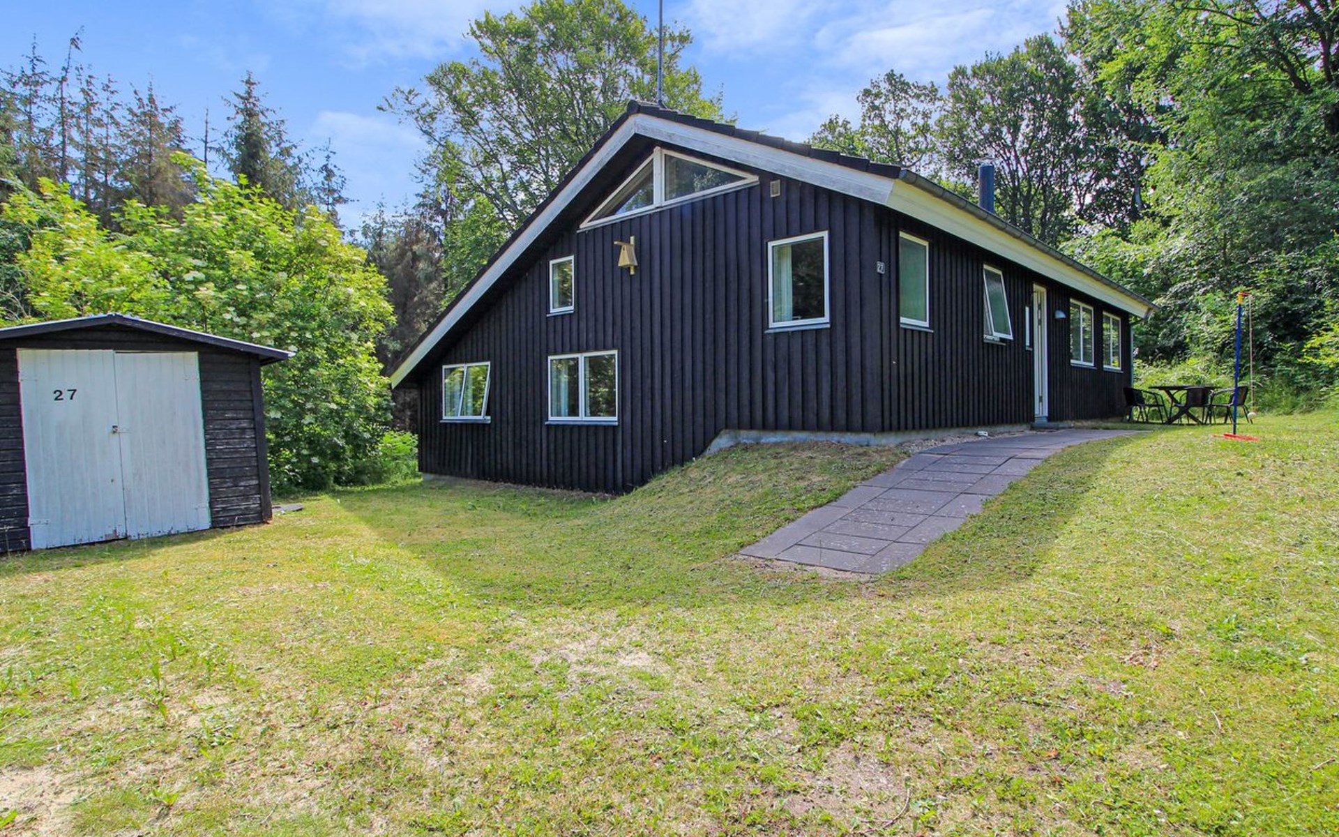 Single-family house, built in 2000. 500 m from the sea. Private: natural state property 1'200 m2. Terrace (20 m2). In the house: sauna, washing machine. Parking at the house. E-charging station. Grocery 2.5 km. The owner does not accept any youth groups.