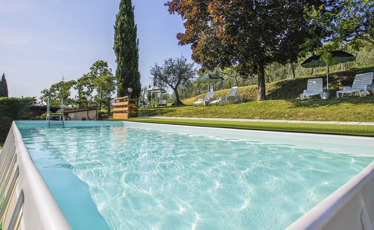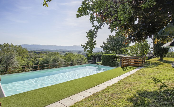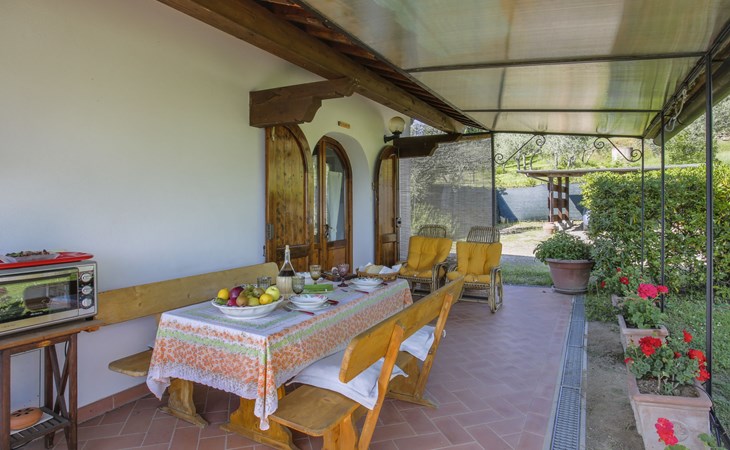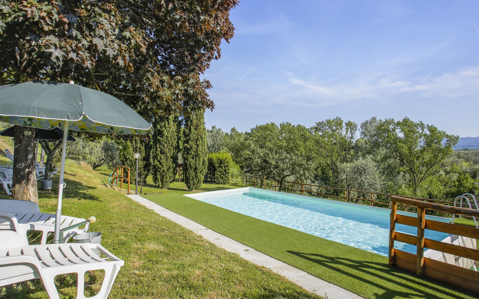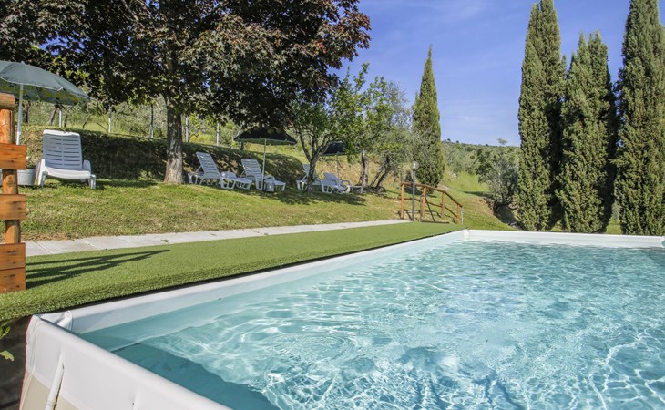 Country house "Le Masse". Property composed of main house and outbuilding 1.3 km from the centre of Castelfranco di Sopra, 40 km from the centre of Firenze, 40 km from the centre of Arezzo, in a sunny position. For shared use: natural state property 20'000 m2, garden (not fenced), meadow, swimming pool (above ground) (9 x 4 m, seasonal availability: 10.May. - 30.Sep. pool opening hours: 08:30-19:30). In the house: washing machine (for shared use, extra). Supermarket 1.3 km, restaurant 1.3 km, bar 1.3 km. Please note: the owner lives on the same property.