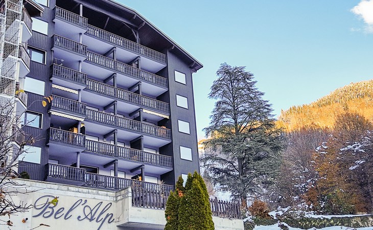 Residence "Bel Alp", 9 storeys. In the centre of Saint Gervais, in a sunny position, 9.4 km from the skiing area, south facing position. In the house: lift, storage room for skis. In Winter: please take snow chains. Public car park at 250 m. Shop 100 m, grocery, restaurant 50 m, bakery 150 m, outdoor swimming pool 800 m. Tennis 800 m, skisport facilities 900 m, ski bus stop 10 m, ice rink 600 m. Well-known ski regions can easily be reached: Evasion Mont Blanc 900 m.