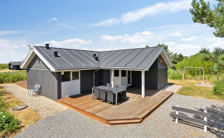 Single-family house, built in 2007. 2.4 km from the sea. Private: natural state property 2'900 m2. Terrace (68 m2), children's playground (swing). In the house: sauna, washing machine, tumble dryer. Parking at the house. Grocery 4.4 km.