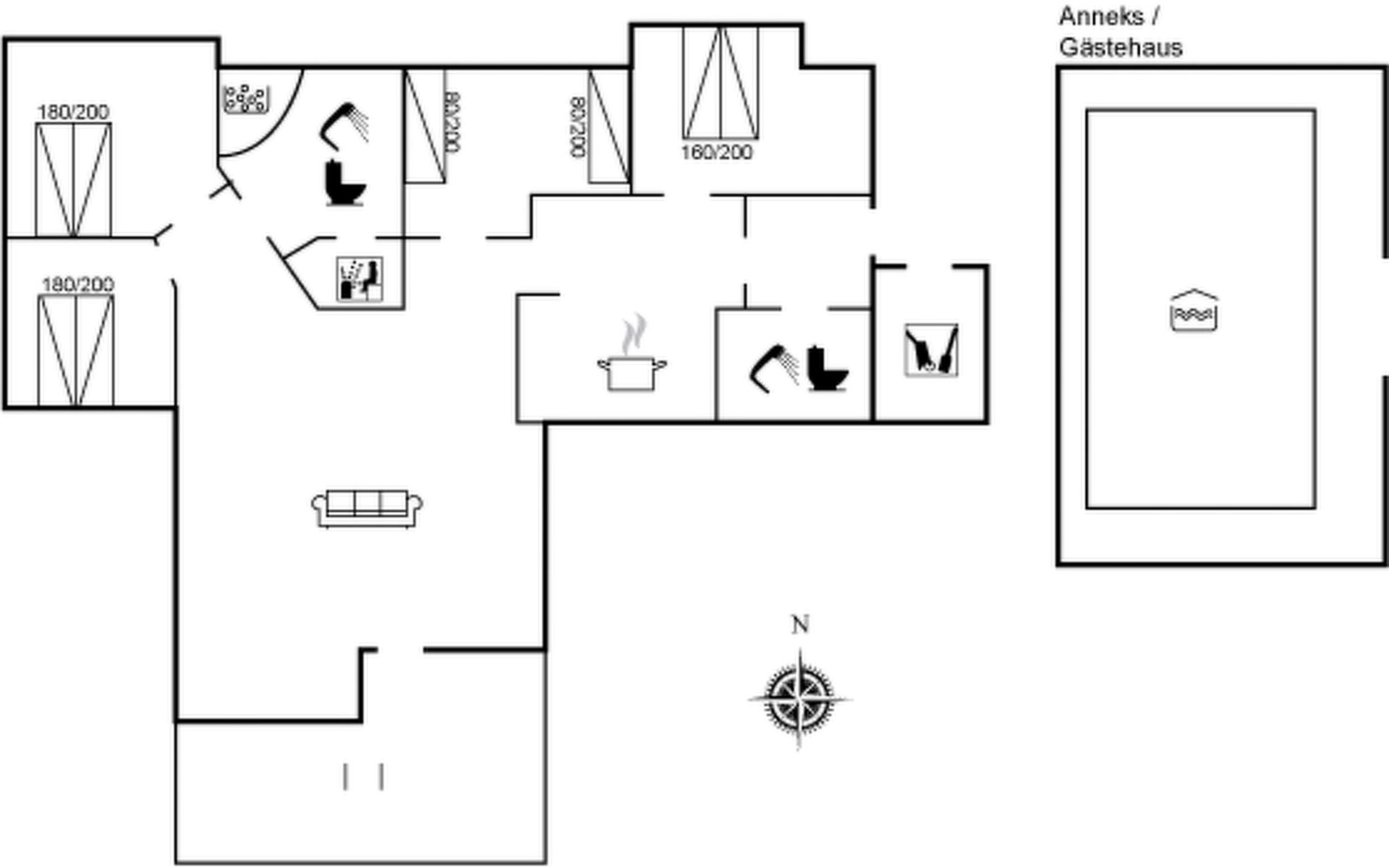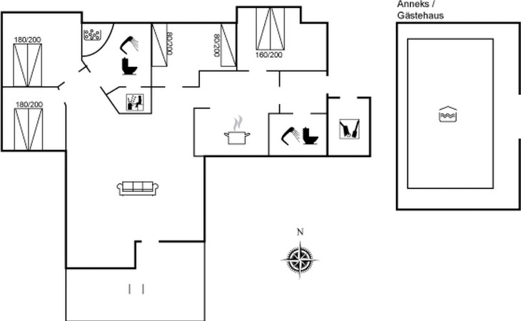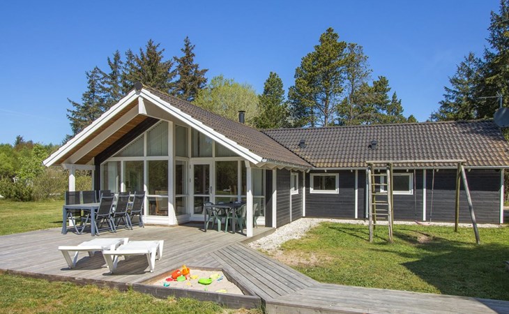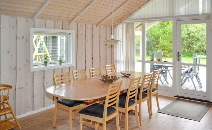 Single-family house, built in 2007. 1.7 km from the sea. Private: property 1'000 m2, well-kept garden, indoor pool (3 x 5 m, 15 m2, depth 120 - 120 cm). Terrace (50 m2), barbecue, children's playground (swing). In the house: sauna, washing machine, tumble dryer. Parking at the house. Grocery 1.5 km. The owner does not accept any youth groups.