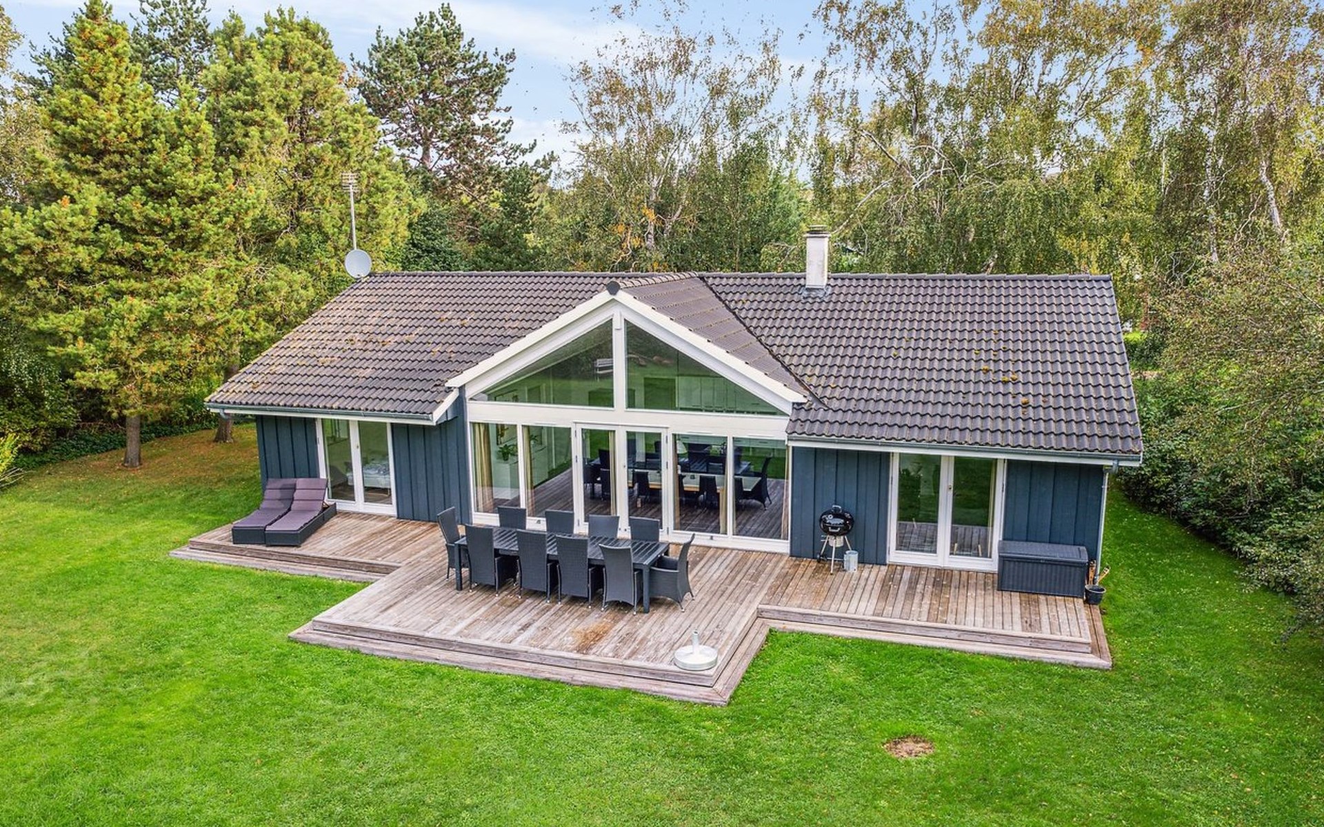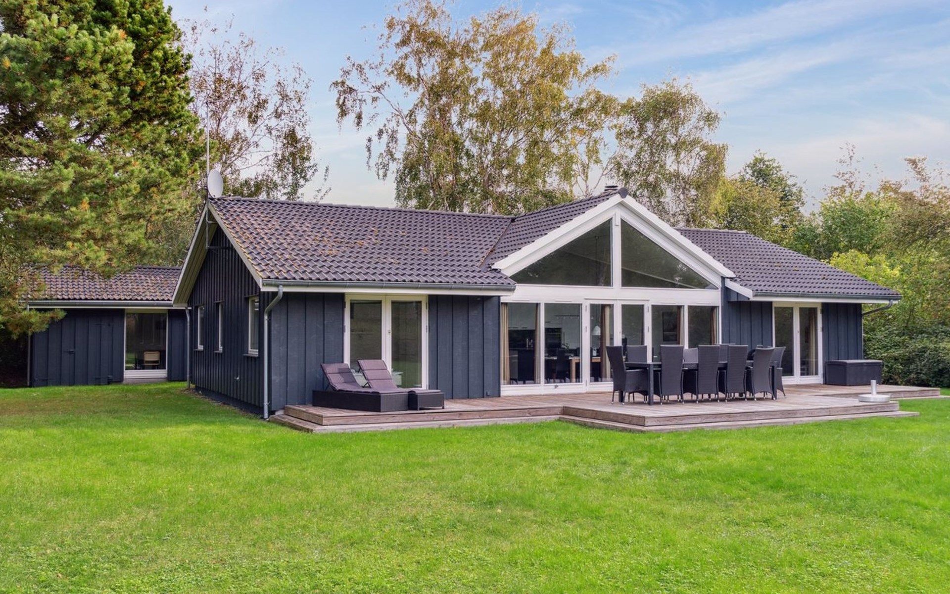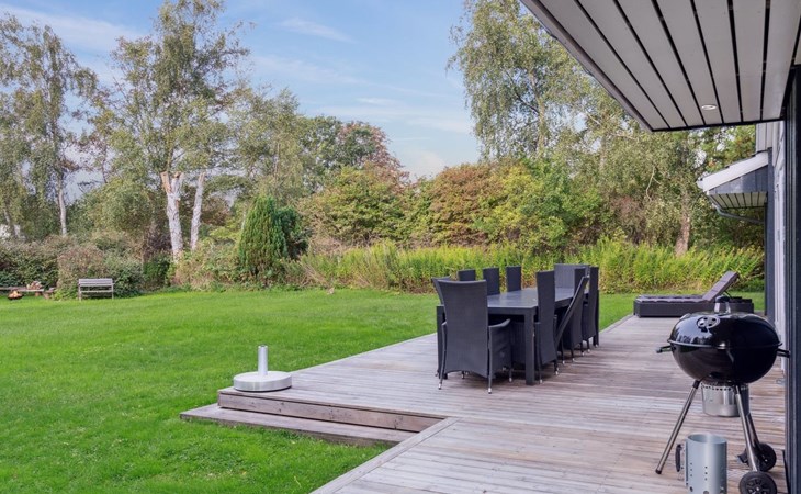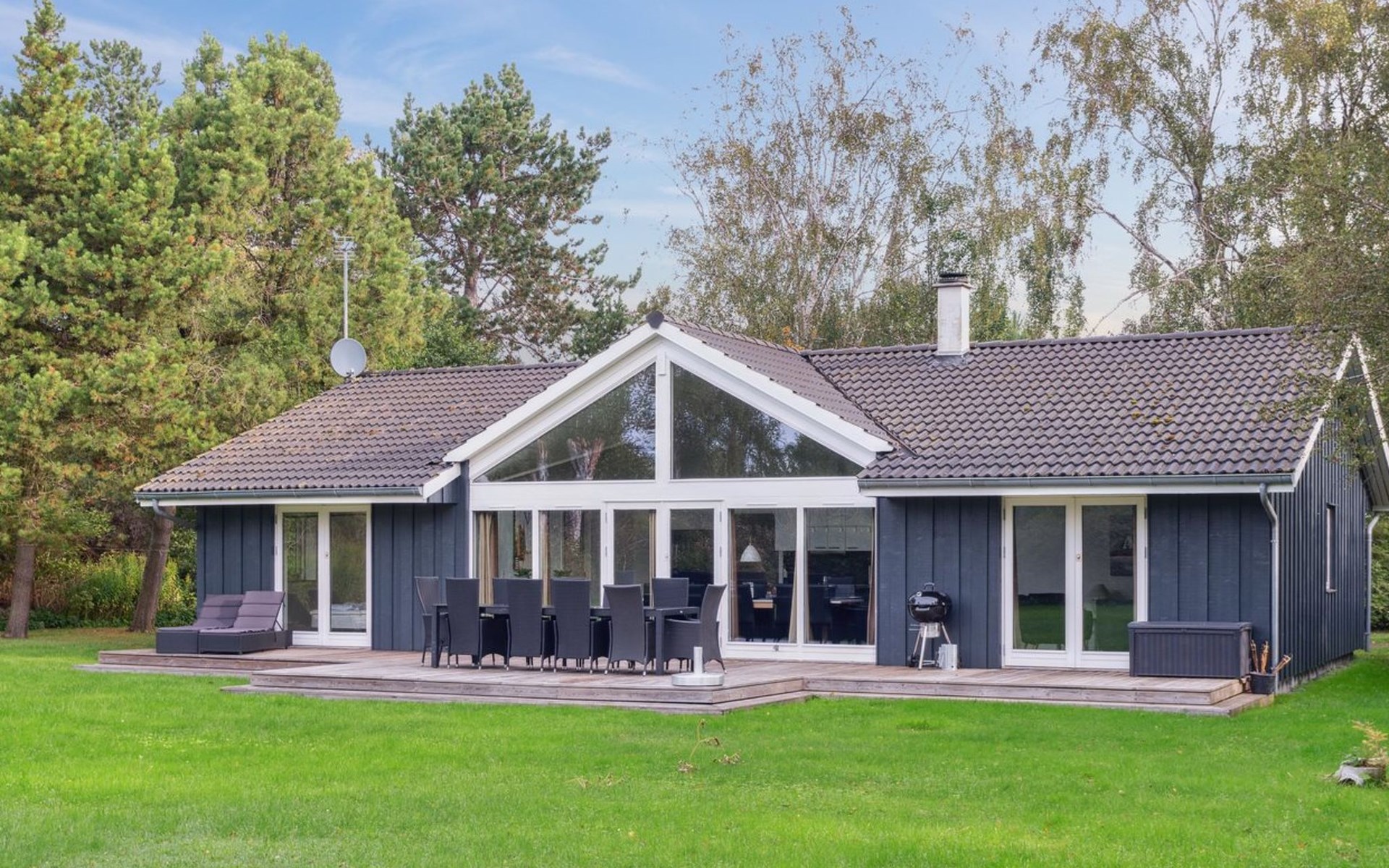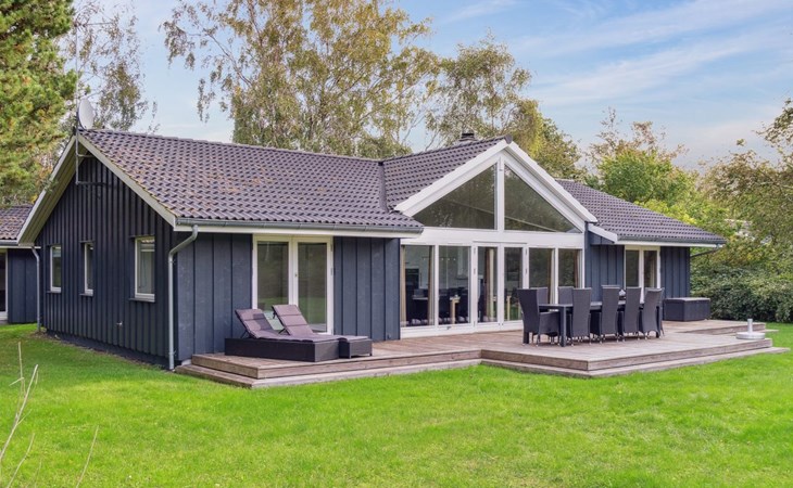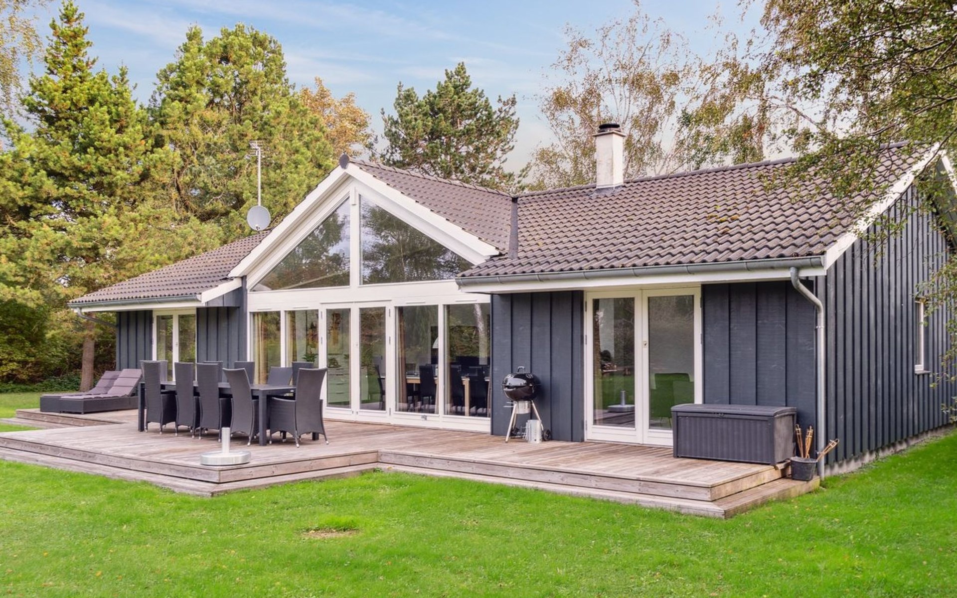 Single-family house, built in 2012. 675 m from the sea. Private: property 1'828 m2, well-kept garden. Terrace (80 m2), barbecue. In the house: sauna, table football, washing machine, tumble dryer. Parking at the house. Grocery 2.6 km. Golf course 10 km. The owner does not accept any youth groups.