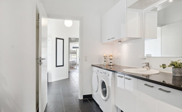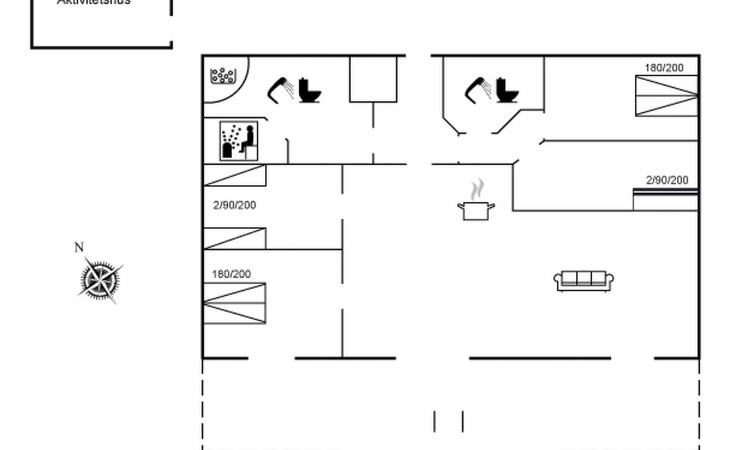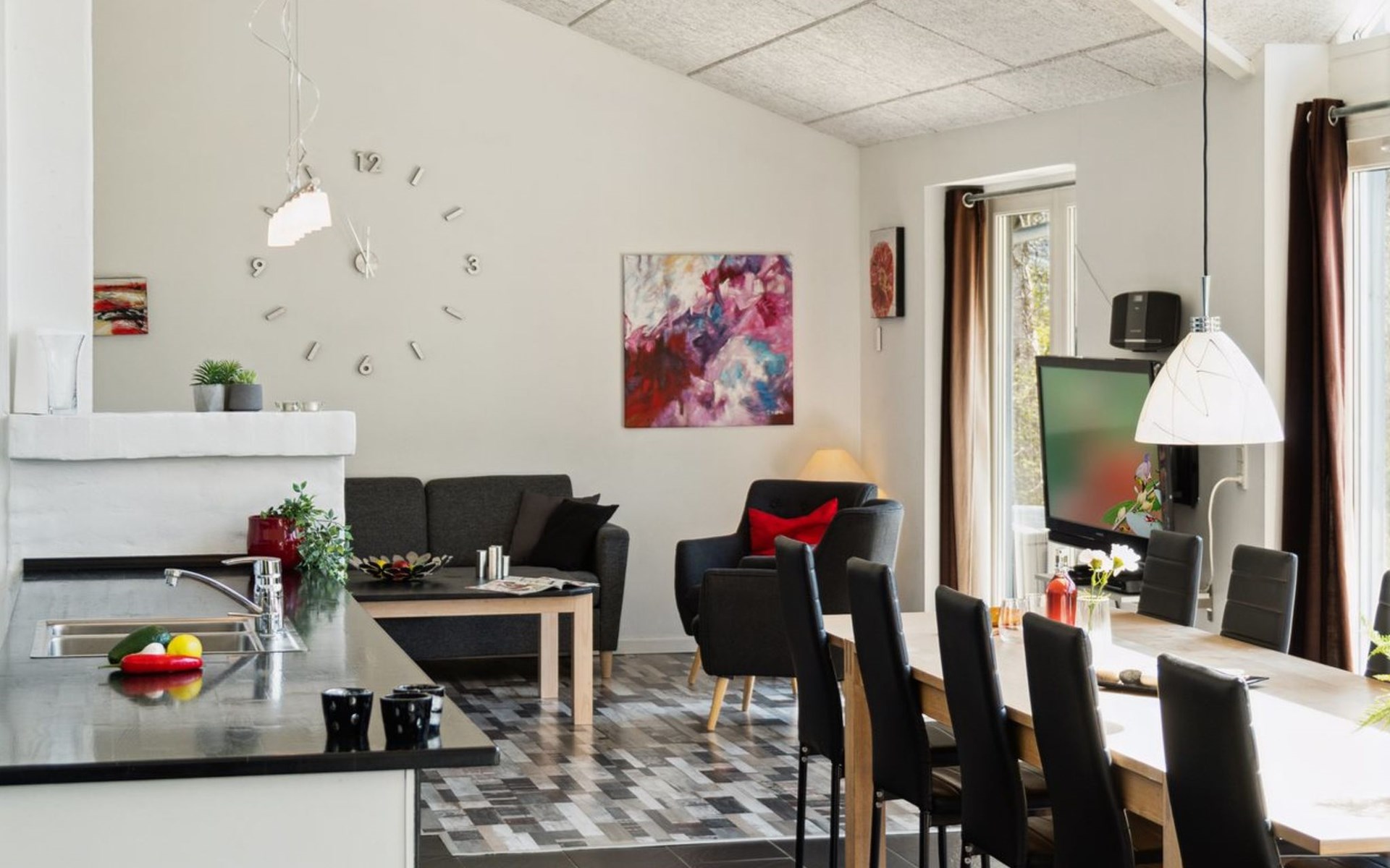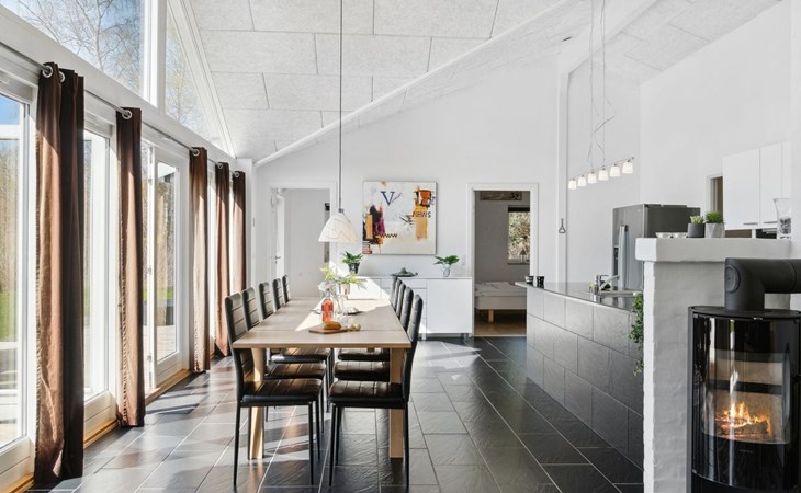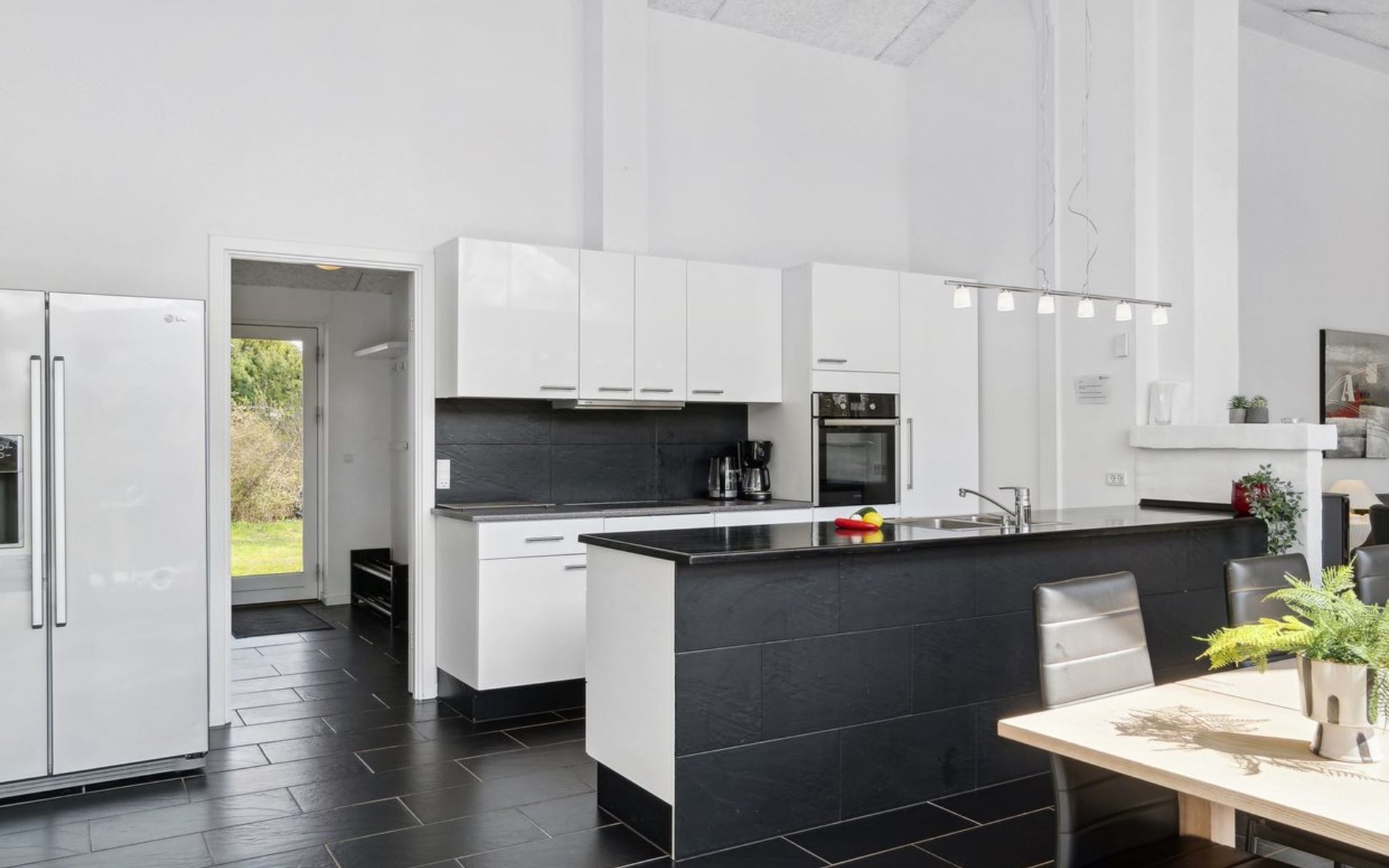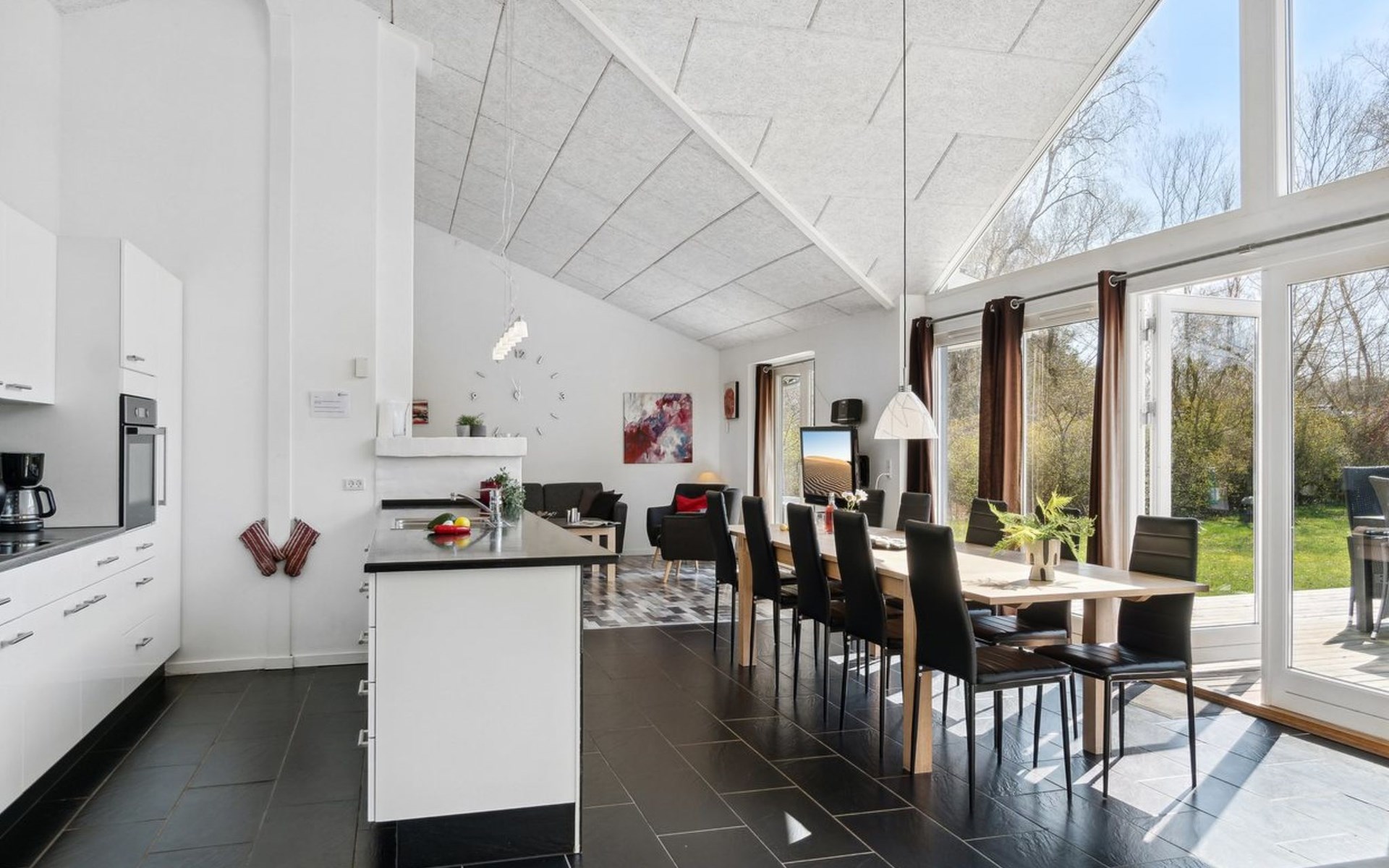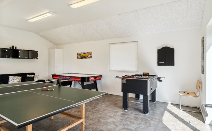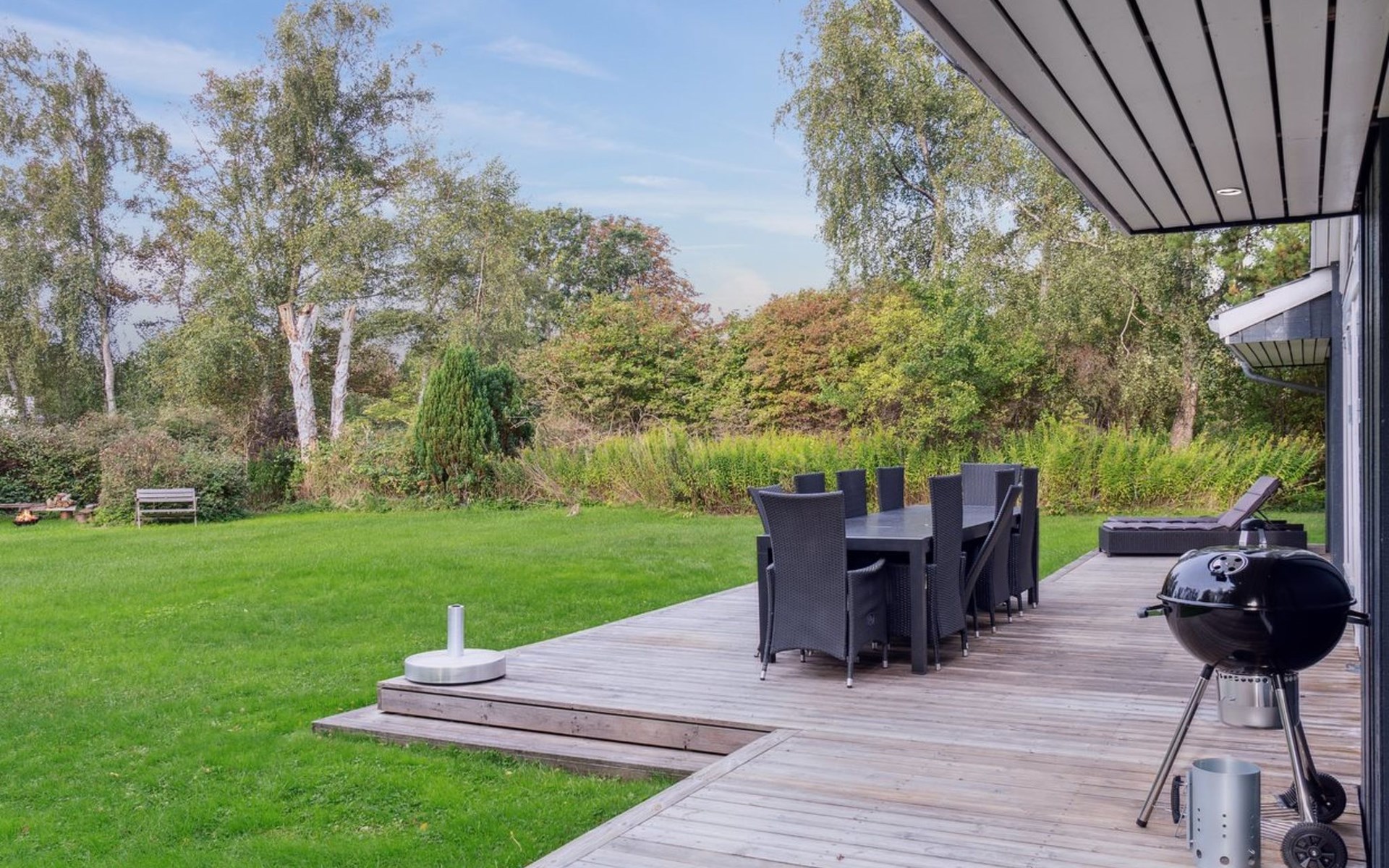 Single-family house, built in 2012. 675 m from the sea. Private: property 1'828 m2, well-kept garden. Terrace (80 m2), barbecue. In the house: sauna, table football, washing machine, tumble dryer. Parking at the house. Grocery 2.6 km. Golf course 10 km. The owner does not accept any youth groups.