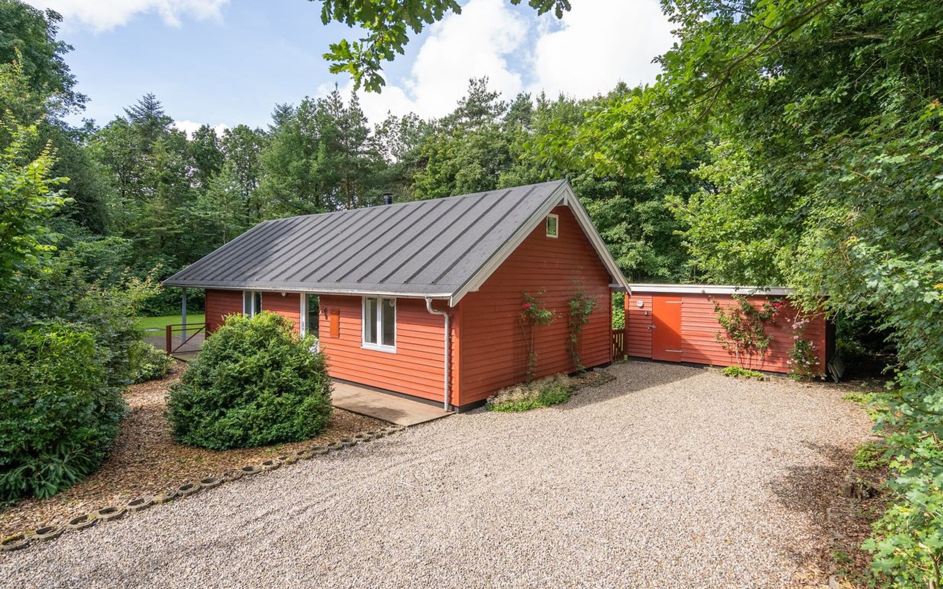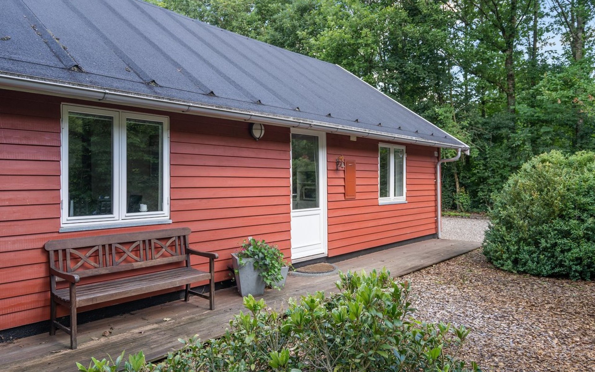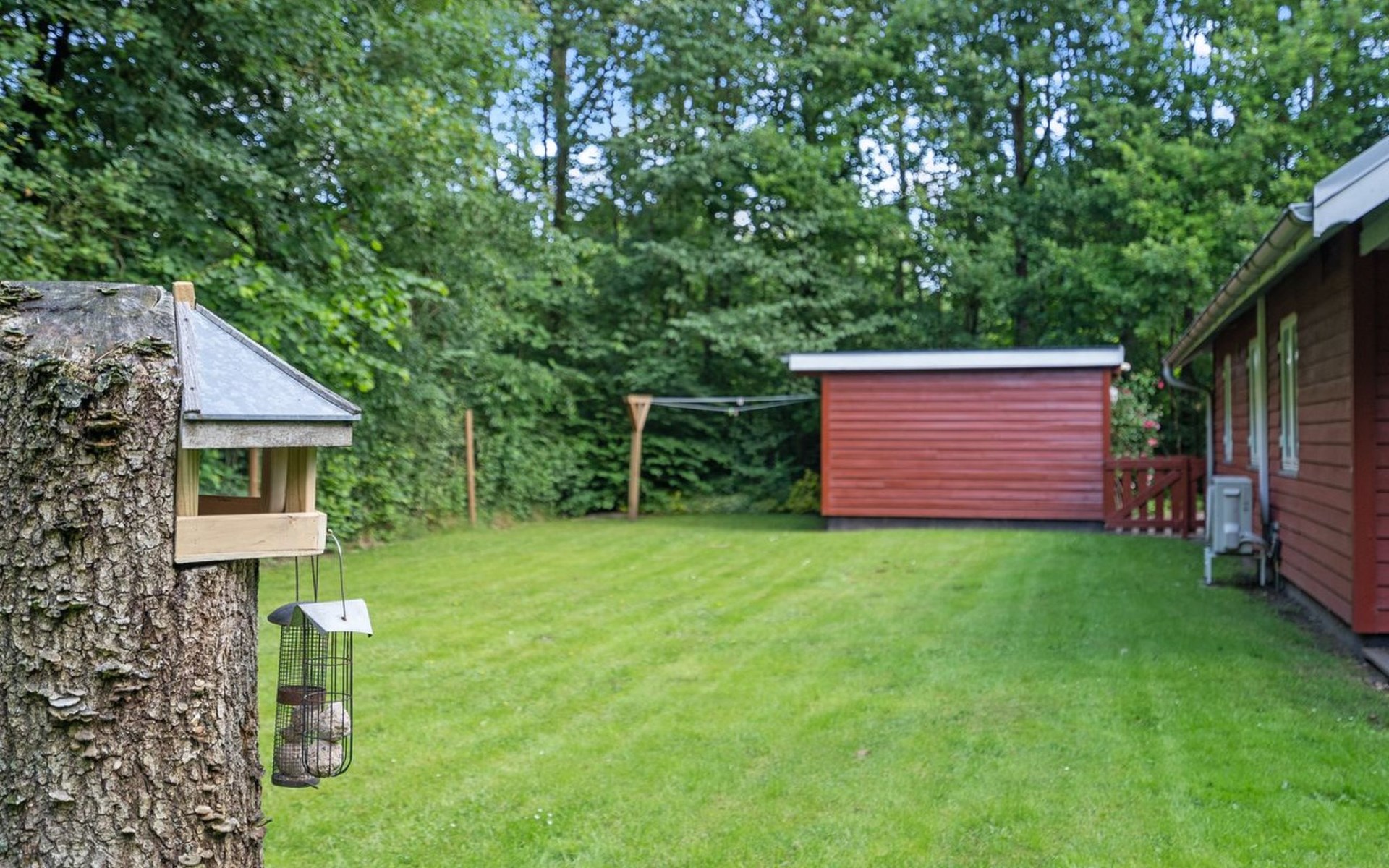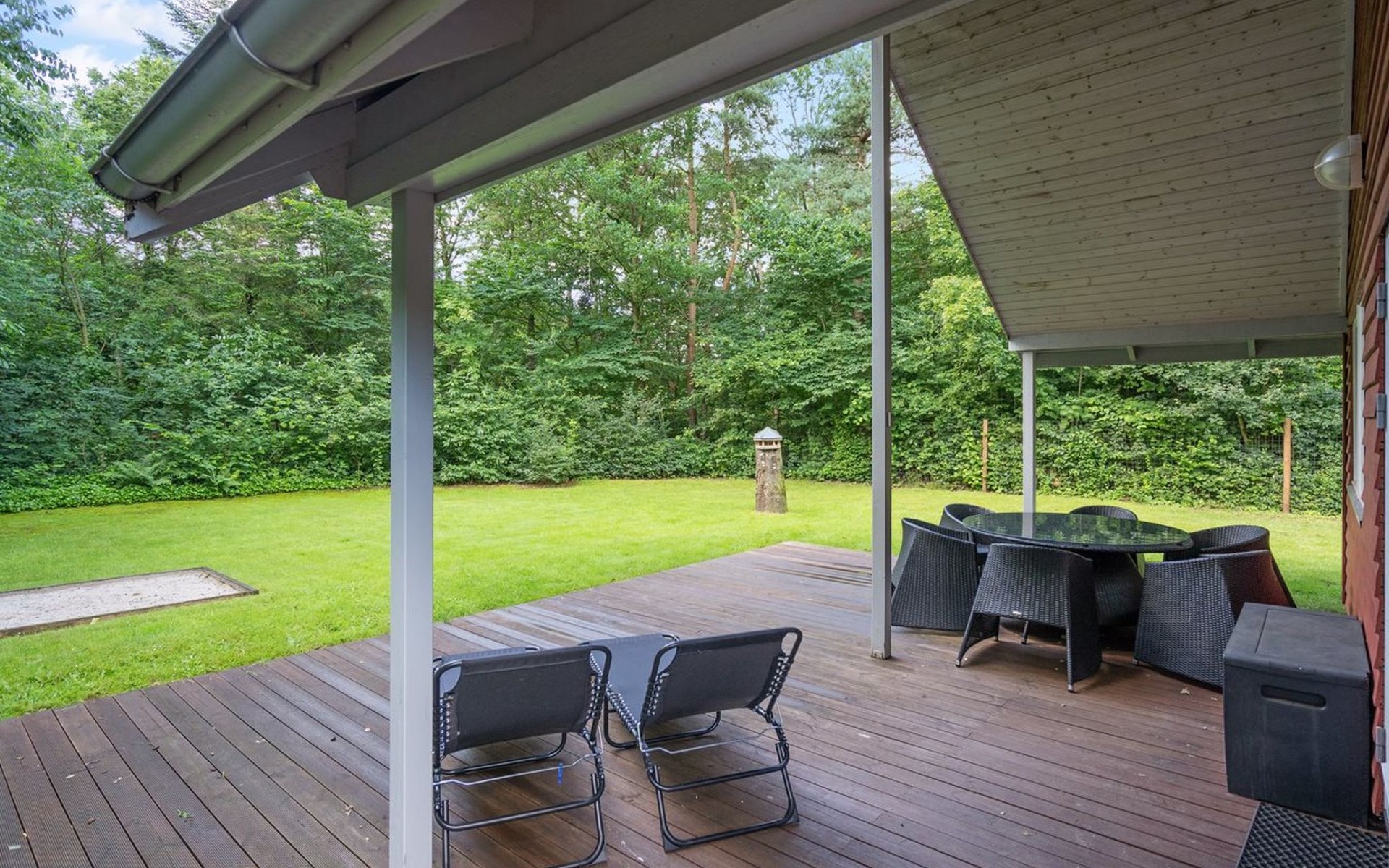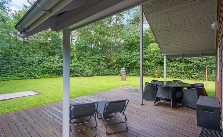 Single-family house, built in 2001. 25 km from the sea. For shared use: garden. Private: natural state property 875 m2, garden (fenced). Terrace (40 m2), barbecue, children's playground. In the house: washing machine, tumble dryer. Parking at the house. Grocery 1.5 km. Golf course 2 km. The owner does not accept any youth groups.