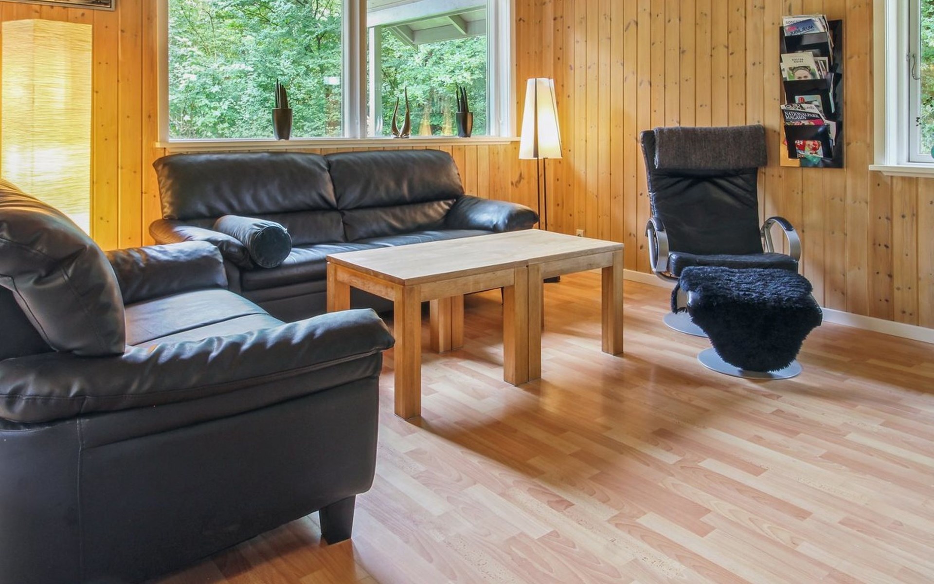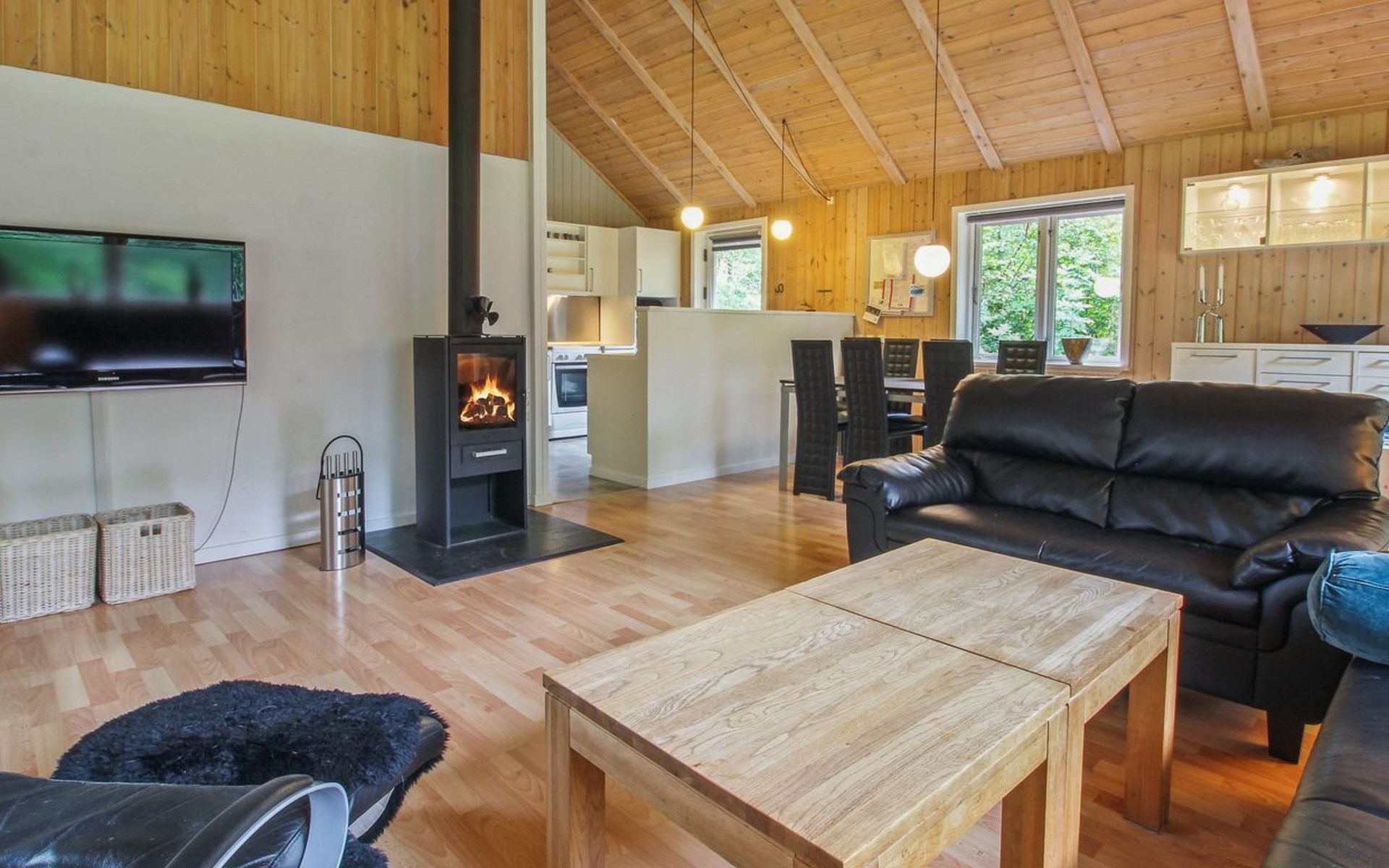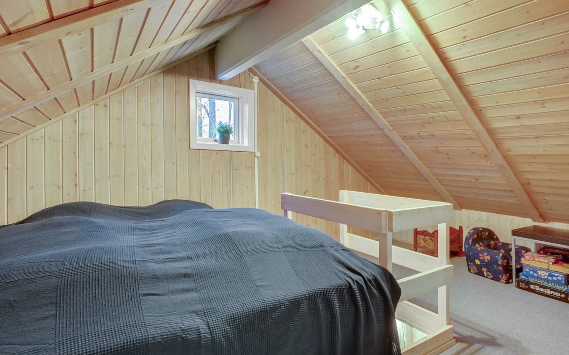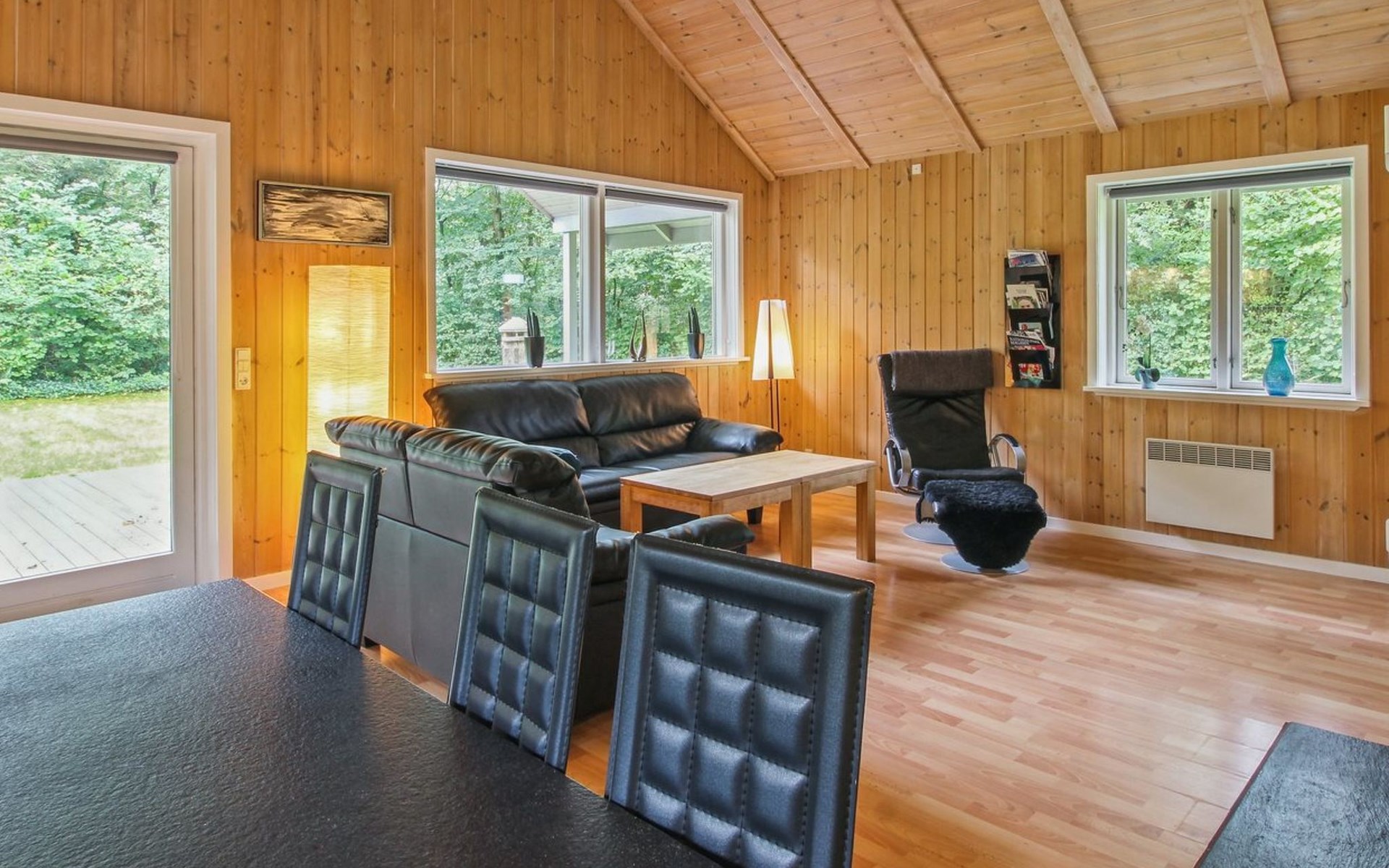 Single-family house, built in 2001. 25 km from the sea. For shared use: garden. Private: natural state property 875 m2, garden (fenced). Terrace (40 m2), barbecue, children's playground. In the house: washing machine, tumble dryer. Parking at the house. Grocery 1.5 km. Golf course 2 km. The owner does not accept any youth groups.