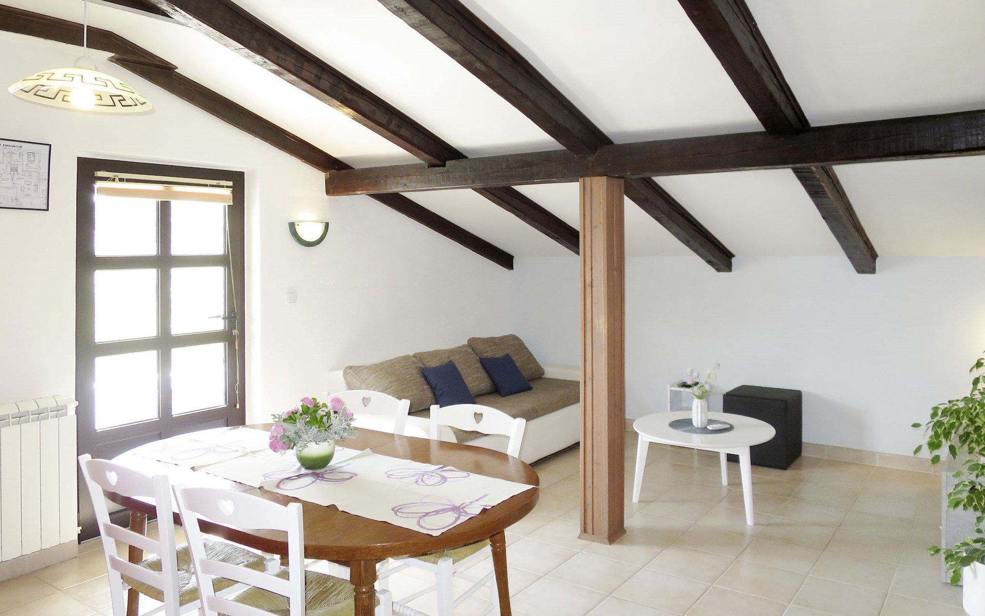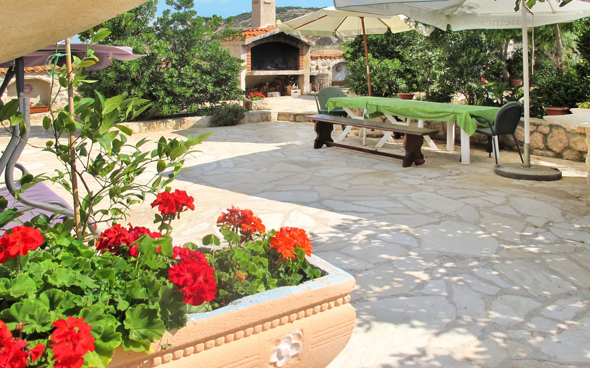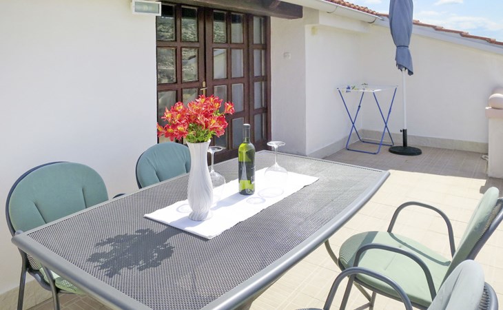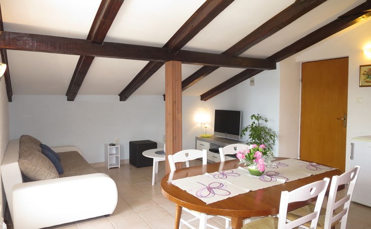 3-family house "Lukeni". 200 m from the centre of Vinjerac, 35 km from the centre of Nin, 35 km from the centre of Zadar, 50 m from the sea, 50 m from the beach. For shared use: property 1'000 m2, plants. (swing). In the house: internet access, washing machine (for shared use, extra). Parking on the premises. Shop 200 m, bus stop 9 km, rocky beach 50 m.