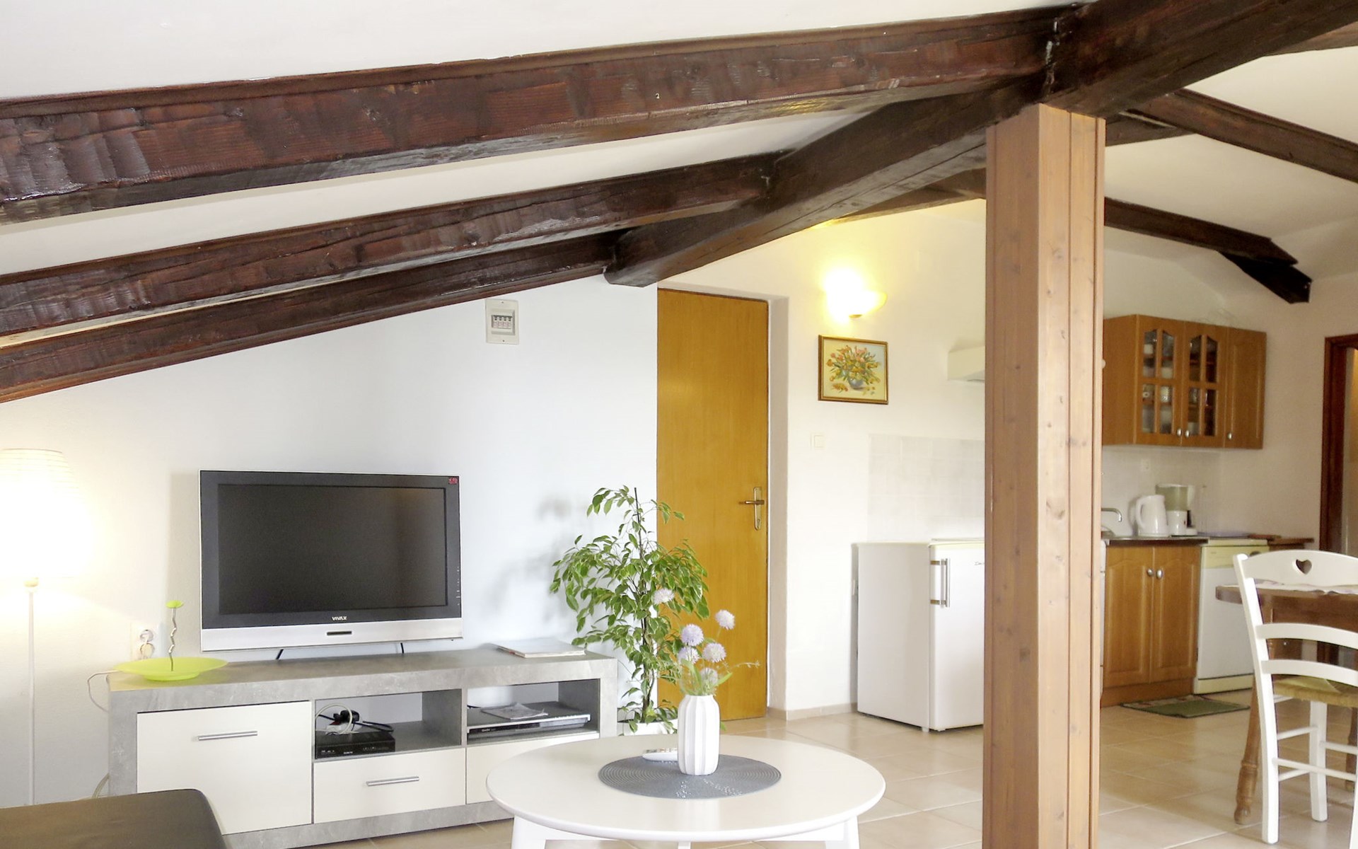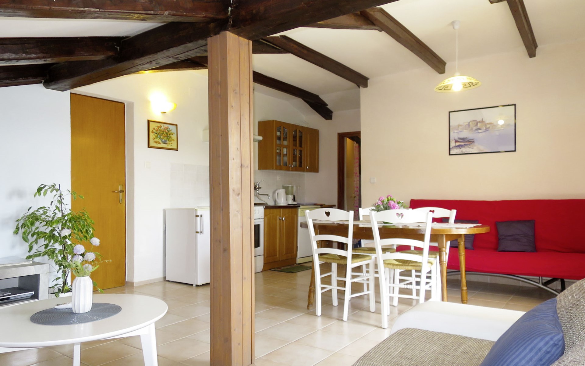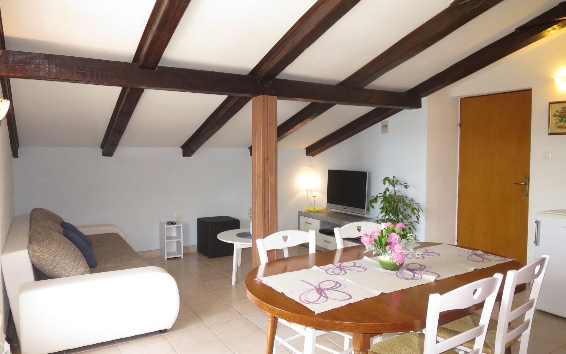 3-family house "Lukeni". 200 m from the centre of Vinjerac, 35 km from the centre of Nin, 35 km from the centre of Zadar, 50 m from the sea, 50 m from the beach. For shared use: property 1'000 m2, plants. (swing). In the house: internet access, washing machine (for shared use, extra). Parking on the premises. Shop 200 m, bus stop 9 km, rocky beach 50 m.