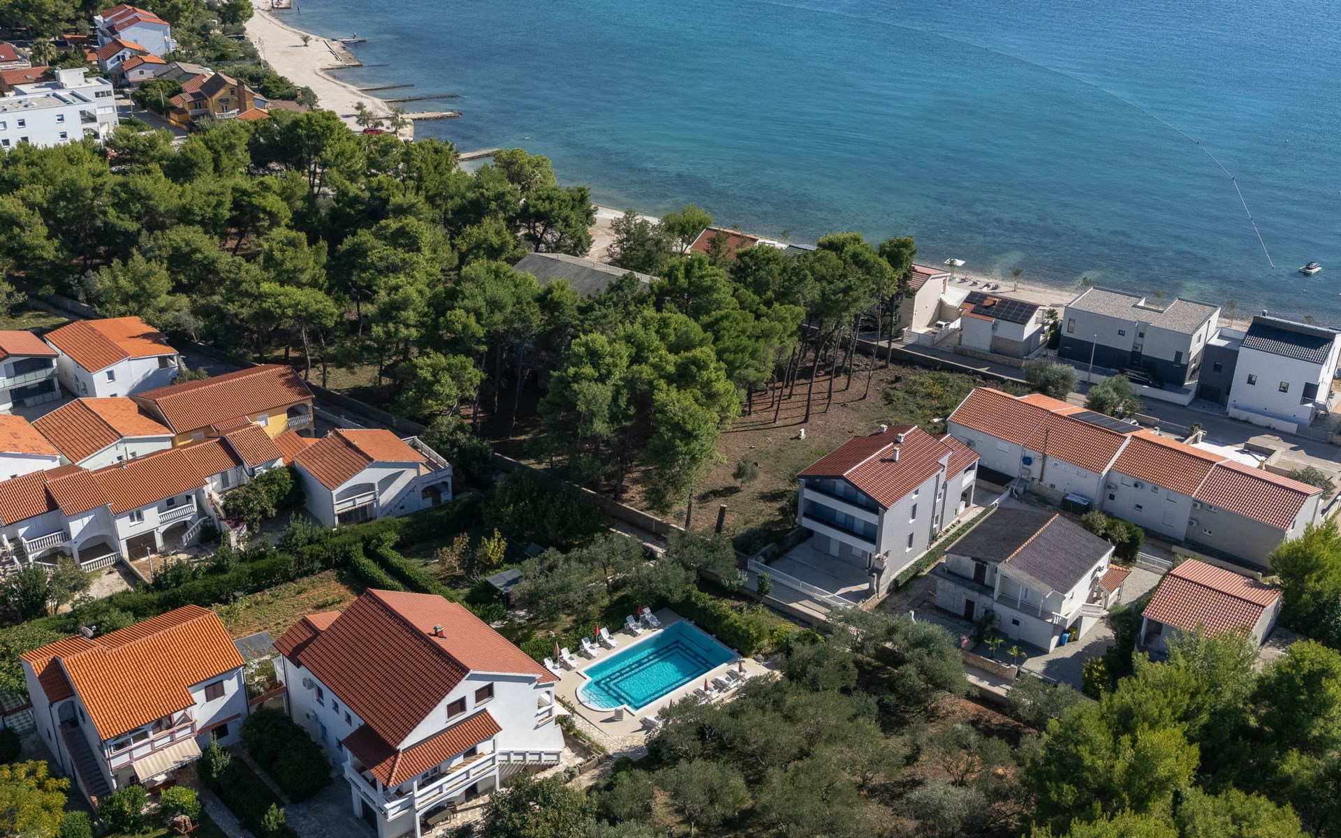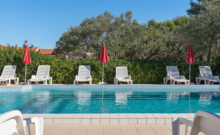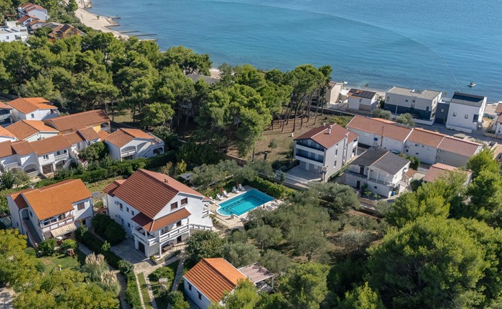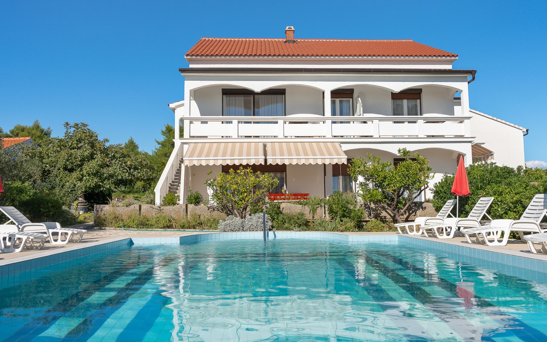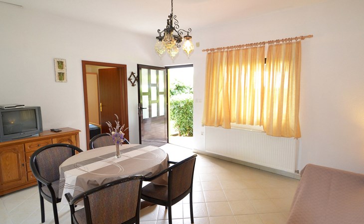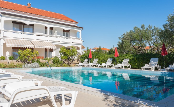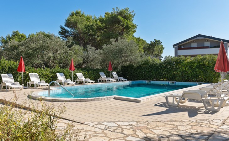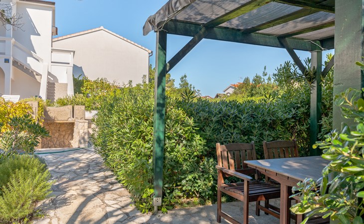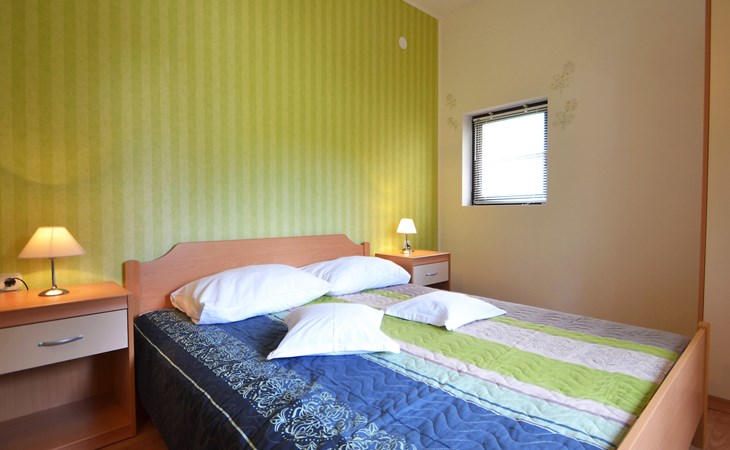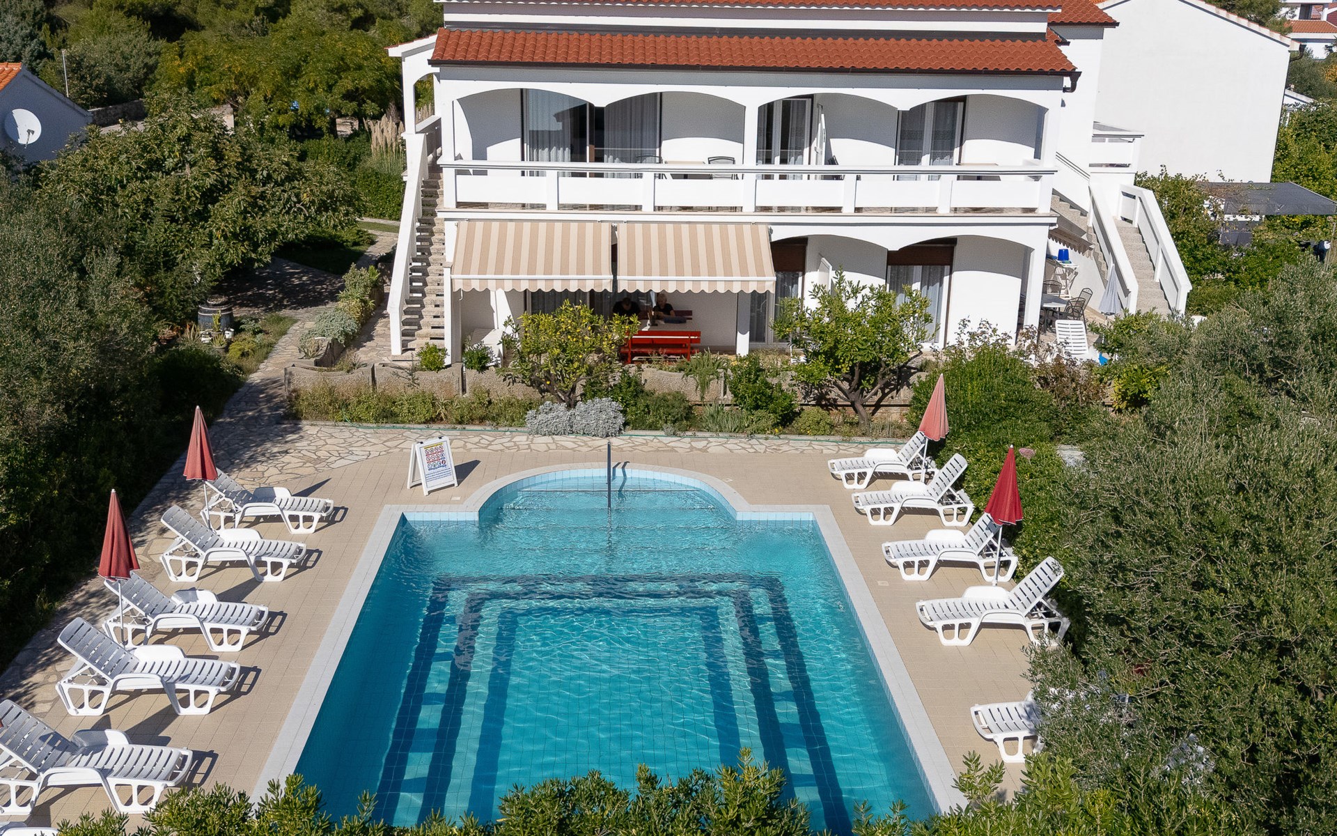 Beautiful 2-family house "Luce". Outside the resort, 1 km from the centre of Vir, 400 m from the sea, 400 m from the beach, in the countryside. For shared use: garden with plants and trees, orchard, swimming pool angular (10 x 6 m, depth 150 - 170 cm, seasonal availability: 04.May. - 14.Sep.) with internal staircase. Outdoor shower, patio, garden furniture, barbecue, children's playground. In the house: internet access. Parking at the house on the premises. Shop 500 m, restaurant 1 km, bus stop 2.2 km, shingle beach 400 m. The house is situated on the same grounds as HR4050.120. Shared: boccia.