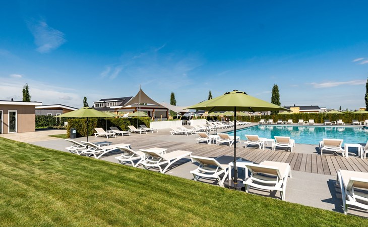 Bemelen 10 km from Maastricht: Comfortable holiday development "Green Resort Mooi Bemelen". In a quiet position, in the countryside. For shared use: swimming pool heated (seasonal availability: 01.May. - 30.Sep.). Children's playground. In the complex: reception, WiFi, bicycle rental. Central parking spaces. E-charging station. Supermarket 4 km, thermal baths "Thermae 2000" 5 km. Nearby attractions: t'Rooth 2 km, Grotten Valkenburg 5 km, Vrijthof Maastricht 10 km, St.Pietersberg 12 km, Drielandenpunt Vaals 23 km, Gaia Zoo 23 km. Hiking paths: Natuurreservaat De Bemelerberg, Schiepersberg, Julianagroeve. Please note: car recommended. Groups of teenagers on request only. The photograph shows a typical example. Additional accommodations can be booked. Please note: bookings for workmen, youngsters and longer then 21 days are on request only. The park is under construction. Prefencecosts €20,- to be paid on spot.
