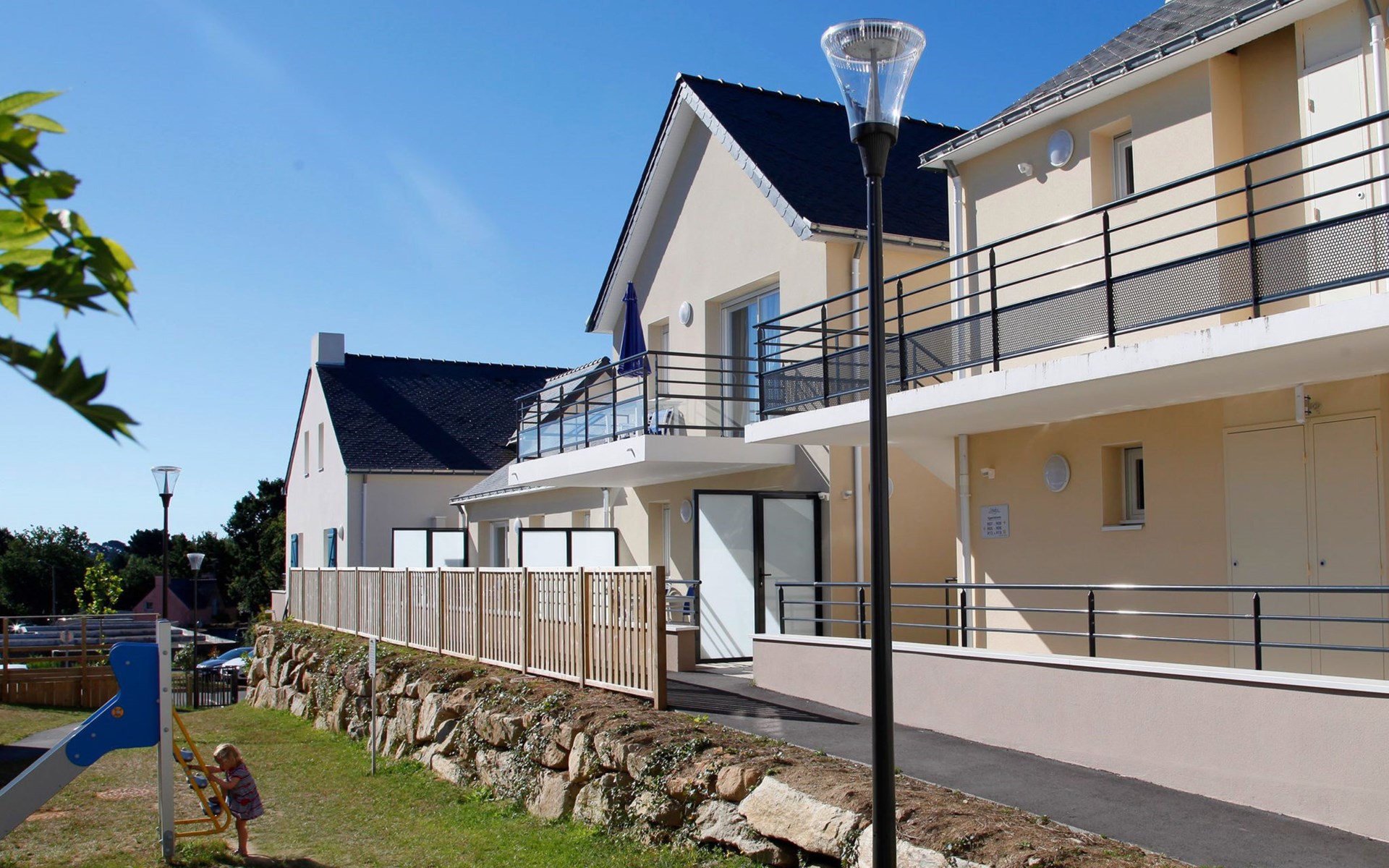 Residence "Les Iles du Morbihan". 14 km from the centre of Vannes, outside the resort, 10 km from the centre of Auray, 500 m from the sea, 500 m from the beach. For shared use: swimming pool heated, fenced (15 x 10 m, seasonal availability: 16.May. - 15.Sep.). Private: children's playground. In the complex: reception, sauna (extra). Washing machine, tumble dryer (for shared use, extra). Parking. Sandy beach "Plage du Golfe" 500 m. Please note: the photograph shows a typical example. The holiday properties may differ in living space, floorplan, equipment and furnishing.