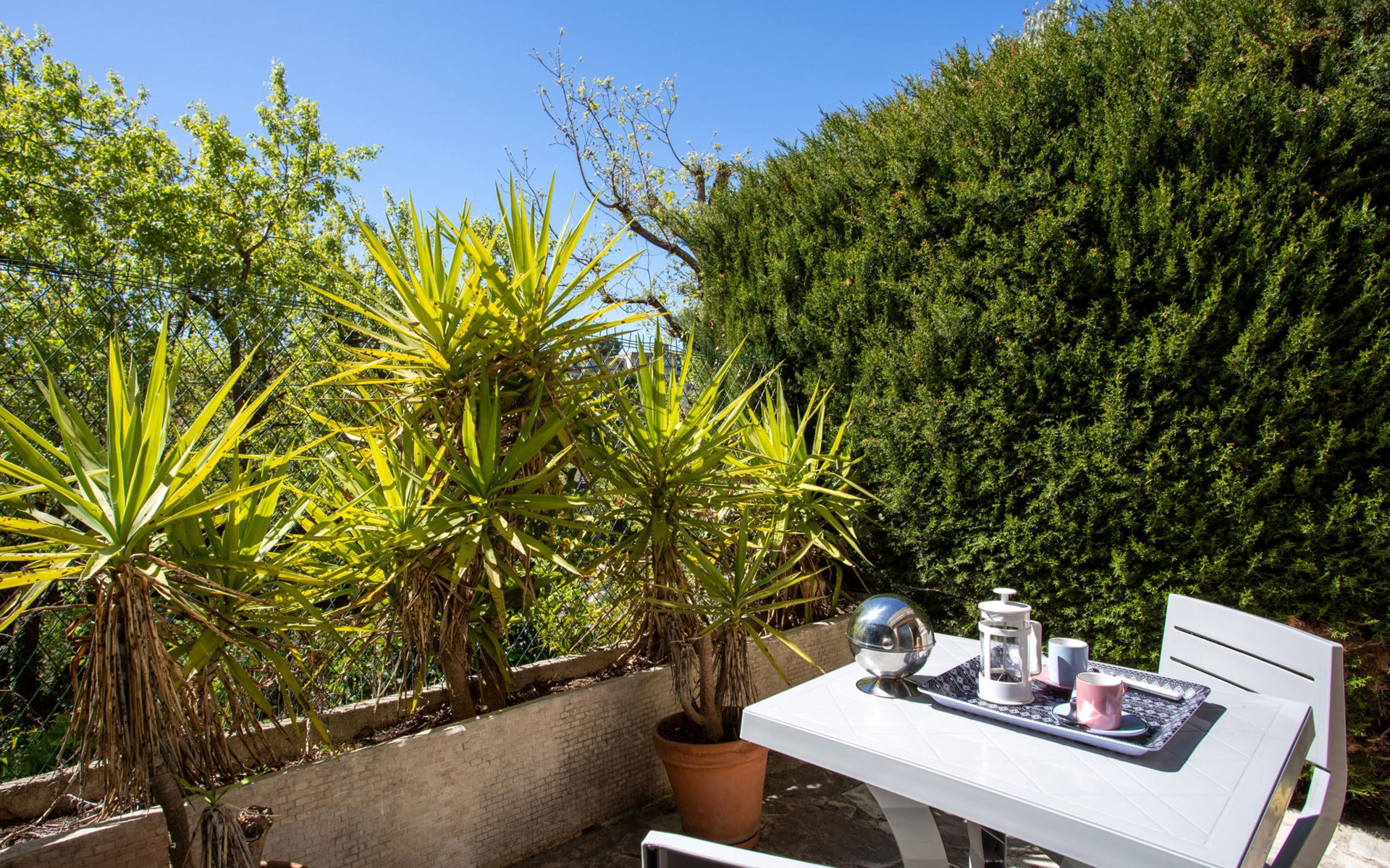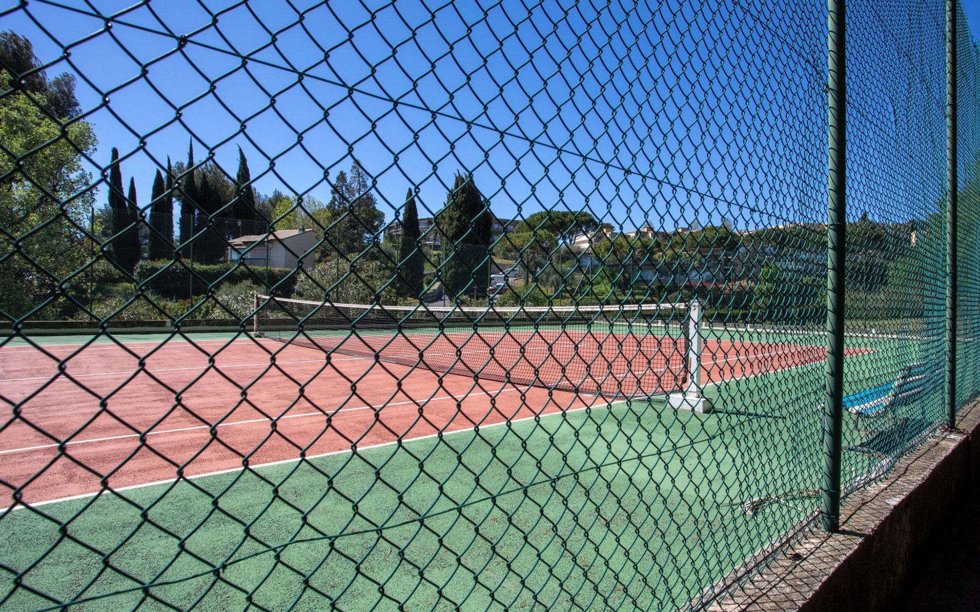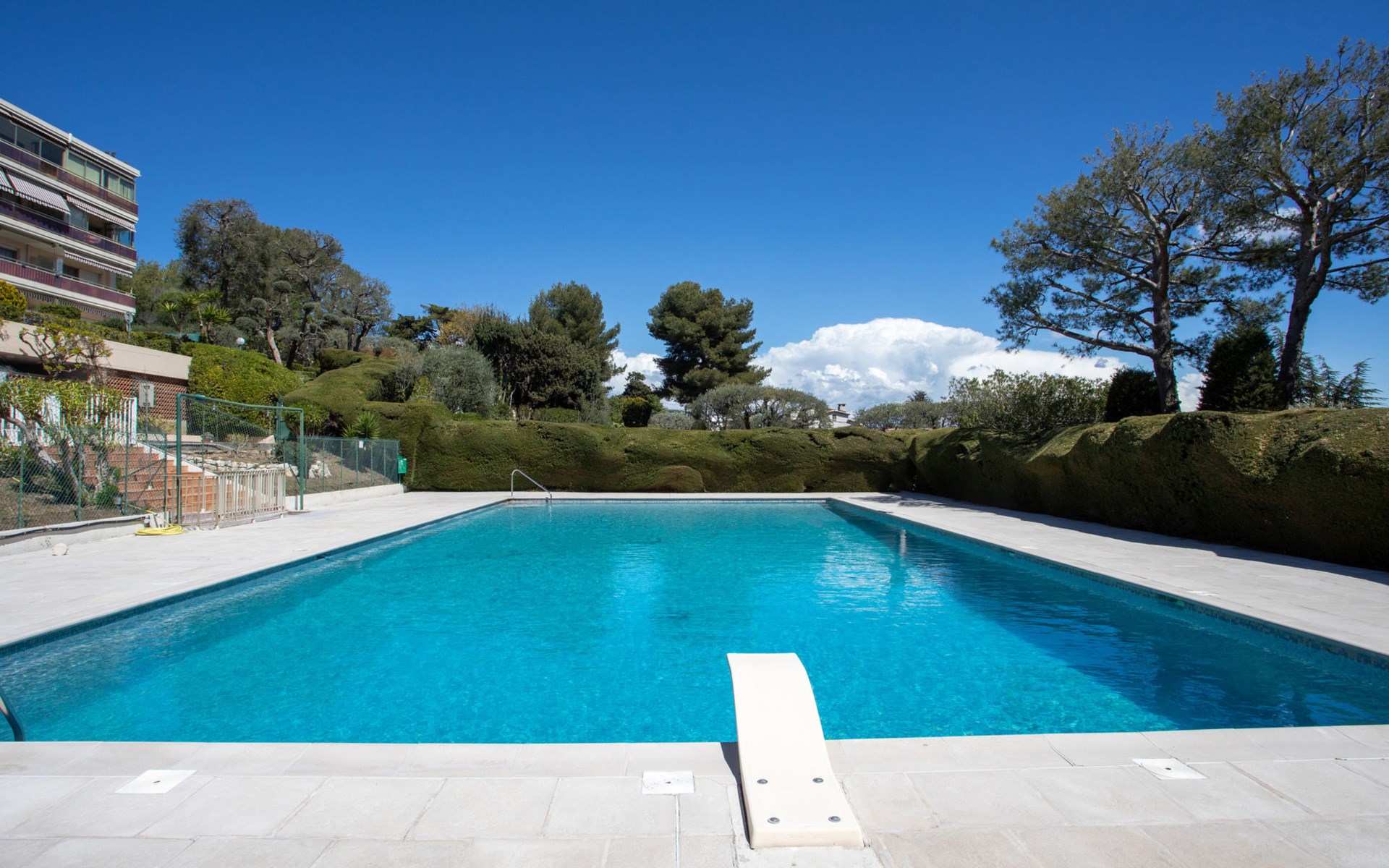 Beautiful residence "Montfleuri", 4 storeys. Above Villeneuve-Loubet plage, in an elevated position on top of a hill, 1 km from the sea, 1 km from the beach. For shared use: park (fenced), swimming pool angular (seasonal availability: 15.May. - 30.Sep.). Tennis, terrace. In the complex: lift. Motor access to 150 m from the house. Stepped path to the house. Grocery, supermarket 350 m, restaurant 1 km, bakery 650 m, shingle beach "publique" 1 km. Sports harbour 1.5 km, marina 1.5 km, sailing school 1.4 km, riding stable 16 km. Nearby attractions: Marineland Antibes 6 km, Musée Fernand Léger 5 km, Musée Escoffier 3 km, St Paul de Vence 9 km, Cannes 19 km, Nice 15 km. Well-known lakes can easily be reached: St Cassien 48 km. Please note: car recommended. Residence with electric gates. The keys‘ handover takes place by the agency Interhome in Cagnes sur Mer, 3 km.