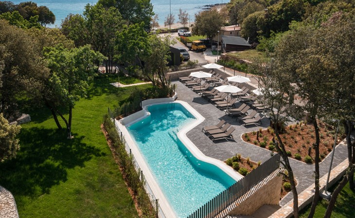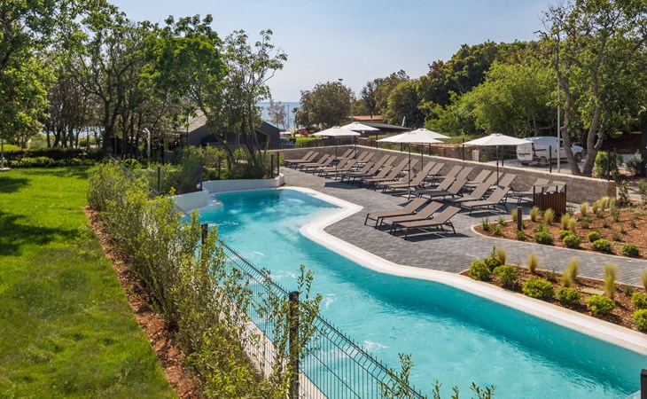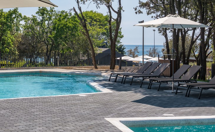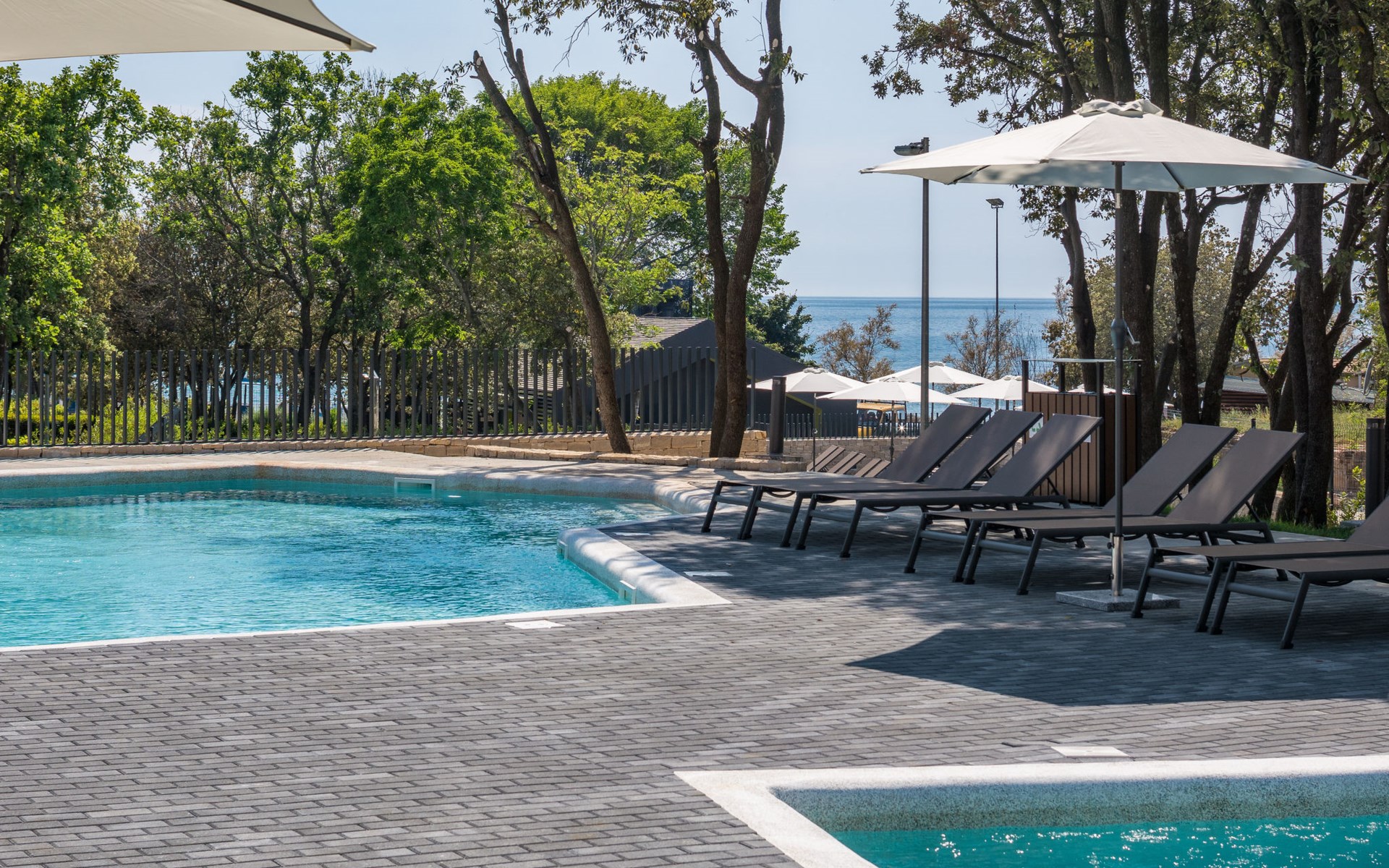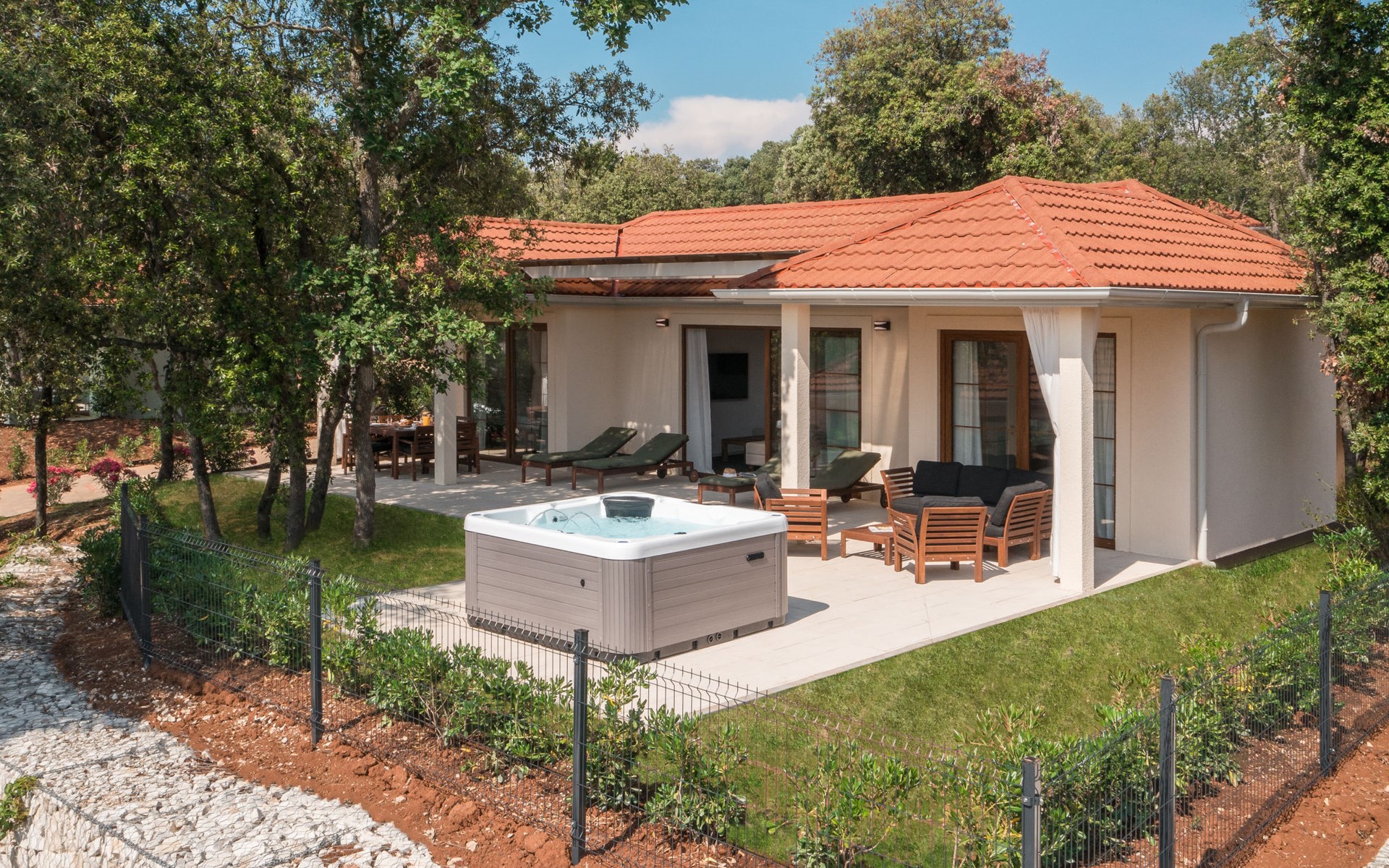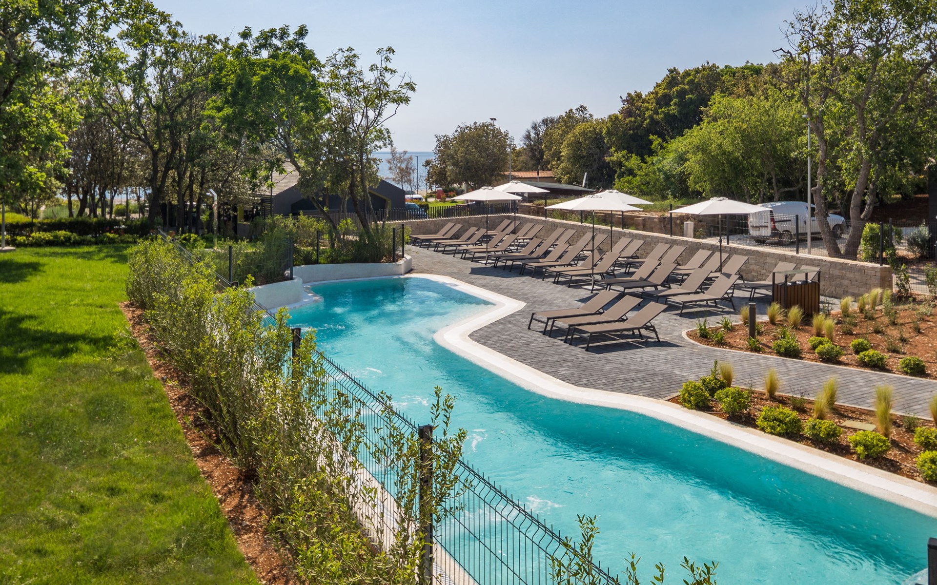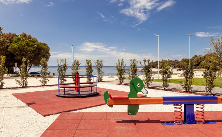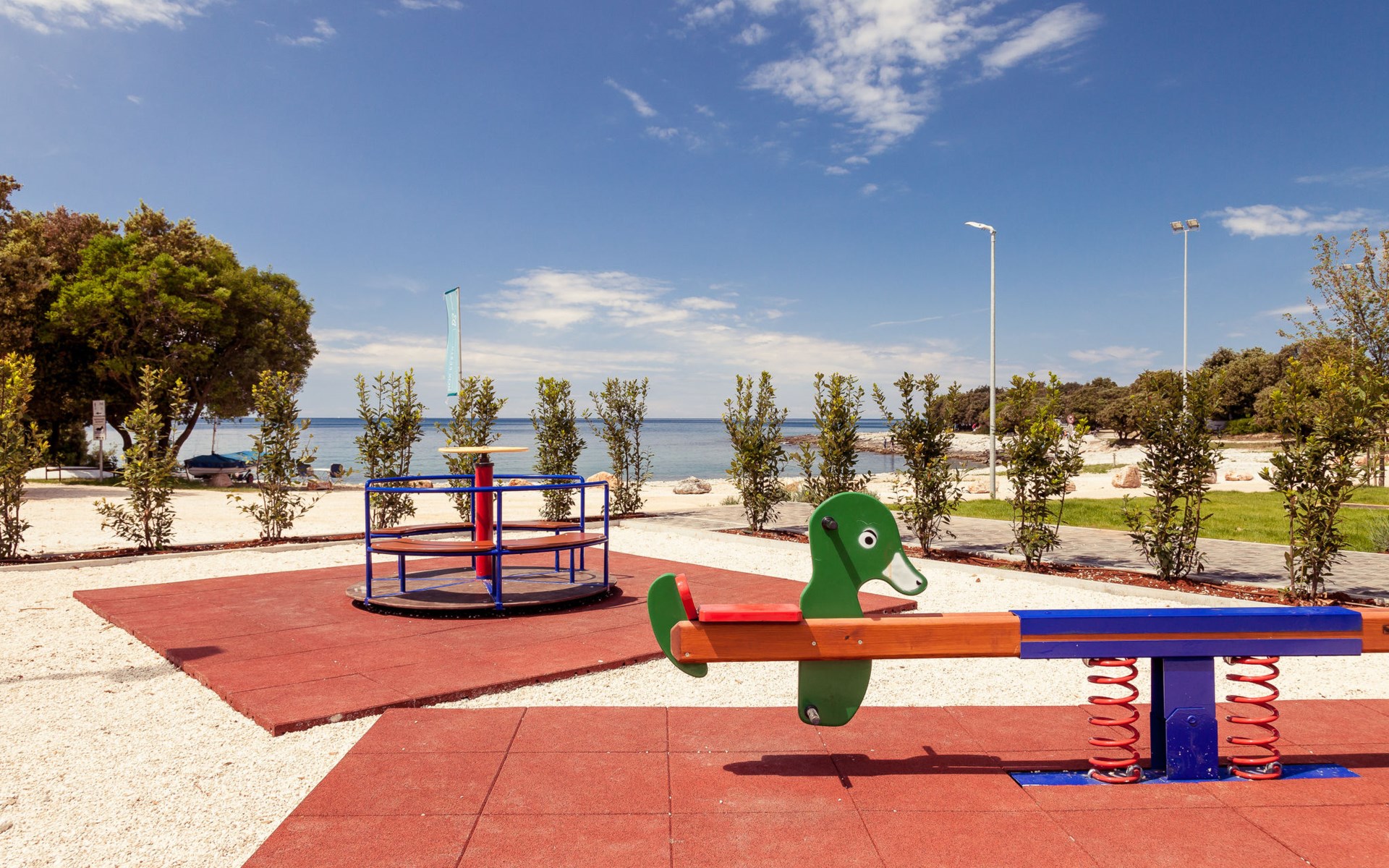 Child friendly resort "Mon Perin". 6 km from the centre of Bale, 17 km from the centre of Rovinj, in a quiet, sunny position, at the seaside, on the beach. For shared use: property with trees, swimming pool (400 m2, depth 45 - 135 cm, seasonal availability: 18.May. - 21.Sep.). Children's pool, tennis, basketball, boccia, beach volleyball, children's playground, pool maintenance by the owner/gardener. Private: property 150 m2 with wildlife garden. Hot tub. In the complex: restaurant, bar, internet access, sauna (extra). Hot tub, infrared sauna, relaxation room, spa area for shared use hamam, table football, shopping facilities, air conditioning, laundry (for shared use, extra), bicycle rental. Parking at the house on the premises. E-charging station. Bus stop 4.2 km, pebble beach "Mon Perin", rocky beach "Mon Perin". Riding stable 500 m, walking paths from the house 100 m, cycle lane 150 m. Please note: entertainment. The camp has 1 additional paddling pool (90 m2, depth 60 cm, open from 01.06.-03.10.). Wellness and spa with indoor pool is for use only by adults over 18 years old.