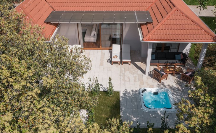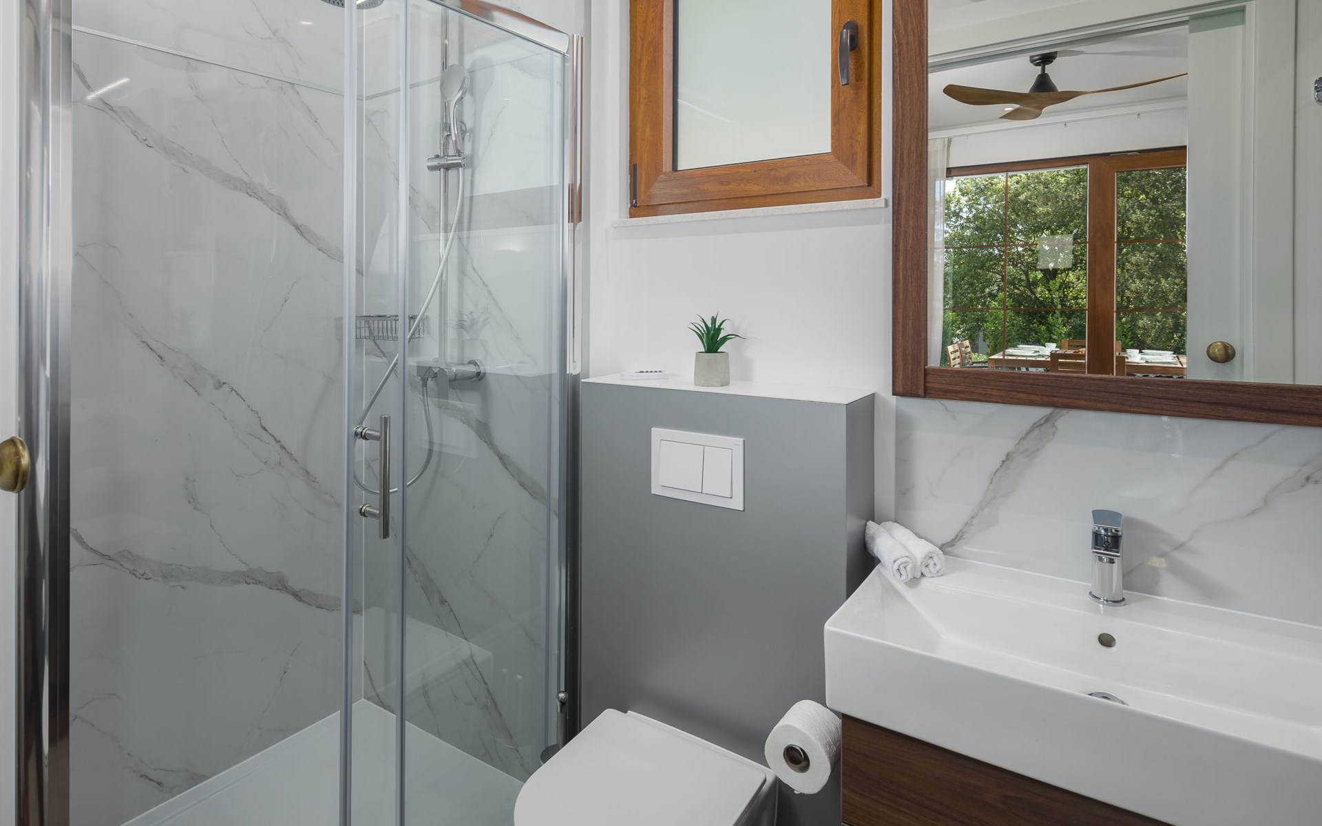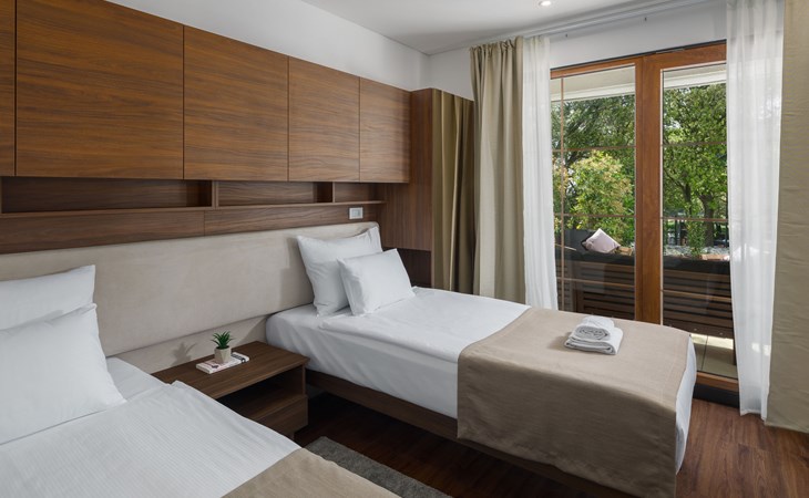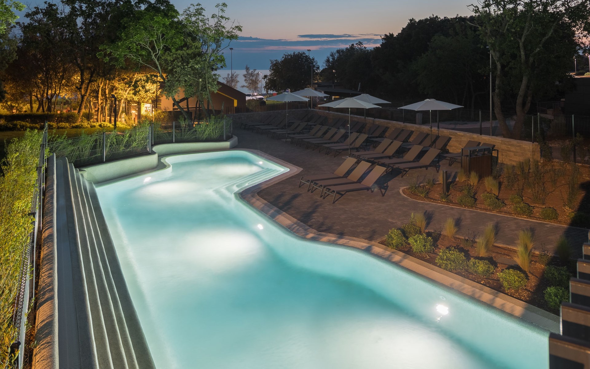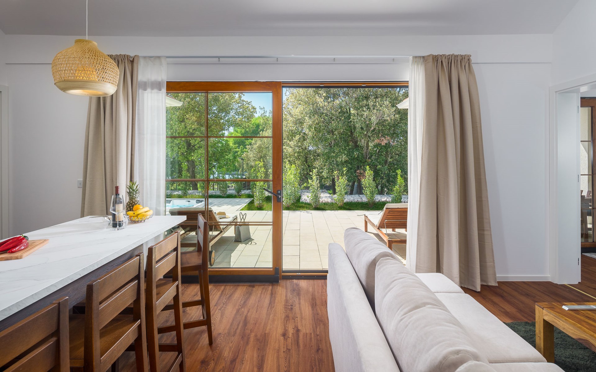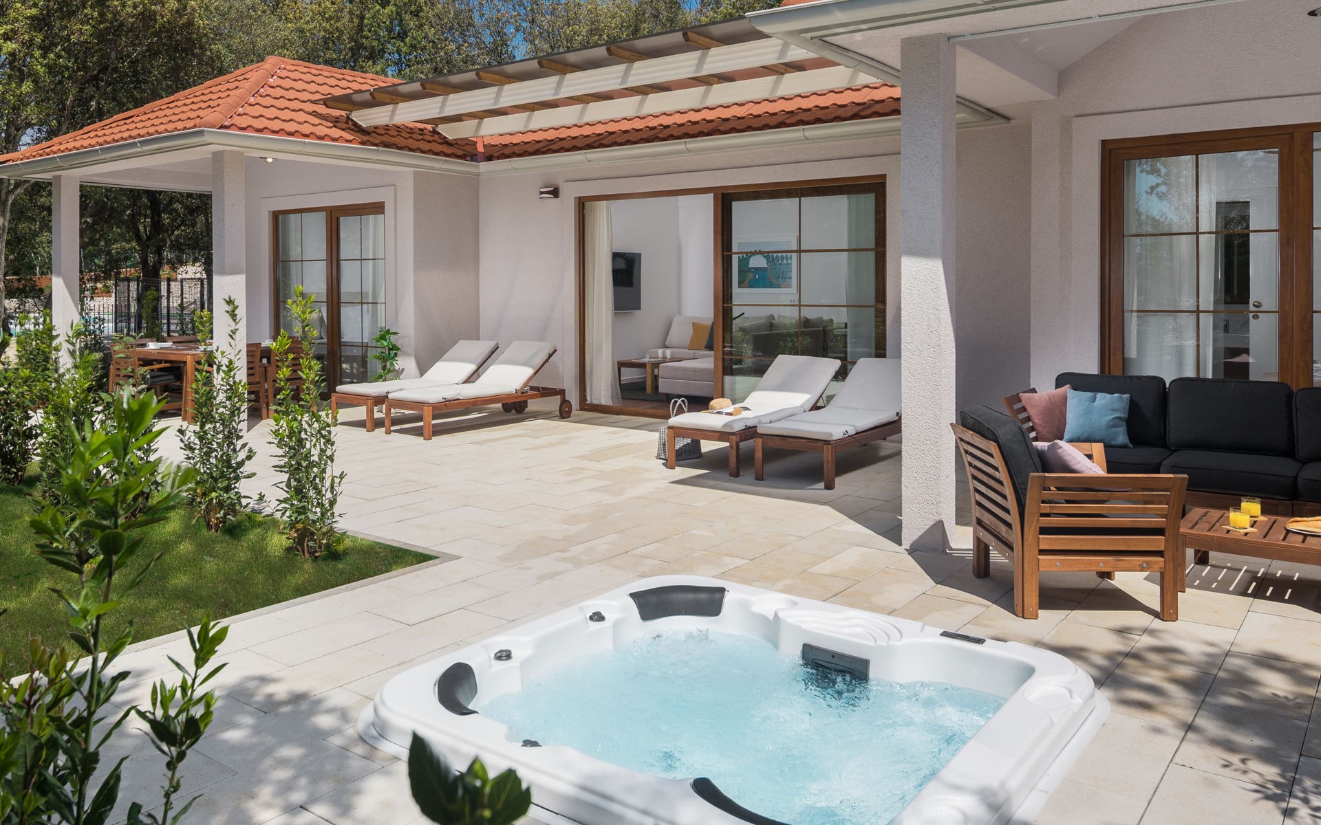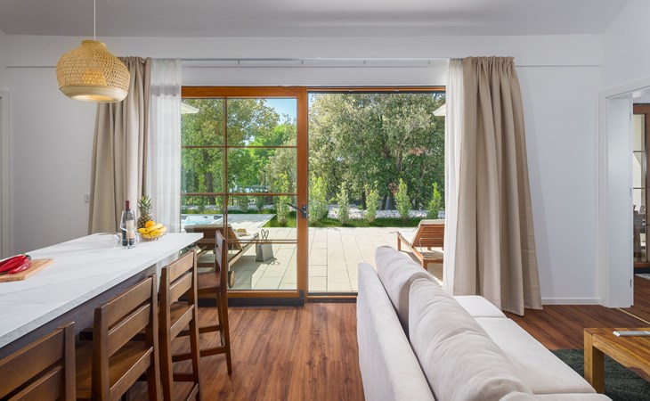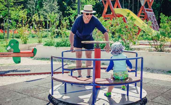 Child friendly resort "Mon Perin". 6 km from the centre of Bale, 17 km from the centre of Rovinj, in a quiet, sunny position, at the seaside, on the beach. For shared use: property with trees, swimming pool (400 m2, depth 45 - 135 cm, seasonal availability: 18.May. - 21.Sep.). Children's pool, tennis, basketball, boccia, beach volleyball, children's playground, pool maintenance by the owner/gardener. Private: property 150 m2 with wildlife garden. Hot tub. In the complex: restaurant, bar, internet access, sauna (extra). Hot tub, infrared sauna, relaxation room, spa area for shared use hamam, table football, shopping facilities, air conditioning, laundry (for shared use, extra), bicycle rental. Parking at the house on the premises. E-charging station. Bus stop 4.2 km, pebble beach "Mon Perin", rocky beach "Mon Perin". Riding stable 500 m, walking paths from the house 100 m, cycle lane 150 m. Please note: entertainment. The camp has 1 additional paddling pool (90 m2, depth 60 cm, open from 01.06.-03.10.). Wellness and spa with indoor pool is for use only by adults over 18 years old.